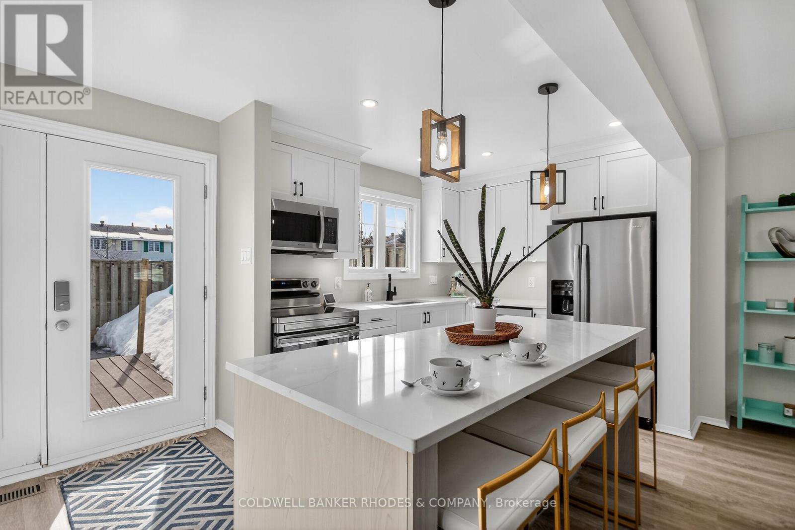 Welcome to this charming Campeau-built 3-bedroom, 2-bathroom townhome nestled in the desirable Carleton Heights neighborhood. A well-appointed brick façade and sun-drenched windows anchor the home's inviting curb appeal. Meticulously renovated from top to bottom, this residence showcases a thoughtfully designed open-concept layout that blends style and functionality. The main floor gourmet Laurysen kitchen complete with quartz counters, soft close custom cabinetry, custom lighting, stainless steel appliances and breakfast bar is the heart of the home, offering modern finishes and a generous workspace. It opens directly onto a south-facing newly paved backyard patio complete with garden beds and a fully fenced yard-perfect for entertaining, summer BBQs, or relaxing in the sun. The upper level features a spacious primary bedroom with ample closet storage, along with two additional generously sized bedrooms. A 4-piece bathroom and linen storage complete this thoughtfully designed upper layout. The lower level offers a finished spacious family room with dedicated office space, a convenient 2-piece bathroom, and a fitness area. A utility and laundry room provide additional functionality and storage, completing this versatile lower level. Move-in ready and beautifully updated, this home offers exceptional value in a well-established, family-friendly community. Plus, take advantage of the "on-site" pool and playground just steps from your front door. A hop, skip and a jump to Hog's Back falls, Mooney's Bay, boating, trails, shopping, recreation, restaurants, cafes and more. Welcome Home! No conveyance of any written offers until Thursday March 12th 2026 at 6pm.