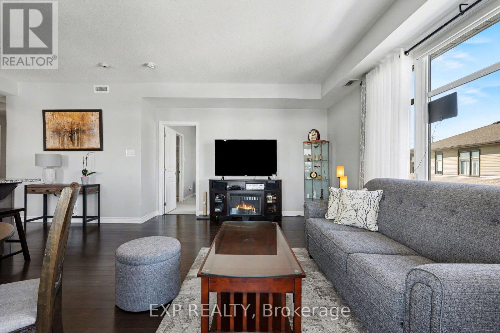 Step into a Bright & Beautifully Maintained 2 Bedroom, 2 Bath Condo where Pride of Ownership is evident from the moment you arrive. Large Windows fill the home with Natural Light, highlighting the inviting Open Concept Living, Dining & Kitchen area designed for easy everyday living and effortless entertaining. The main living space is elevated by an elegant Coffered Ceiling, adding architectural character and a sense of refinement rarely found in condo living. The Kitchen is both stylish and functional, featuring Quartz Counters, warm Wood Cabinetry and a Classic Subway Tile Backsplash. A Breakfast Bar with Seating for 3 creates the perfect place for casual meals, morning coffee or chatting with guests while cooking. Stainless Steel Appliances, generous Cabinet Space & Ample Counter Space make this Kitchen as practical as it is attractive. A Large Window in the Kitchen brings in even more Natural Light, making the entire space feel open and welcoming. Tiled Kitchen Flooring adds durability and easy maintenance. The thoughtful layout continues with a convenient Utility and Laundry Closet, keeping everyday essentials tucked away while maximizing usable living space. Quartz Counters continue throughout the bathrooms, maintaining a consistent and upscale finish. The Sizeable Primary Bedroom offers a peaceful retreat with a Walk In Closet and a private 3 Piece Ensuite featuring a Standing Glass Shower. The Second Bedroom provides flexibility as a guest room, home office or creative space depending on your needs. A well appointed 4 Piece Bath features a Subway Tiled Shower and modern finishes. Step outside onto the Balcony to enjoy your Morning Coffee, unwind after a long day or simply take in some fresh air. With Underground Parking and the ease of Condo Living, this home offers a low maintenance lifestyle while still providing generous living space and quality finishes. Ideally located close to parks, shopping, restaurants, recreation and transit! Don't miss this gem!