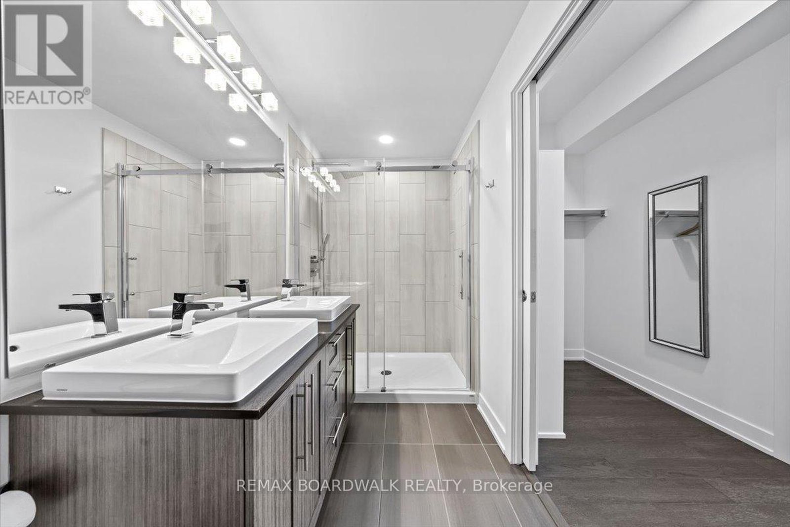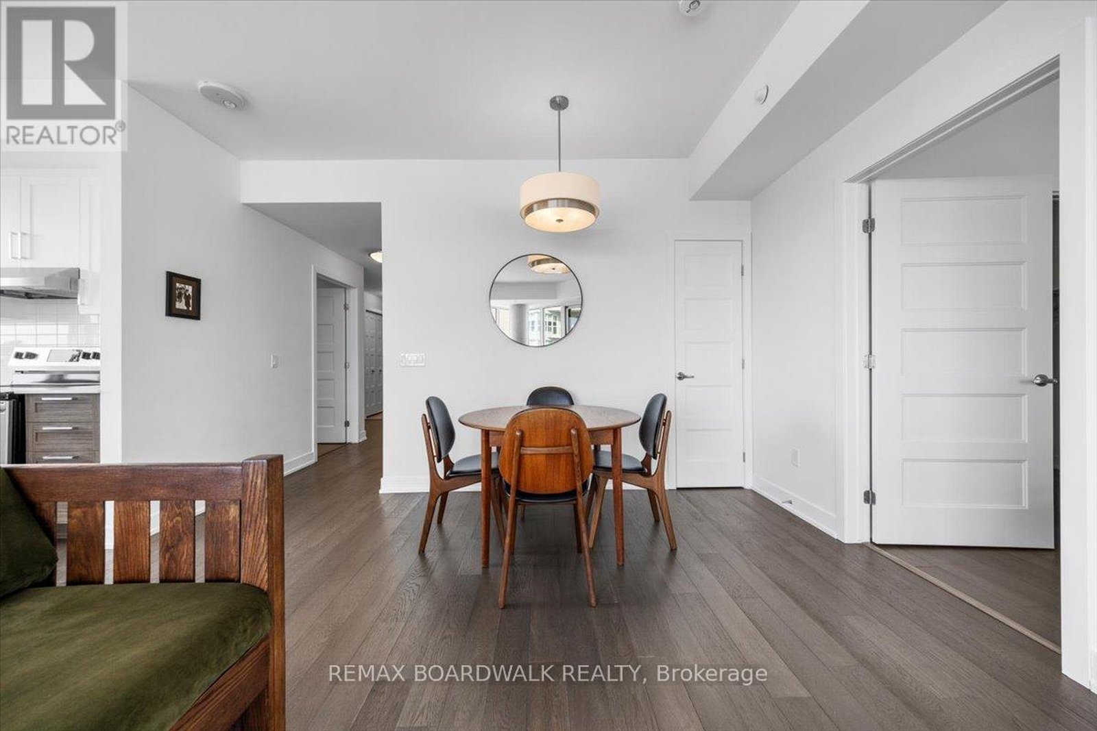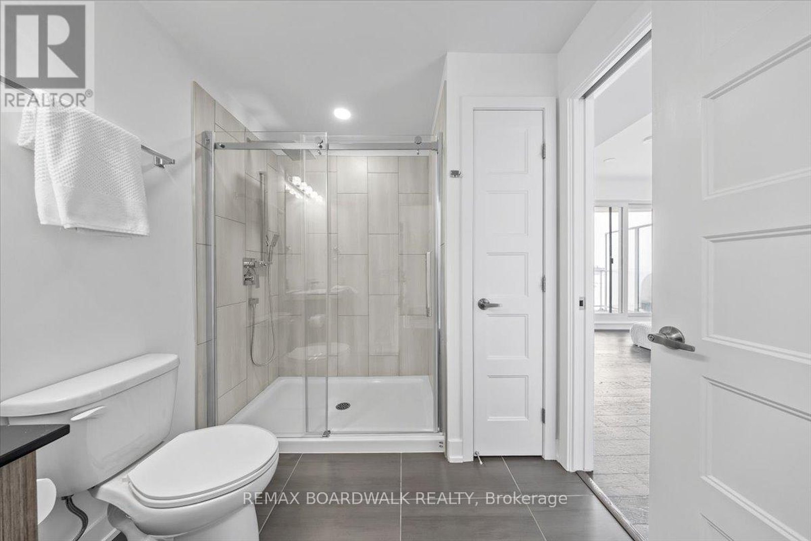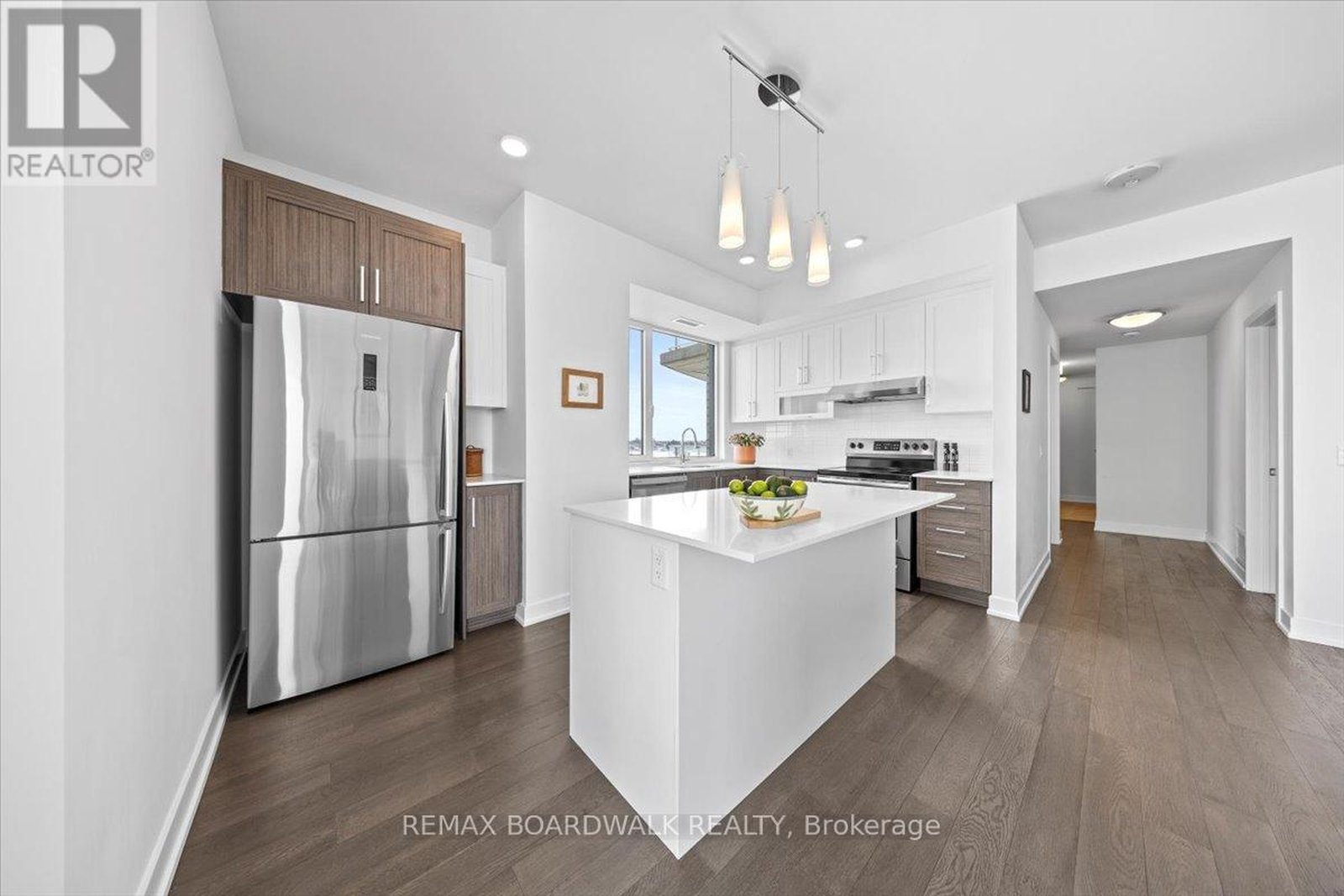 Architecturally composed corner residence w/dual covered balconies, southern exposure, & elevated Ottawa River views. This two-bedroom suite is thoughtfully designed for both form & function, offering refined materials & intentional spatial flow, 37.5" wide entry door introduces a welcoming foyer w/closet storage, setting a tone of accessibility & understated sophistication. Wide-plank engineered hardwood & oversized ceramic tile run throughout, complemented by flat ceilings, boxed baseboards, recessed pot lighting, & modern five-panel interior doors, centre-island kitchen anchors the living space w/quartz surfaces, breakfast bar seating, pot drawers, & two-tone shaker cabinetry w/integrated garage feature. A recessed double sink positioned beneath an oversized window captures natural light & river vistas. The living room's corner glazing frames panoramic water views & morning sun, while the dining area integrates a walk-in pantry for seamless entertaining, primary suite is designed as a private retreat w/its own patio door, walk-through double-sided closet, & a five-piece ensuite featuring twin vanities & a glass-enclosed shower w/rain head & European wand. The second bedroom offers a private balcony, walk-in closet, & pocket-door access to a three-piece cheater ensuite w/double-wide shower, allowing flexibility for guests or workspace, full-size laundry, a separate storage locker, & the rare inclusion of two underground parking spaces enhance livability & long-term value. Residents enjoy curated amenities including a fitness studio w/sunset views, an elegant lounge, rooftop pool, hot tub, & outdoor terrace w/BBQ area. All positioned to embrace the natural landscape of the Ottawa River. A residence defined by light, proportion, & elevated riverside living. 24 hour irrevocable on all offers.