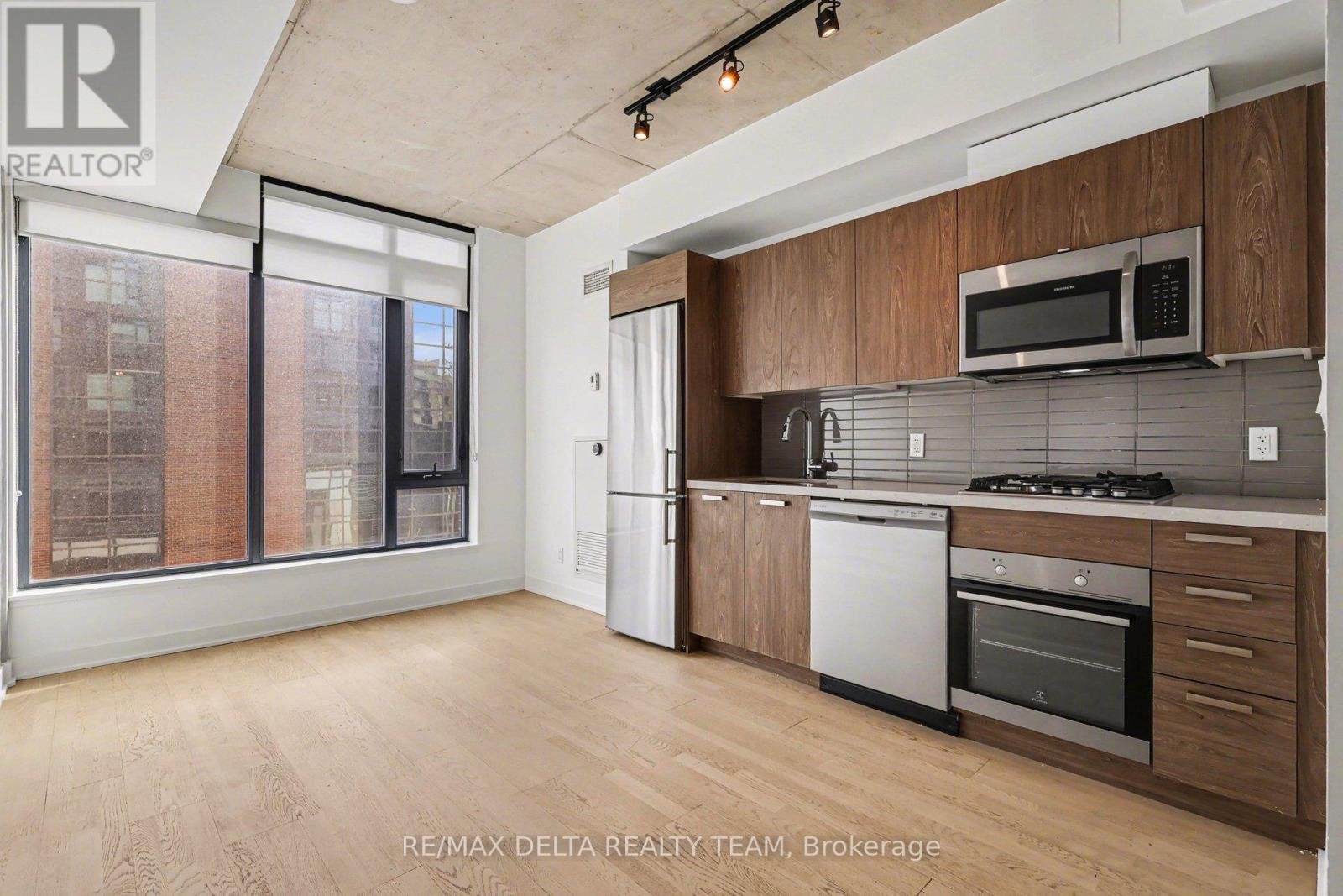 Welcome to urban sophistication at SoBa South on Bank, one of Ottawa's most iconic and architecturally striking condominium residences. This sleek and modern bachelor apartment offers an exceptional opportunity to live in the heart of downtown, steps from Ottawa's best dining, shopping, entertainment, and transit options. Inside, you'll find a bright, open-concept living space that seamlessly blends function and style. Floor-to-ceiling windows flood the unit with natural light, highlighting the contemporary finishes throughout. The kitchen is beautifully appointed with high-gloss cabinetry, quartz countertops, stainless steel appliances, and a built-in cooktop, perfect for both cooking and entertaining. Exposed concrete ceilings and engineered hardwood flooring add a bold, industrial-chic touch. The spa-inspired bathroom features modern tiling, a floating vanity, and a sleek walk-in shower. Stunning amenities including an outdoor pool, a fully equipped gym, party room, and concierge service. Whether youre a young professional, student, or investor, this SoBa bachelor unit is a smart and stylish option in a prime downtown location. With transit at your doorstep, the Glebe, Lansdowne, Elgin Street, and the Canal just minutes away, you'll love the lifestyle this condo affords.