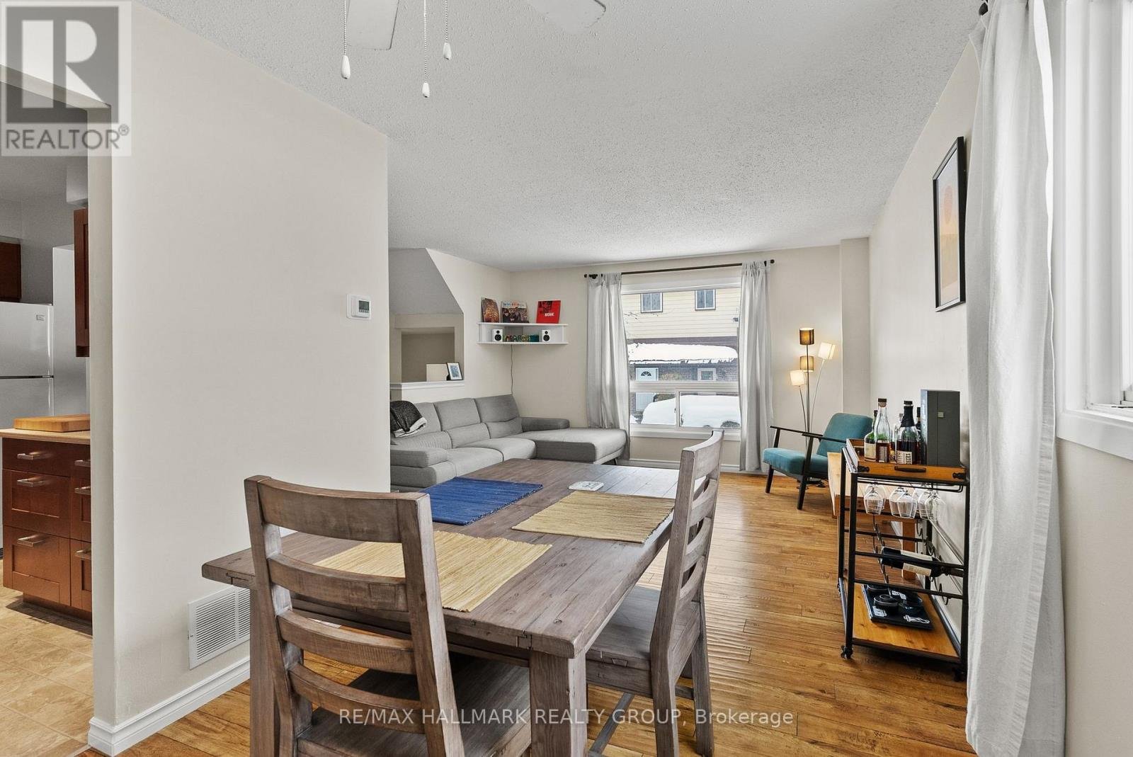 Bright and spacious and carpet free end-unit townhome located in a fantastic east-end location, offering comfort, functionality, and abundant natural light. The main floor features large windows that fill the living and dining areas with sunlight, creating a warm and inviting atmosphere. The kitchen is thoughtfully designed with generous counter space and ample cabinetry, providing excellent storage and plenty of room for meal prep. Upstairs, the primary bedroom offers a private balcony-perfect for enjoying your morning coffee or unwinding in the evening. Additional bedrooms provide flexibility for family, guests, or a home office. The lower level includes a versatile bedroom currently used as a fitness space, along with a large laundry area and extensive storage-ideal for keeping everything organized. Located in a desirable east-end neighbourhood close to amenities, parks, schools, and transit, this bright end-unit townhome is a wonderful place to call home. Fantastic for first time buyers or those looking to downsize! New Furnace 2021