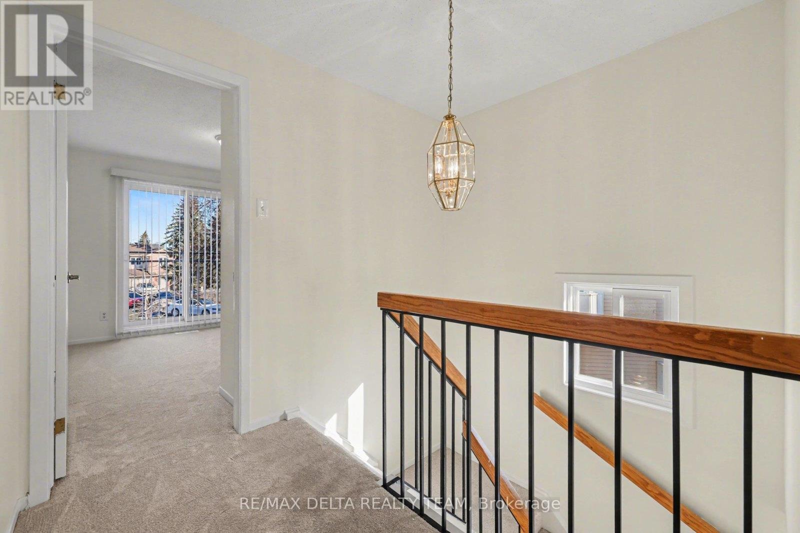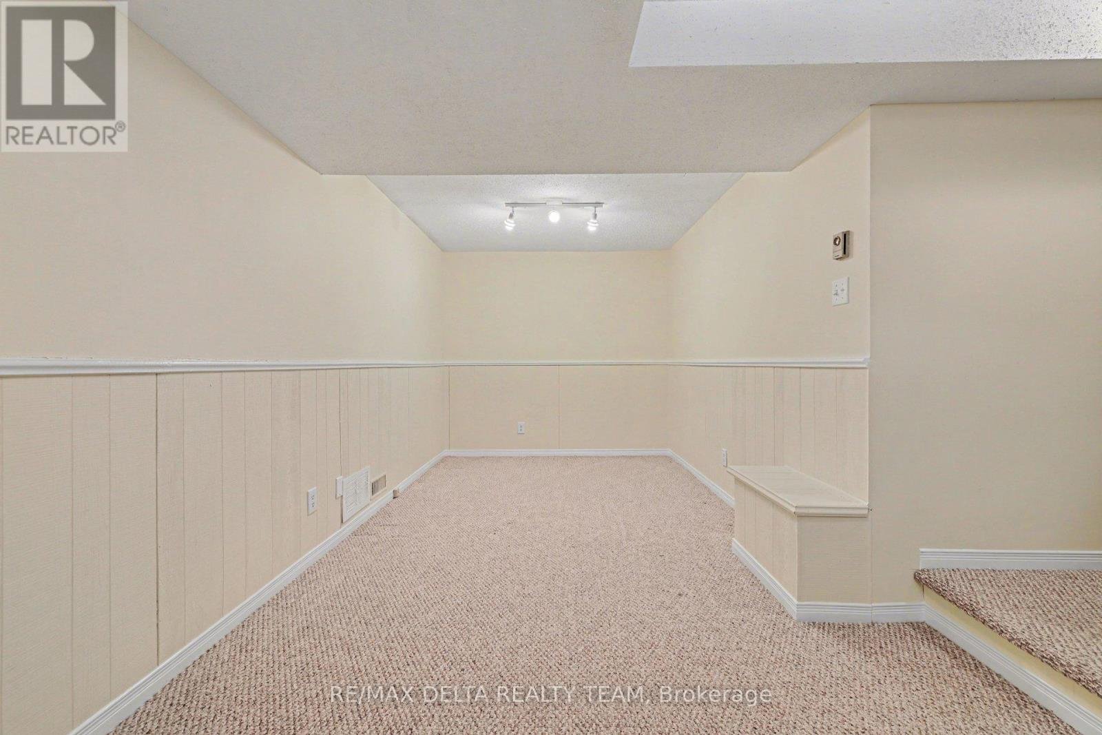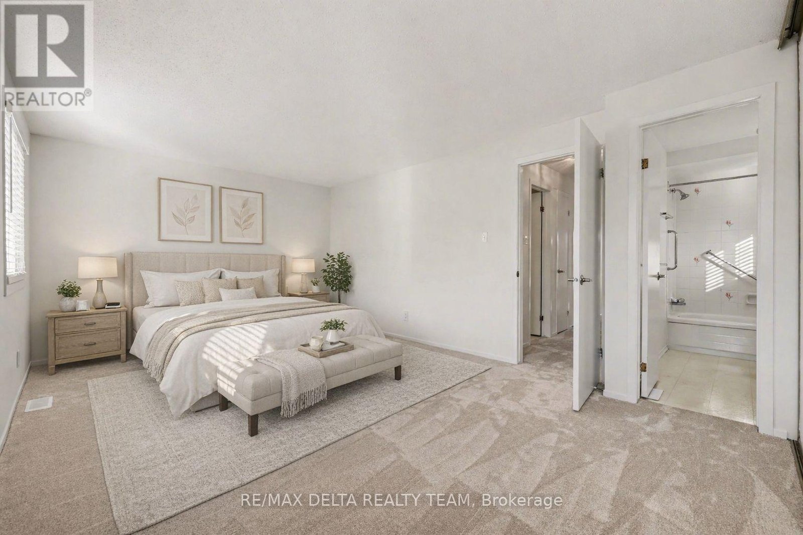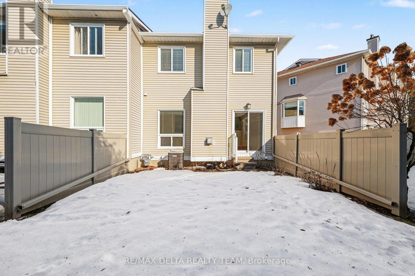 Welcome to this beautifully maintained end-unit home tucked into a quiet setting with a private, south-facing backyard that fills the space with sunshine. Step out from the ground level to your extended patio; the perfect spot for summer BBQs, entertaining friends, or simply enjoying a peaceful moment to recharge. This turnkey, move-in-ready home has been thoughtfully updated, including professional painting throughout, brand-new carpet on the stairs and upper level (2026), and refinished kitchen cabinet doors for a fresh, modern feel. Comfort is top of mind with a new furnace and humidifier system (2023), while major exterior updates completed within the past five years including the roof, windows, front door, garage door, asphalt driveway, and PVC fencing provide lasting peace of mind. Inside, you'll love the warmth of the gas fireplace, convenient inside access from the garage, a finished basement with generous storage and workbench space, and a separate laundry room. The spacious primary bedroom features a private 3-piece ensuite, complemented by a full main bath upstairs and a convenient powder room on the main floor. With parking for three vehicles (two in the driveway plus an attached garage) and Bell Fibre already connected for seamless work-from-home, streaming, or gaming, this home blends comfort and convenience effortlessly. Ideally located near Baseline Transit Station, Centrepointe Park, Algonquin College, Meridian Theatre, the Ottawa Public Library, College Square, local restaurants and pubs, major employers in the tech and government sectors, and easy access to Highway 417. Everything you need is right at your doorstep.