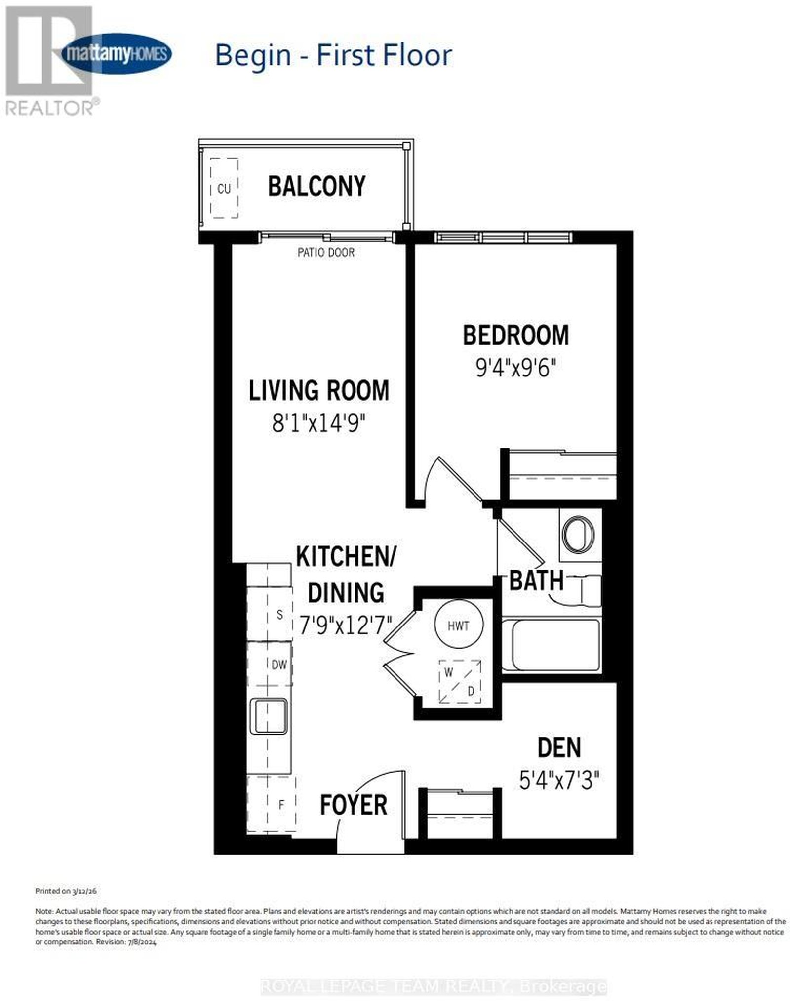 Welcome to the Begin model by Mattamy Homes, located in the sought-after Avalon community of Orléans. This brand-new 539 sq. ft. condo features a welcoming foyer with a closet, and a stylish chef-inspired kitchen with quartz countertops and a modern backsplash, all opening to a bright dining and living area with access to a private balcony. Offering one bedroom plus a den, one full bathroom, and a dedicated laundry room, this home is designed with convenience and modern finishes in mind. Enjoy 9-foot smooth ceilings, luxury vinyl plank flooring throughout (no carpet), and one parking space. Perfectly situated near parks, trails, recreation centres, shopping, dining, and transit, this condo combines style, comfort, and everyday convenience. 2 years no condo fees. Images provided to showcase builder finishes only.