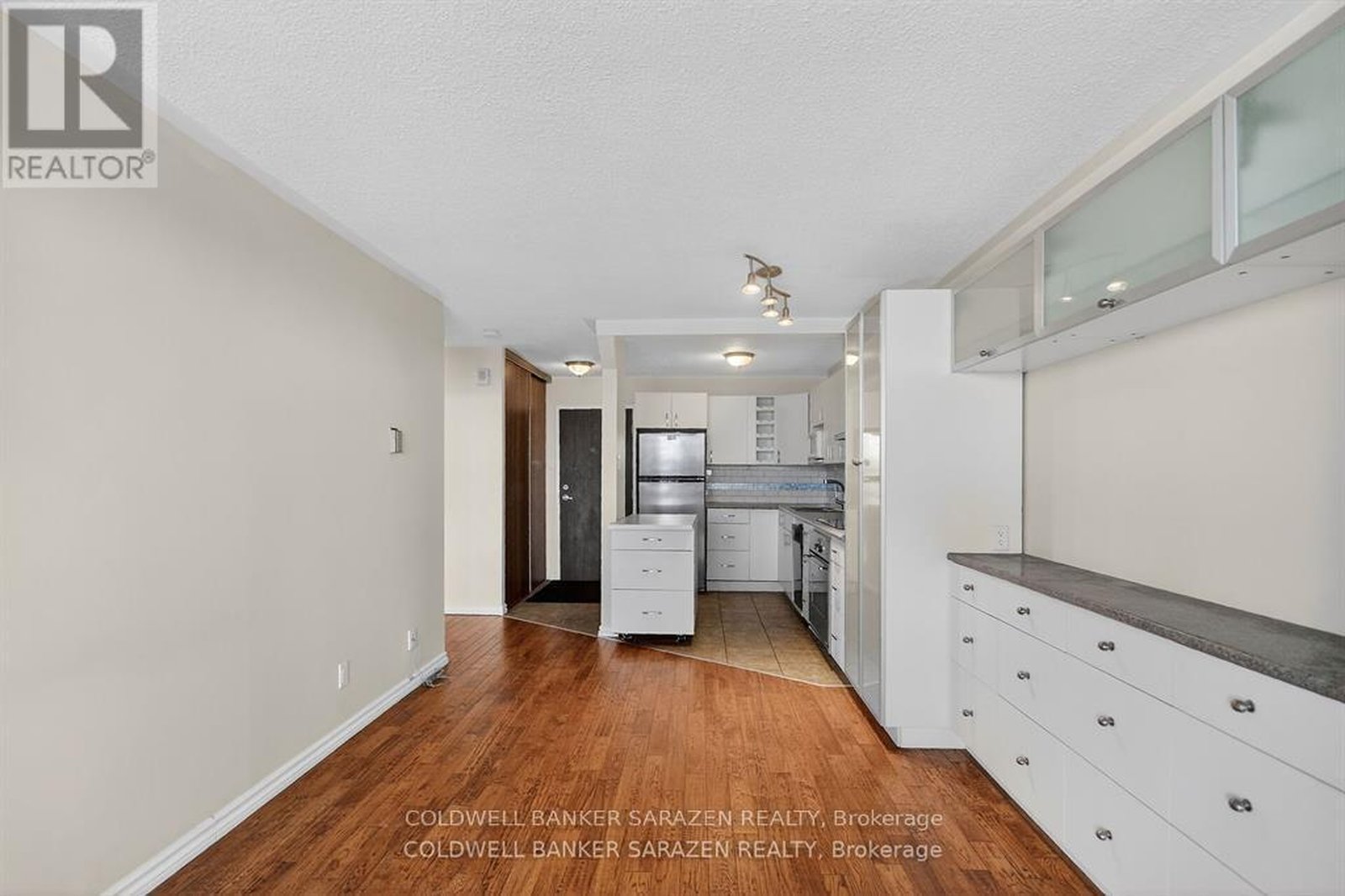 One bedroom unit that has been updated - hardwood type flooring, white cabinetry, stainless steel refrigerator, stove, black dishwasher and smart storage units. Bathroom has a new walk-in shower, new cabinetry and sink with ample bathroom storage space. The large sun filled balcony has a wonderful view of the Rideau River and Landsdown Park. Transitway is right outside the front door! 2 bus stops from the future LRT. This fabulous location allows one to walk, bike or take the bus to nearby universities, 3 major hospitals (Riverside, General or CHEO), or the shops at Trainyards or Billings Bridge Plaza . One underground parking spot and a storage locker. Portable kitchen island included. Amenities also include laundry facilities on every floor, indoor pool and guest suite