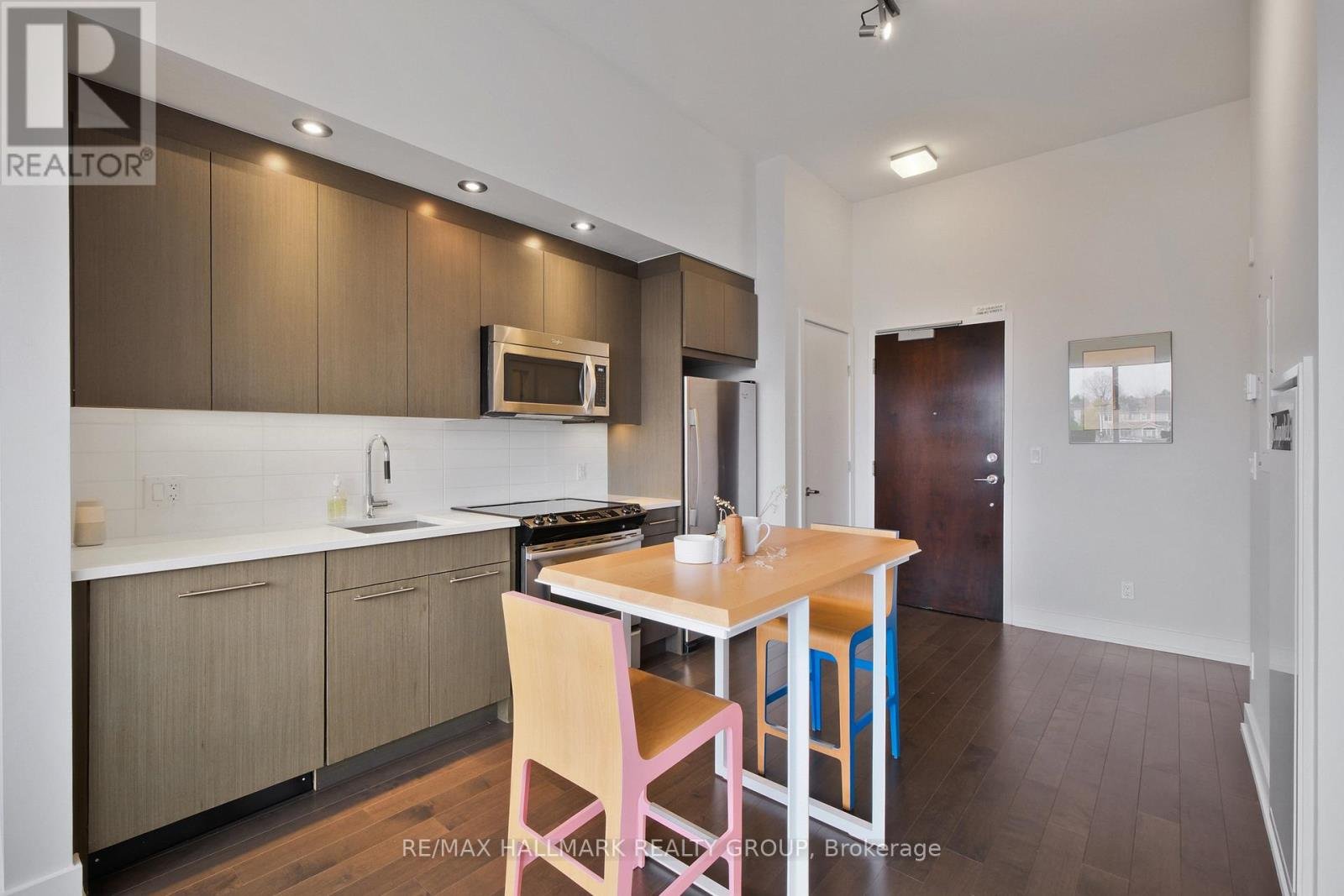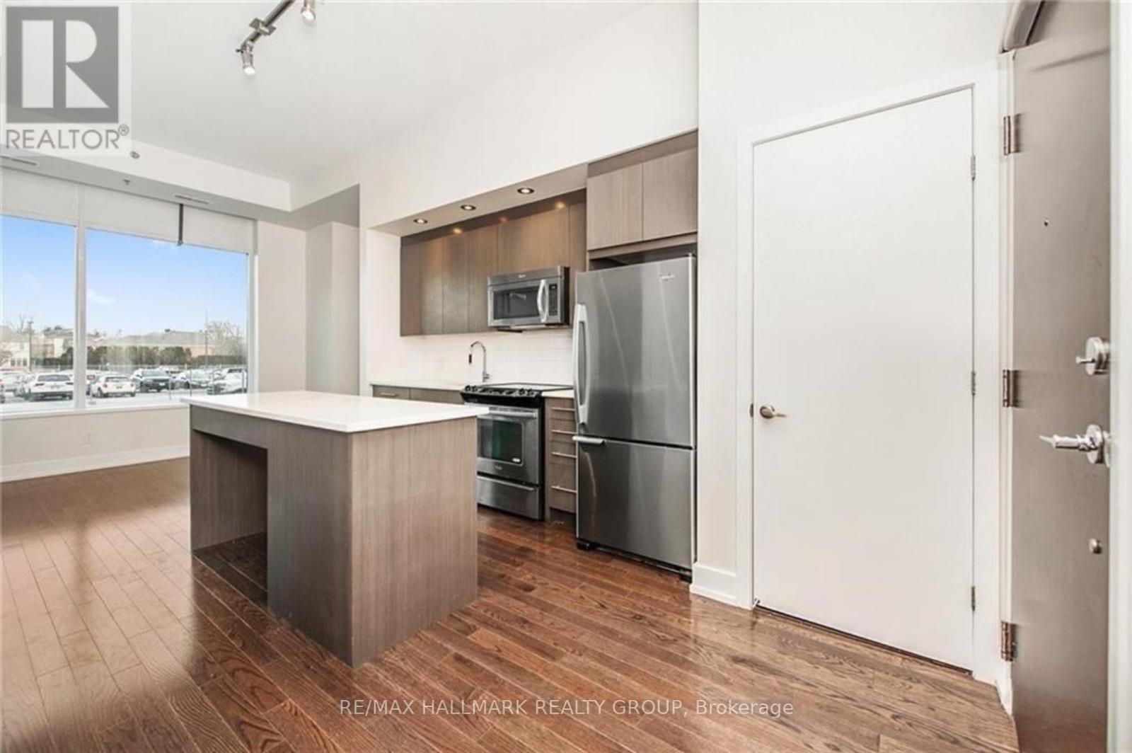 Welcome to Ottawa's prime Westboro location, where modern elegance meets effortless urban living. This next-to-new 1-bedroom suite is presented in true move-in condition and showcases brand-new contemporary flooring throughout, creating a seamless and sophisticated aesthetic. Designed with today's professional lifestyle in mind, the thoughtfully planned layout features a generously sized bedroom and a dedicated alcove within the living area-ideal for a refined home office. The open-concept design highlights a stylish kitchen complete with stainless steel appliances, quartz countertops, and dramatic 11-foot ceilings that enhance the sense of space. Oversized windows flood the interior with natural light, while in-suite laundry adds everyday practicality. Positioned on the main floor yet elevated above street level for privacy and security, this residence offers convenient access without reliance on an elevator. Residents enjoy an exceptional collection of resort-inspired amenities, including a rooftop terrace with sweeping views of the Gatineau Hills, outdoor dining and lounge spaces, a private courtyard, home theatre, and an elegant party room. Wellness offerings include a fully equipped fitness center, yoga studio, sauna, and steam room, along with thoughtful additions such as a pet grooming station and ski tuning area. Perfectly situated in the heart of Westboro, you can cycle to Westboro Beach, explore scenic pathways along the Ottawa River, or enjoy dinner at The Grand Pizzeria and Bar overlooking the water. Complete with underground parking, a storage locker, and the rare advantage of no rear neighbours, this move-in-ready condo represents one of the best values for newer construction in the city. With very few new condominium projects currently underway, this is not only an exceptional place to live but also a compelling long-term investment opportunity