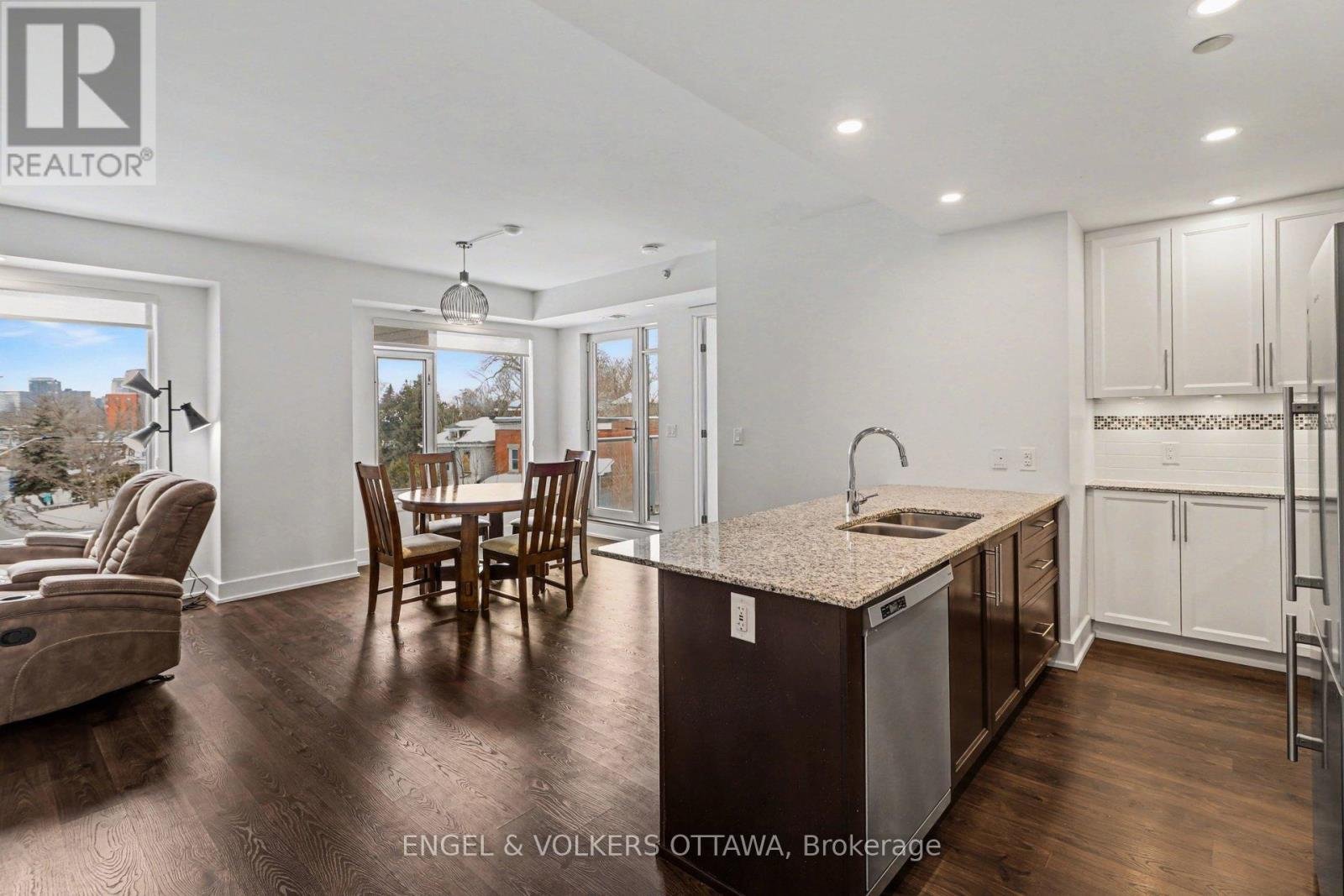 Bright two-bedroom, two-bathroom condo in the heart of Beechwood Village. This impeccably maintained condo offers an open layout with hardwood throughout, granite counters in the kitchen and bathrooms, a gas cooktop, and in-suite laundry. Both bedrooms feature custom closets, and the covered balcony includes a gas BBQ hookup for easy outdoor cooking. The unit also comes with a dedicated storage locker and underground parking equipped with an EV charger. Amenities including a guest suite, fitness centre, party room, meeting room and a lounge with a double-sided fireplace that opens to the rooftop terrace. The building is pet-friendly and also offers a dog and car wash, workshop, visitor parking and bike storage. Steps to Beechwood's cafés, restaurants, shopping, transit, and recreation.