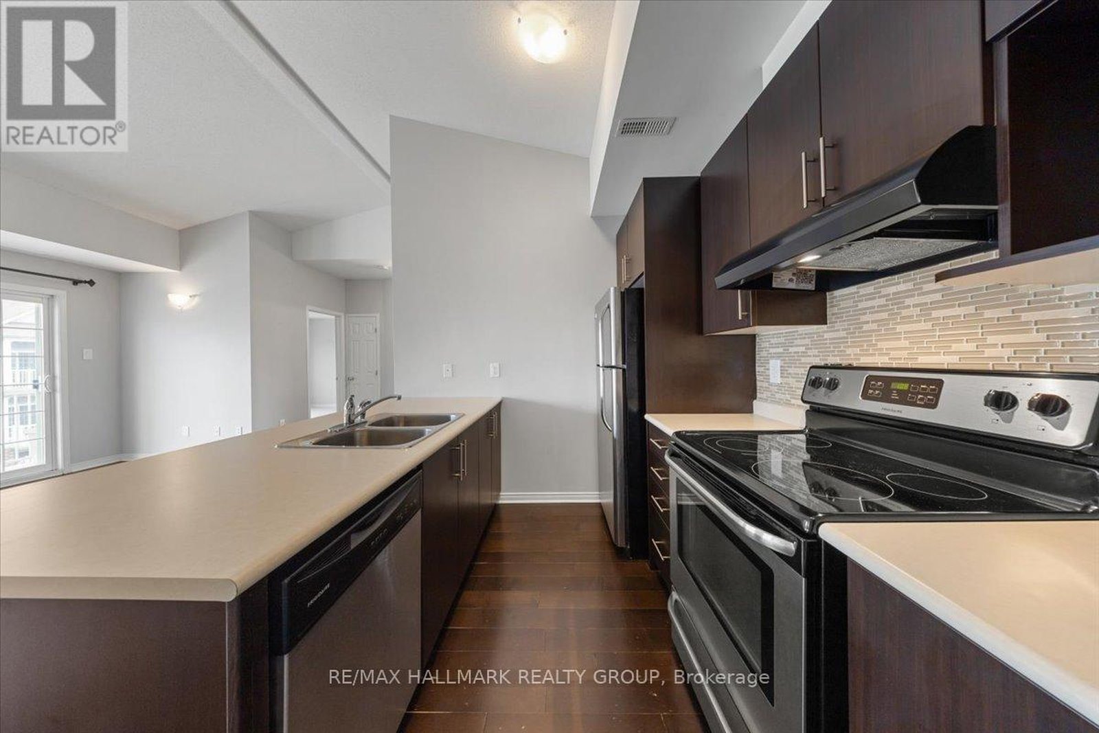 THE PERFECT BLEND OF LOCATION AND CONVENIENCE! Discover this bright and spacious 2-bedroom, 1-bathroom upper-level condo in Kanata's sought-after Trailwest community. This MOVE-IN-READY home features an open-concept layout with soaring vaulted ceilings, fresh neutral paint, and new luxury carpet. The modern kitchen is equipped with stainless steel appliances, plenty of cabinetry for all your essentials, and a breakfast bar that opens to an expansive main living area where large windows allow the main living space to be flooded with warm, natural light. Step through the living area to a large private balcony, perfect for relaxing on a warm summer evening or enjoying your morning coffee. Both bedrooms are generously sized with large closets, complemented by a convenient linen closet for additional storage and a full main bathroom. Convenient in-unit laundry adjacent to the kitchen. Perfect for FIRST-TIME HOMEBUYERS, INVESTORS or those looking for MAINTENANCE FREE LIVING. Ideally located just steps from public transit, parks and minutes to Highway 417, restaurants and top schools.