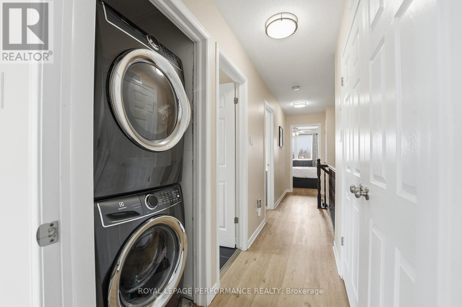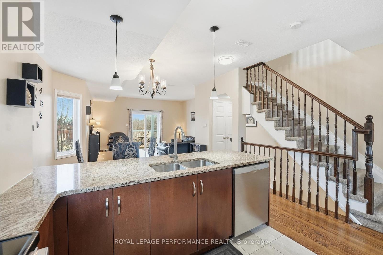 Welcome to this 3-bedroom + den, 2-bathroom upper-unit stacked condo in Kemptville Meadows, perfectly located on the edge of town where you can enjoy a quiet community while staying close to everything you need. This move-in ready and beautifully upgraded owner-occupied condo offers over 1,300 sq ft of living space and is ideal for first-time buyers, couples, young families and investors alike. The bright main floor features several windows, beautiful hardwood flooring, a versatile den perfect for a home office or playroom, an open-concept living space between the kitchen and living room, a convenient powder room & laundry area. The kitchen is stylish and functional, offering dark cabinetry, granite countertops, stainless steel appliances, and a breakfast bar with seating area. The living room is spacious and provides access to a large balcony. Upstairs, you'll find vinyl flooring throughout, three well-sized bedrooms, and a full bathroom. The primary bedroom offers two closets and its own private balcony. Additional highlights include two parking spaces and a location that puts you just minutes from schools, the hospital, parks, and the shops and restaurants of charming Old Kemptville. Updates since 2020 includes Trane Furnace and AC, Water softener, kitchen appliances, Powder room update & new cold air return venting. Parking # 12 (in front of unit) and # 169.