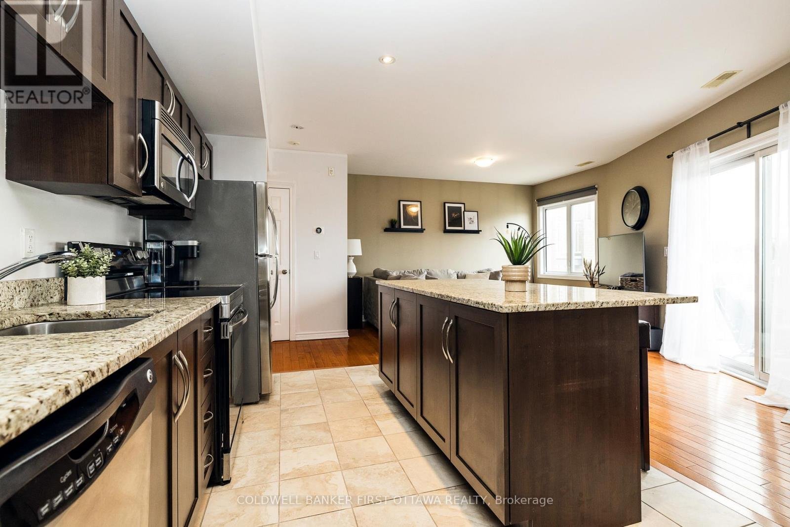 Calling first-time homebuyers, investors and downsizers! This beautiful 2 bedroom, 3-bath executive upper-level condo townhouse offers modern comfort in a highly convenient location. The bright open-concept main floor features beautiful hardwood floors and a chef-inspired kitchen with granite countertops, stainless steel appliances, ample cabinetry and a large island with space for a dining table. The spacious living room opens to a private balcony, and the main floor also includes a powder room. Upstairs, the primary bedroom offers a 3-piece ensuite along with another additional well-sized bedroom complete with its own balcony and another full 3-piece bathroom. Laundry is conveniently located on the upper level near the bedrooms. This condo is ideally located just minutes from the Queensway, Bayshore Mall, light rail, parks, schools and shopping.