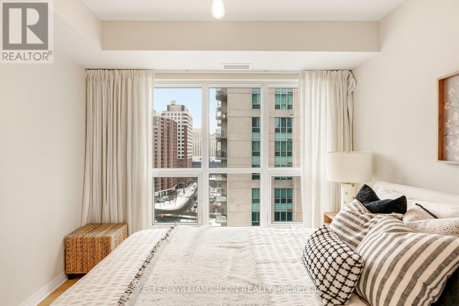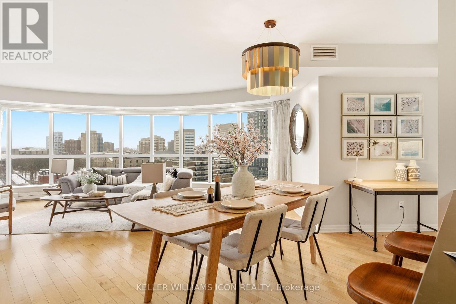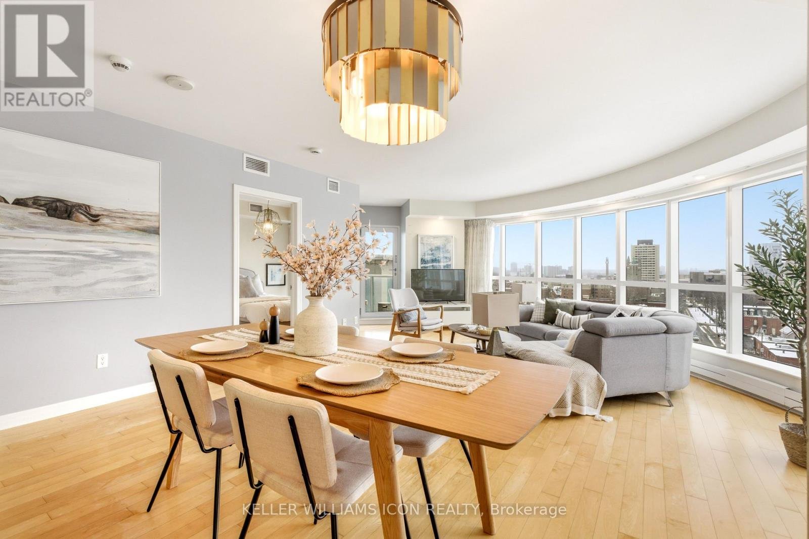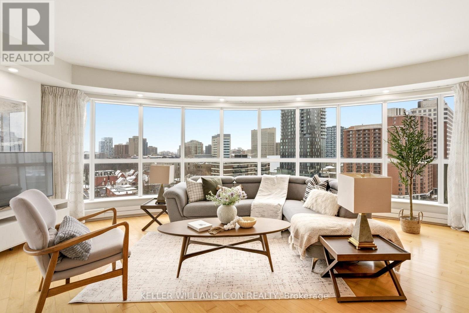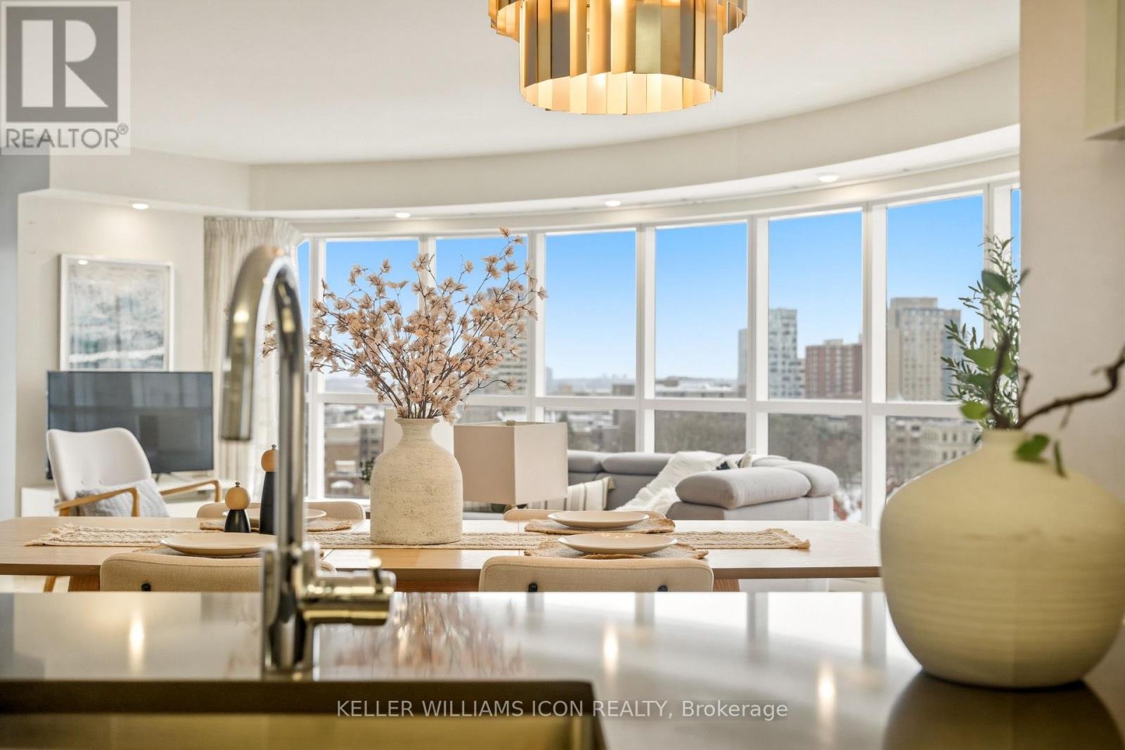 Wow residence in the heart of downtown Ottawa, where distinctive curved windows wrap around the living space and fill the home with natural light while showcasing sweeping panoramic views across the city skyline. Offering approximately 1,280 sq. ft., this bright and spacious two-bedroom, two-bathroom condo features a well-designed layout with an open-concept living and dining area that flows seamlessly for both everyday living and entertaining, a modern kitchen with clean finishes and ample cabinetry, a generously sized primary bedroom, and a versatile second bedroom ideal for a home office or guest accommodation. The expansive window design not only enhances the sense of space but also creates a unique living environment rarely found in typical condo layouts. Residents benefit from a professionally managed building with 24-hour concierge, indoor pool, fitness centre, sauna, and party and meeting rooms. Located just steps to Parliament Hill, the ByWard Market, Rideau Centre, University of Ottawa, and LRT transit, this home offers exceptional walkability, strong rental appeal, and a highly convenient downtown lifestyle.