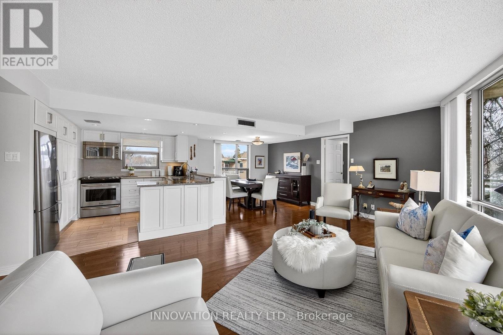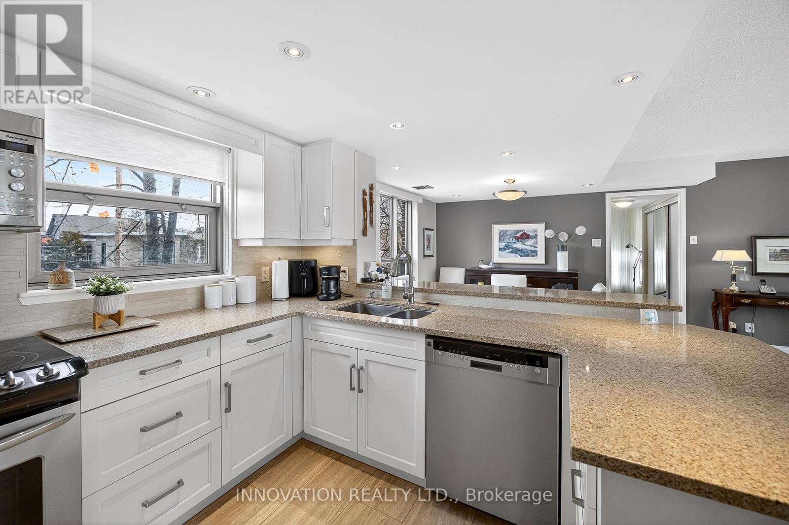 Welcome to The Watermere - a beautifully renovated second-floor condo offering bright, modern living with beautiful views of the Rideau River. Located in the heart of trendy Beechwood Village, this spacious two-bedroom, two-bathroom unit is filled with natural light thanks to floor-to-ceiling windows with desirable south-west exposure that flood the living space with sunshine throughout the day.The open layout features engineered hardwood flooring and a gorgeous renovated kitchen with neutral finishes that create a warm and inviting atmosphere. The primary bedroom offers a peaceful retreat with its own private balcony overlooking the river, along with a full ensuite bathroom and generous closet space. A second bedroom and full bathroom provide excellent flexibility for guests, a home office, or additional living space. Enjoy outdoor living with two balconies, perfect for relaxing and taking in the scenic views. The unit also includes in-suite laundry, underground parking, and visitor parking for added convenience. Located in a well-run and private building, this home is perfectly positioned just steps to groceries, coffee shops, restaurants, parks, pharmacy, bank, public transit, and all the amenities that make up one of Ottawa's most vibrant neighbourhoods. Enjoy walkable urban living while still feeling tucked away in a quiet riverview setting. 24 Hours Irrevocable on all offers.