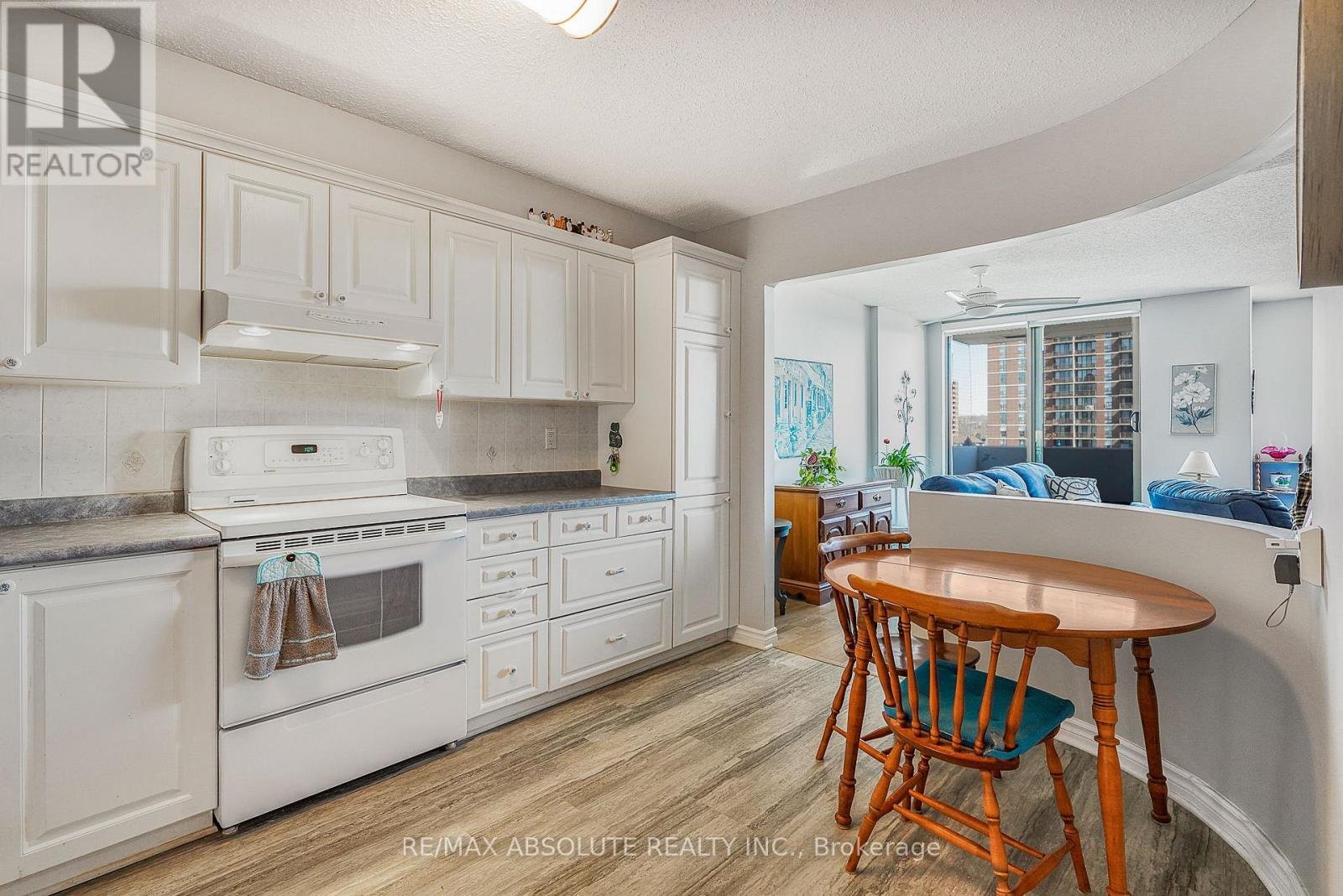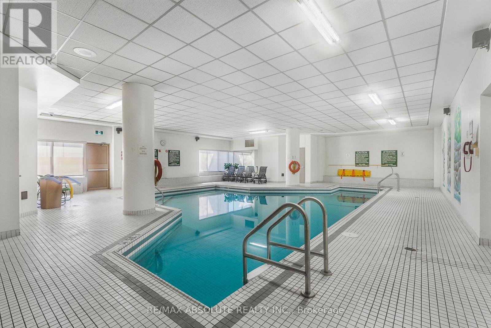 This beautifully maintained open-concept condo has been thoughtfully renovated over the years, offering a perfect blend of style, comfort, and functionality. The updated kitchen features elegant, ample cabinetry, open concept to main living area ideal for both everyday living and entertaining. Enjoy the seamless flow of the living and dining areas, enhanced by newer high-end laminate flooring that extends throughout the main living space, hallway, and bedrooms, creating a warm and cohesive feel. The bathroom has also been tastefully updated, adding to the home's modern appeal. Custom blinds throughout provide both privacy and a polished finishing touch. This unit stands out with several rare and desirable features, including a full ensuite, in-unit laundry for added convenience, parking in a secure garage, central air conditioning, and access to a well-maintained indoor pool-perfect for year-round enjoyment. Step out onto the East facing balcony and unwind while taking in the lovely views and morning sun. A fantastic opportunity to own a move-in-ready condo with exceptional upgrades in a sought-after building!