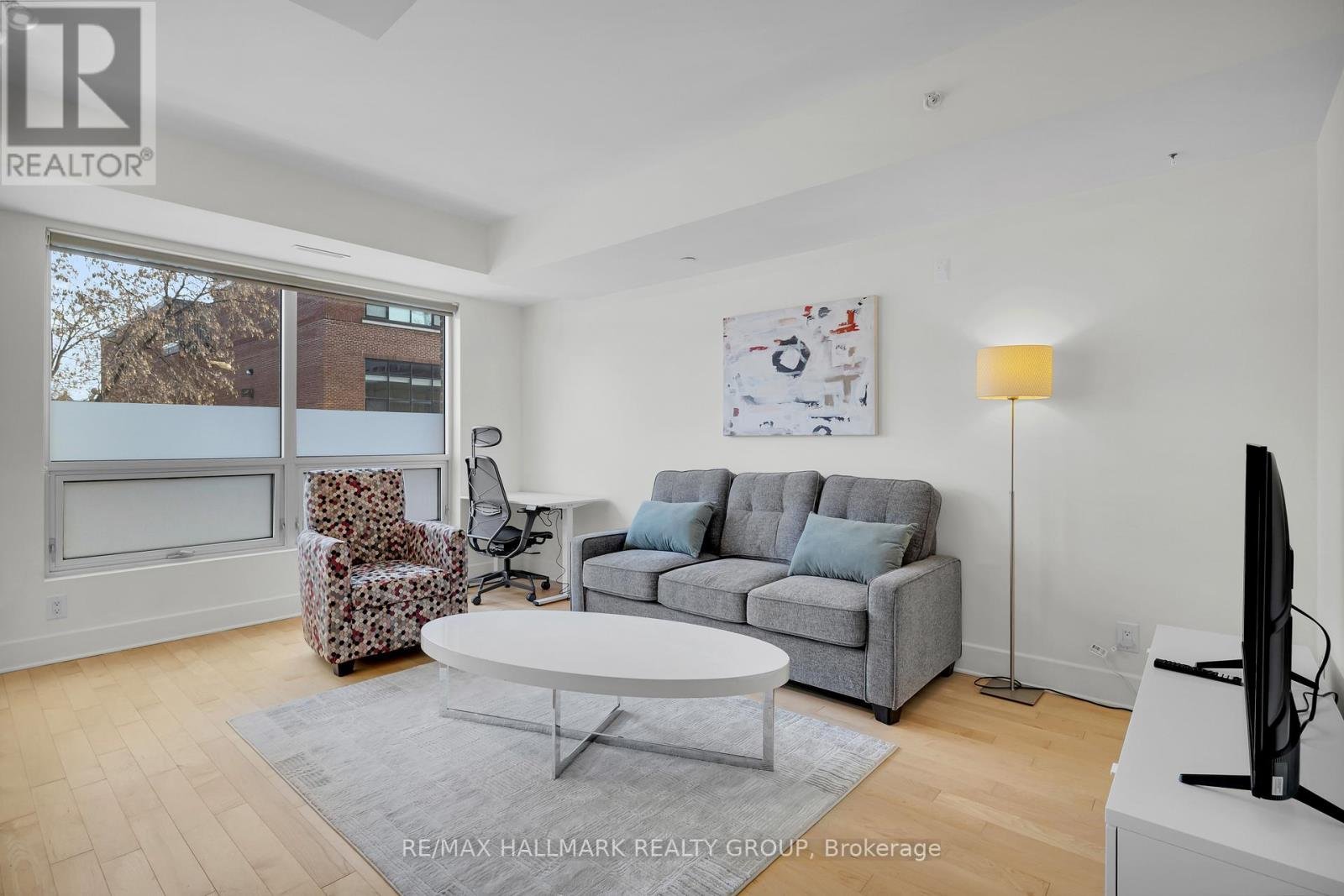 AMAZING; BRAND NEW FURNITURE, ALL INCLUDED: TURN KEY. A model suite! Built in 2011, this building is ideally situated between Little Italy and Chinatown - ACROSS FROM ST-ANTHONY ELEMENTARY school, shops, great restaurants, pizzerias, pubs, and cozy local coffee shops. You're also just minutes from Dow's Lake, Lebreton Flats, the 417, the soon-to-open new Public Library, and the O-Train and public transit (Pimisi Station).This WONDERFUL one-bedroom, one-bathroom modern condo with in-unit laundry AND 2 LOCKERS offers an excellent opportunity to live in a vibrant neighbourhood and a welcoming community. The well-designed interior features nine-foot ceilings, open concept living area, a kitchen island, large updated bathroom, beautiful hardwood floors, and large storage locker conveniently located on the same floor as the unit WITH ANOTHER LOCKER AT THE GARAGE LEVEL. The condo comes fully furnished, with approximately $5,000 invested in furniture, plus an additional $9,000 in upgrades-including a new A/C unit ($7,000), a new washing machine ($800), and fresh paint ($1,200). 7 APPLIANCES INCLUDED. Ideal for first-time home buyers, downsizers, or investors. VERY FLEXIBLE POSSESSION.