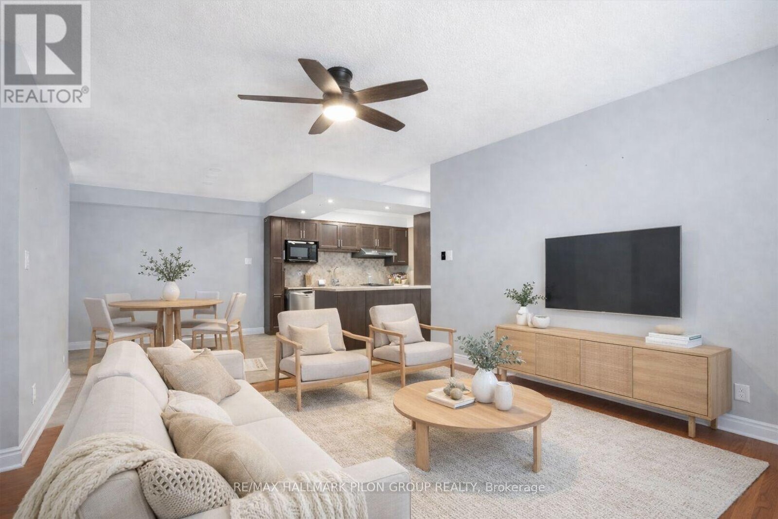 Welcome to this lovely and well-maintained 2-bedroom condo in the heart of Embrun - perfectly located near parks, shopping, schools, and within walking distance to all local amenities. This bright, open-concept unit offers a comfortable and functional layout ideal for investors, first-time buyers, and down-sizers alike.The renovated kitchen features modern cabinetry, ceramic flooring, breakfast bar and updated stainless steel appliances, including a gas oven. The adjoining dining and living areas are filled with natural light and modern pot lights. The unit also features include new remote-control ceiling fans and custom vertical blinds. Both bedrooms are generous in size with laminate flooring throughout, offering a clean and cohesive look. The renovated bathroom showcases a new vanity, backlit mirror, and waterfall shower head. Additional highlights include in-unit stacked laundry with additional storage space, natural gas forced-air heating with central air conditioning and two parking spaces. Whether you're looking for a move-in-ready home or a solid investment opportunity (currently rented at $1,947/month), this property offers exceptional value in a growing community. Enjoy comfort, convenience, and an ideal location right in the heart of Embrun. Don't be too late! Some photos virtually staged.