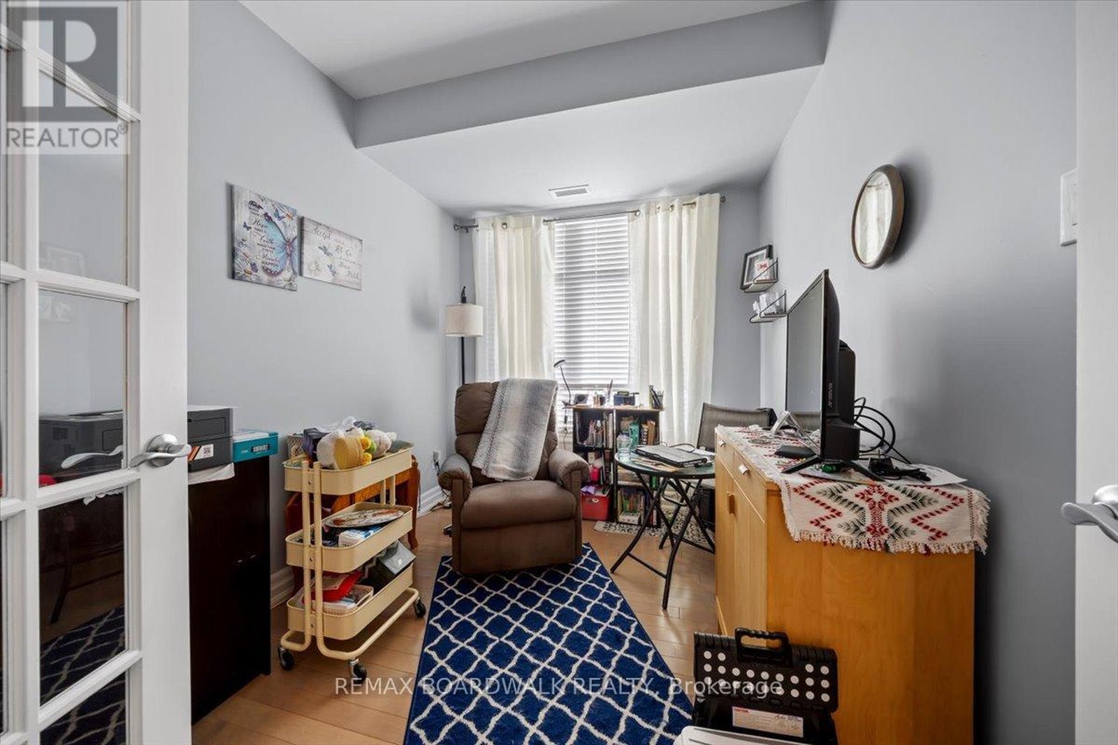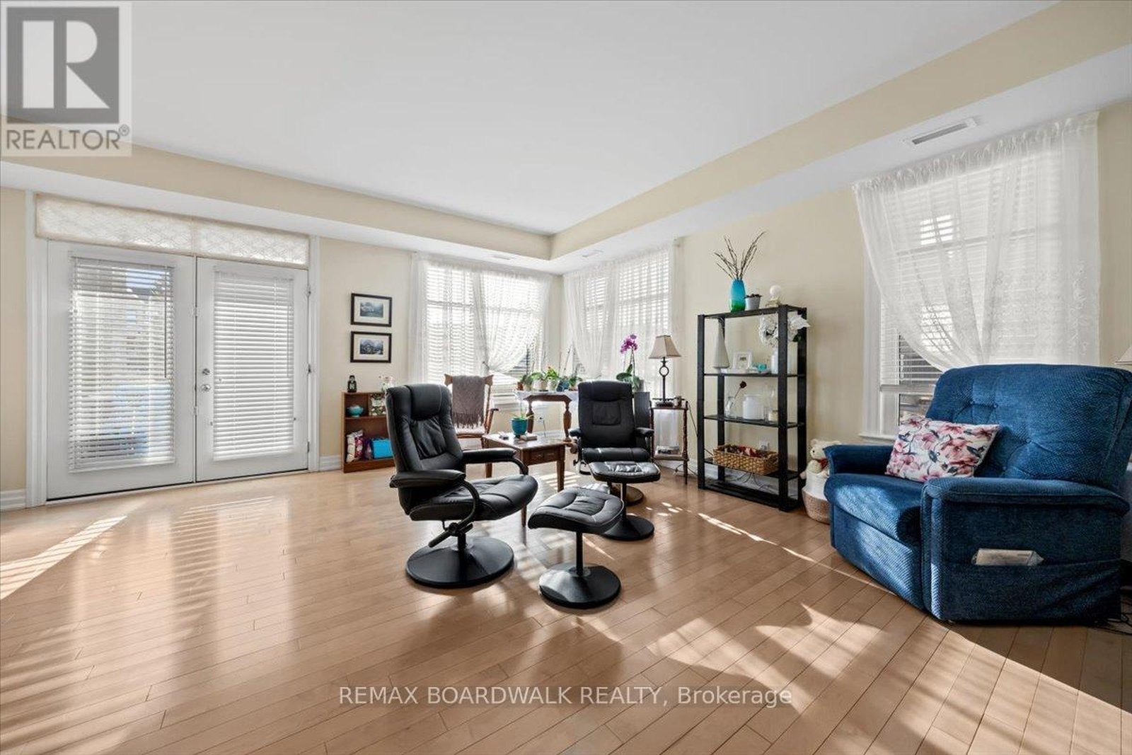 Experience effortless living in this beautifully maintained ground-level 2-bedroom + den condo with a walkout terrace, ideally located in the heart of Stittsville. With over 1,300 sq. ft. of single-level living, this bright home features an open-concept layout with abundant natural light and direct access to a private terrace. Quality finishes include maple hardwood flooring, quartz countertops, upgraded cabinetry, smooth ceilings, and a sleek glass en-suite shower. The kitchen offers an island, pantry storage, and stainless steel appliances. The primary bedroom includes a walk-in closet and ensuite, while the second bedroom is conveniently located near a full bathroom. The den is perfect for a home office or extra living space. Additional features include in-unit laundry, central air conditioning, underground parking, and a storage locker. Located in a quiet, well-managed building with ample visitor parking, this home offers a low-maintenance living without compromise. A true standout you won't want to miss!