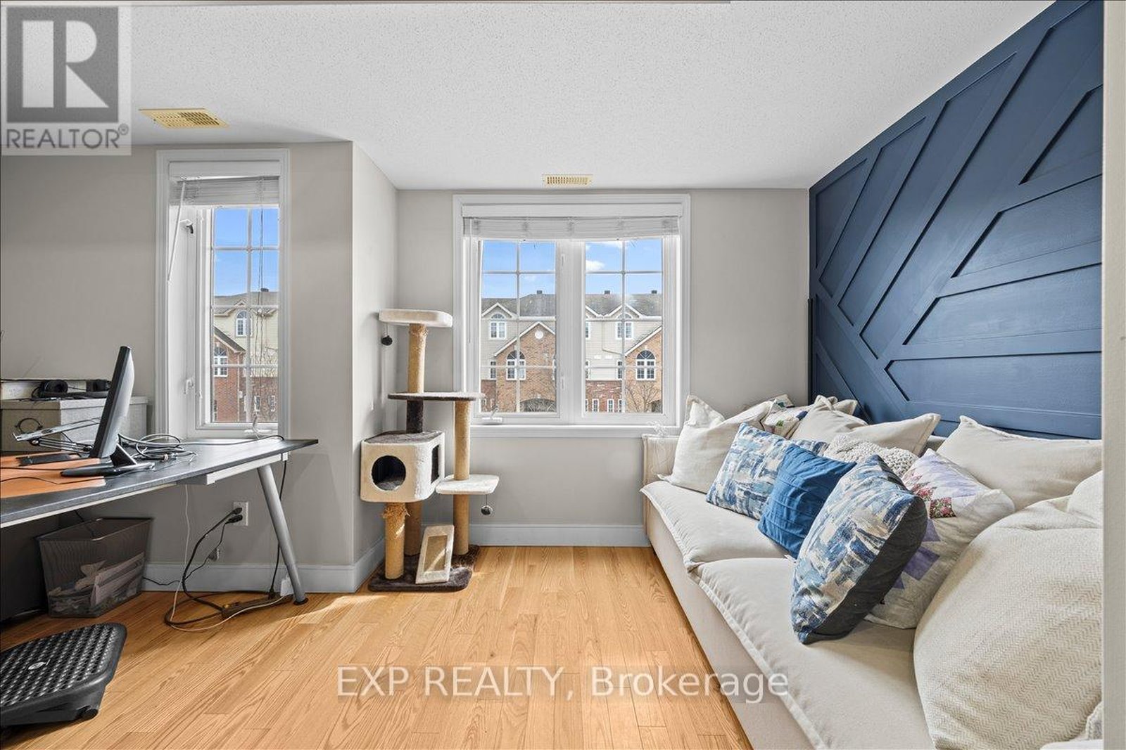 Welcome to 57 Steele Park - a beautifully finished 2-bedroom + den, 1.5-bath upper stacked condo that checks every box.The main floor impresses immediately with rich hardwood flooring, detailed trim work, and a warm, thoughtfully designed living space. The open-concept kitchen, dining, and living area flows naturally onto a private balcony - perfect for morning coffee or winding down after work. A powder room and bright, a versatile den ideal for a home office or flex space on the main level add everyday convenience. Upstairs, the hardwood continues throughout. Two well-sized bedrooms, an updated full bathroom, and an updated in-unit laundry room - everything is clean, fresh, and move-in ready. The trim work and finishes here are a cut above. This unit was done with care, and it shows. Steps from Ken Steele Park, minutes to Highway 417, LRT, St. Laurent Mall, Gloucester Centre, and the downtown core - the location delivers without compromise. A strong opportunity for first-time buyers or anyone looking for a well-finished, low-maintenance home in a connected east-end neighbourhood.