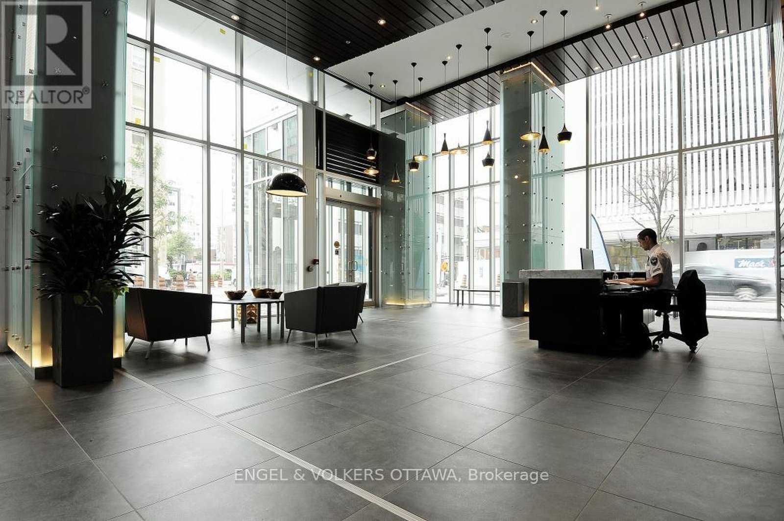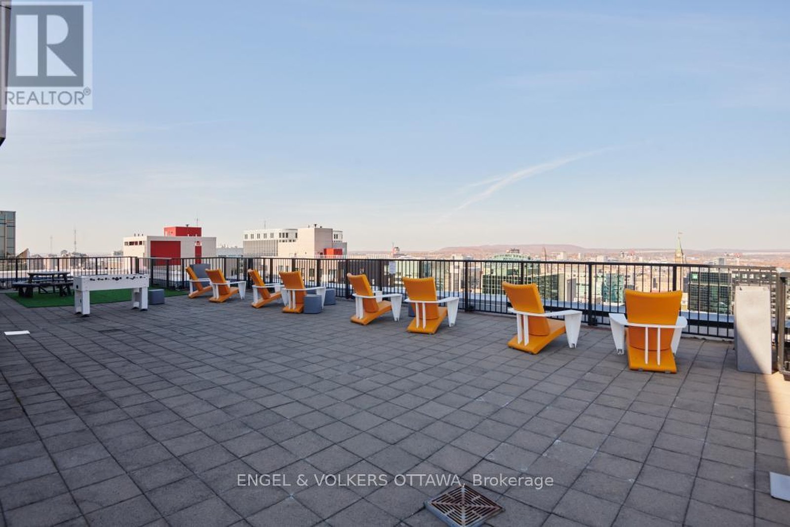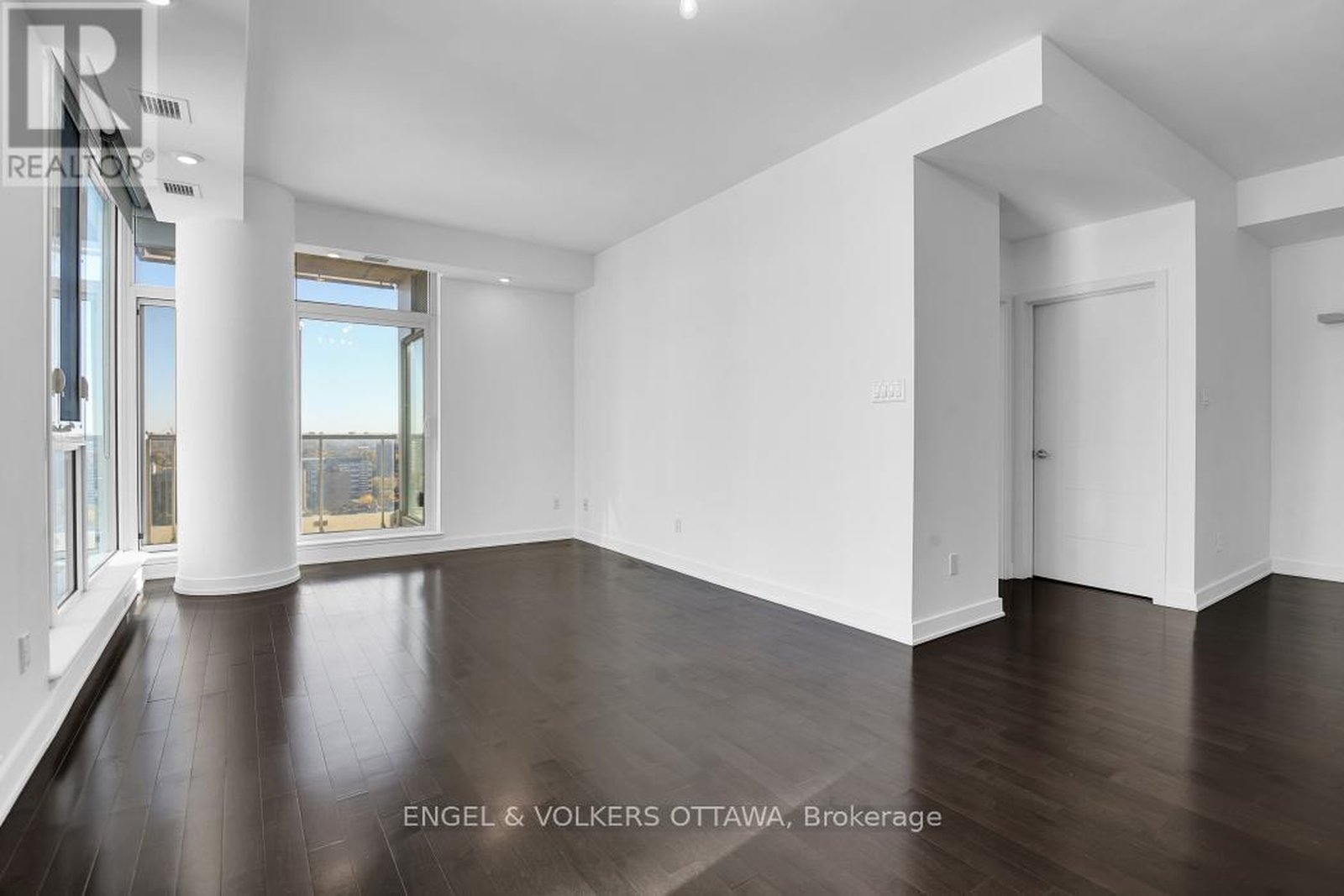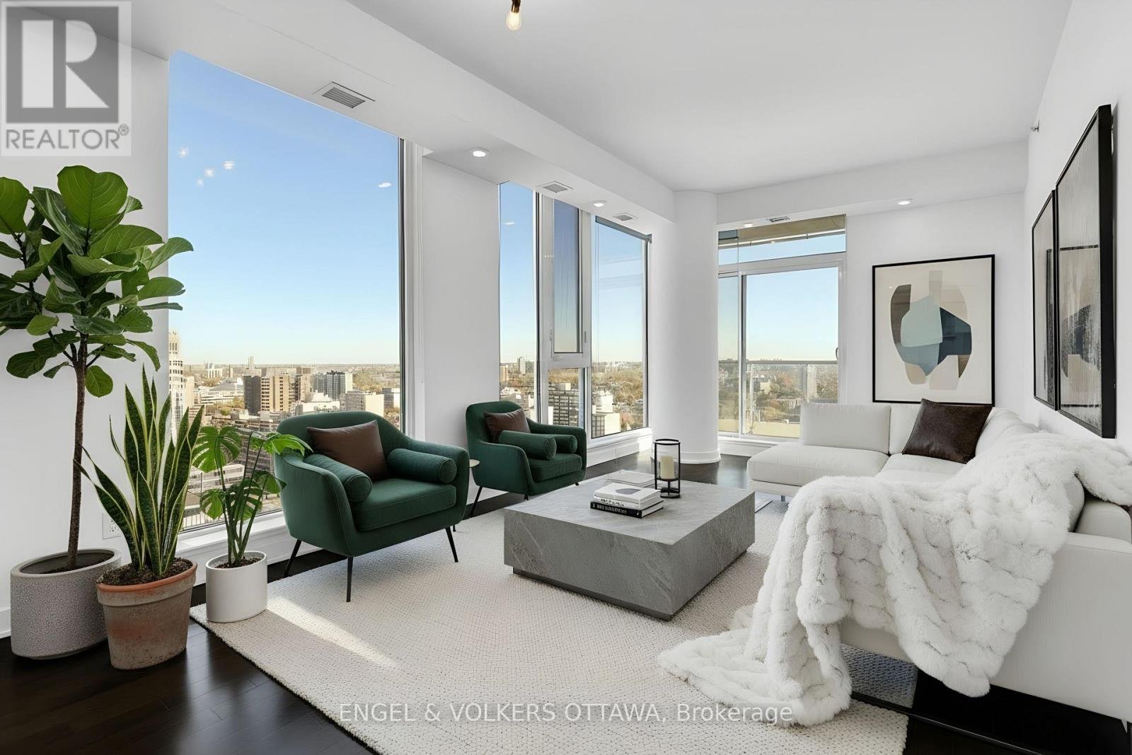Luxurious 1-bedroom + den CORNER unit, spanning 805 sq. ft.-one of the largest 1 bed. floor plans in its collection. This sophisticated residenceoffers an open-concept layout with floor-to-ceiling windows that provide million-dollar, unobstructed downtown views from the 20th floor. Thecustom kitchen is equipped with granite countertops, a beautiful new backsplash, and elegant white cabinetry. Sliding doors open to a privatebalcony, perfect for enjoying the city scape. The versatile office/den area is conveniently located to the right of the kitchen. The large primarybedroom boasts a corner window and a dedicated study area. Additional features include in-suite laundry (2024), custom roller blinds (2025),hardwood floors, and updated light fixtures throughout the unit. A parking space and storage locker are also included. Residents will enjoy anarray of amenities, including a 24-hour concierge/security service, a guest suite, a terrace, an outdoor patio with BBQs, an indoor pool, a gym,and a conference room. For ultimate convenience, Farm Boy is located on the ground level, with amazing restaurants and an LCBO just stepsaway. The building offers quick access to Parliament Hill, Rideau Centre, the University of Ottawa, and the Financial District.