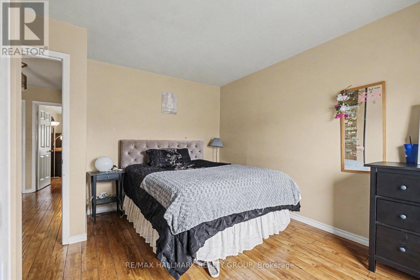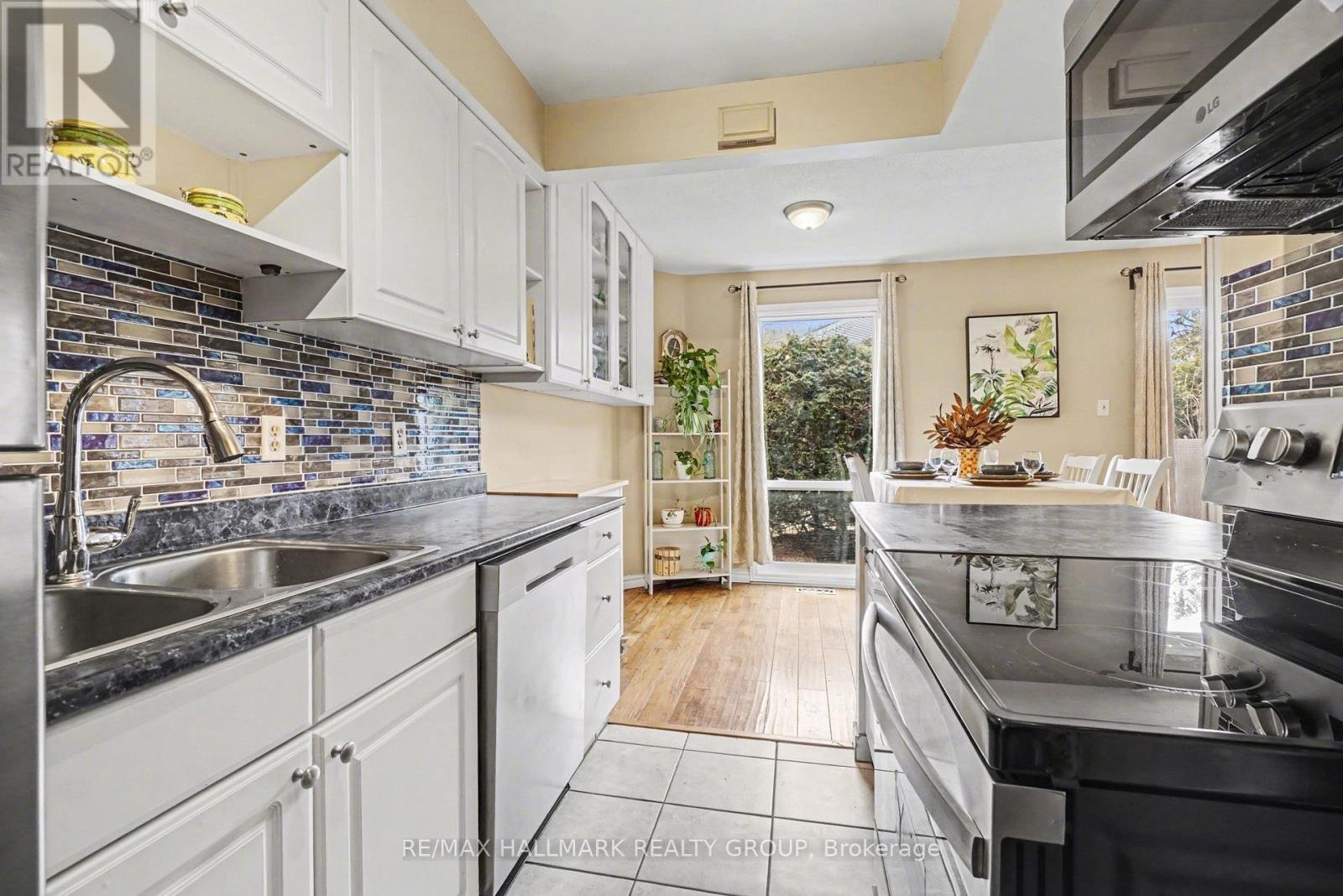 Rare find in Bells Corners! This exceptionally spacious 4-bedroom, 2.5-bathroom end-unit condo offers over 1,800 sqft of living space and is perfect for families or professionals seeking a low-maintenance lifestyle without sacrificing room. Opportunities like this are few and far between, especially featuring a rare attached 1-car garage plus an additional driveway spot for two-car parking. Step inside to a bright, modern main floor featuring high-end laminate and ceramic tile throughout. This home is completely carpet-free for easy cleaning and a sleek look. The kitchen is a chef's delight, boasting crisp white cabinetry, a stylish backsplash, and sleek stainless steel appliances. You will love the open-concept living and dining area, which is flooded with natural light through stunning floor-to-ceiling window and a patio door leading to your private outdoor space. A convenient powder room is also located on the main level. The second floor continues the premium laminate flooring and hosts an impressively spacious primary suite. Uniquely, this floor offers three additional well-sized bedrooms providing ample space for a growing family, guests, or a home office. The full bathroom on this level shines with modern finishes and a beautiful quartz countertop. The finished lower level adds incredible value, offering a large, open recreation room with endless possibilities for a home gym, theater, or play area, plus a bonus bathroom with a stand-up shower. As an end unit, you enjoy a larger-than-average backyard and added privacy. Perfectly positioned in a prime location, you are minutes away from the Queensway Carleton Hospital, NCC trails, parks, diverse shopping, and transit. With reasonable condo fees and a layout that is nearly impossible to find in this price bracket, this property is a standout gem. These units do not come for sale often, so do not miss your chance to own this versatile and move-in-ready home.