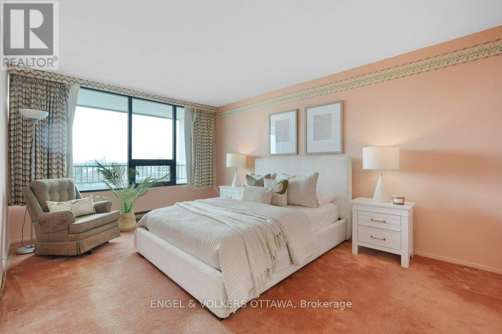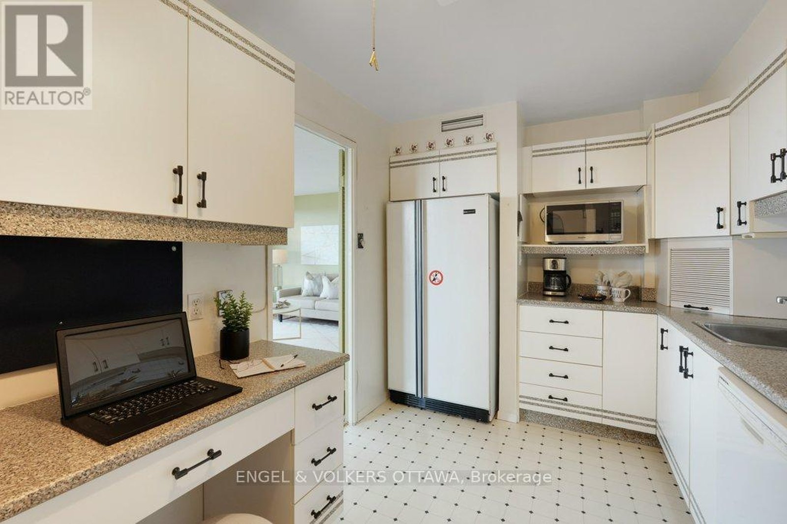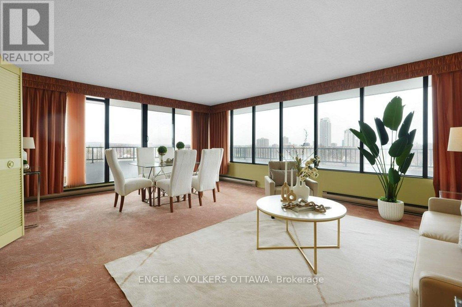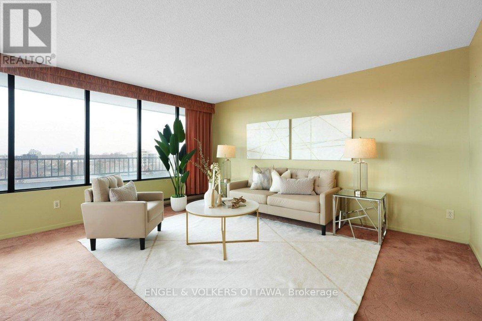 Perched on the north-east corner of this iconic Westboro building, this 2-bedroom, 2-bathroom unit offers sweeping city and river views from every angle, including a wraparound balcony made for morning coffee or watching Canada Day fireworks light up the sky over the Ottawa River. The Barclay isn't just a building; it's a community. Residents here have organically built something rare: a vibrant, engaged neighbourhood within four walls. Think social clubs, gardening groups, regular parties, and neighbours who actually know each other's names. It's the kind of place people move into and never want to leave. At 1,040 sq ft, the unit is a blank canvas. The primary bedroom features a 3-piece ensuite with a stand-up shower, and the second full bathroom serves guests and the second bedroom with ease. Move in and freshen things up with new flooring and a few personal touches, or take it to a full renovation. The bones and the views do the heavy lifting either way. Amenities are exceptional: indoor pool, saunas, exercise room, library, guest suite, party room, outdoor terrace with BBQs, workshop, and more. One indoor parking spot and storage locker included. And the location? The new KichiZibi LRT station is less than 100 metres from the front door, putting the rest of the city at your fingertips while keeping you squarely in the heart of Westboro.