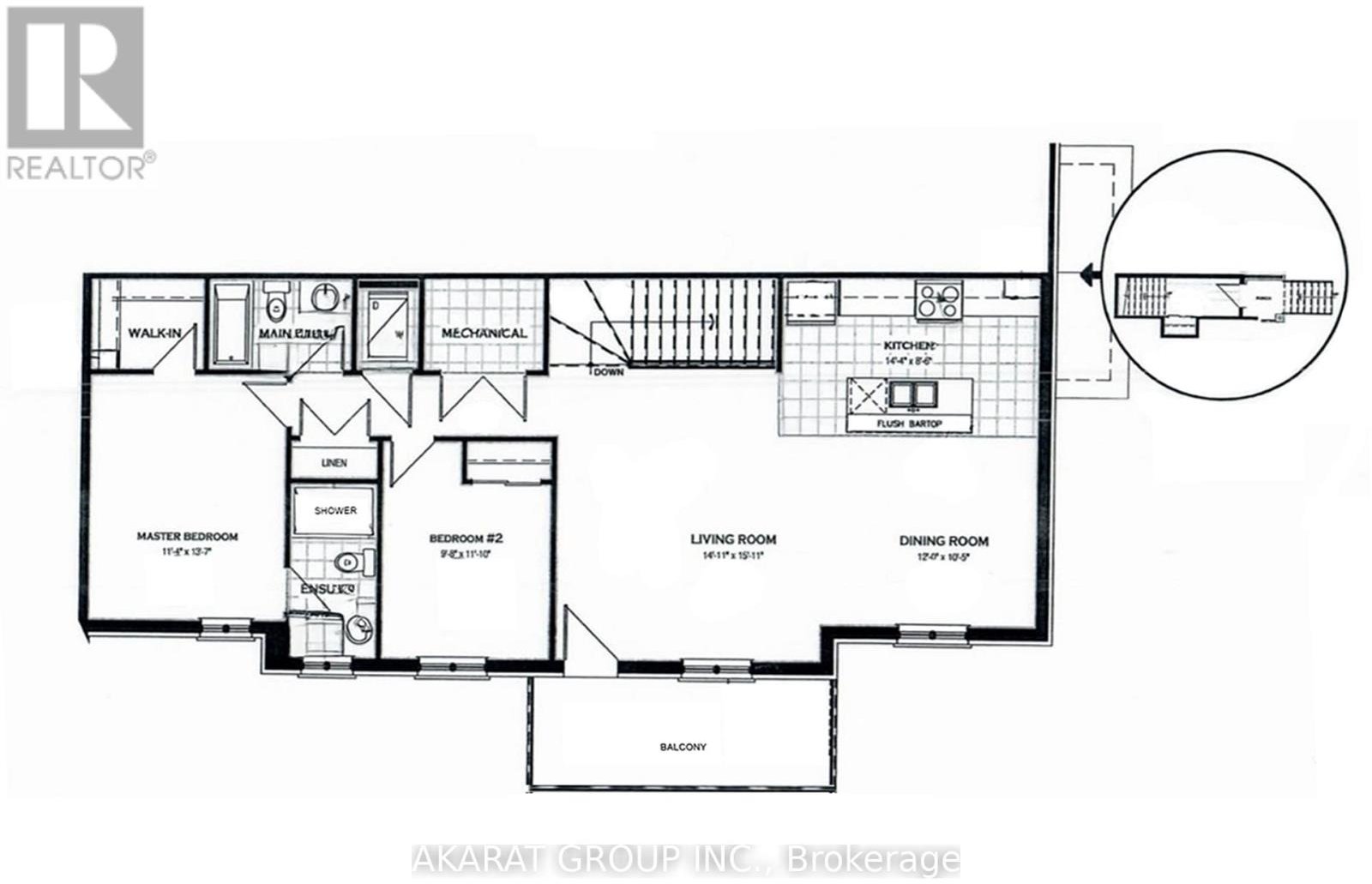 2-bedroom, 2-bath penthouse condo offers over $50K in premium upgrades and a bright, modern living experience. Featuring 9 ft ceilings, 5.5 ft tall east-facing windows, and premium 5" engineered oak hardwood floors, the home is filled with natural light and high-end finishes. The upgraded kitchen includes quartz countertops, an extended island with breakfast bar, designer wall tiles, under-cabinet lighting, and an open hood fan. Both bedrooms feature plush dense broadloom with thick under padding, and the primary ensuite showcases oversized tiles and sleek modern fixtures. Additional highlights include extra dimmable pot lights, a larger-than-standard staircase, a spacious 6' x 15' balcony, and ample storage including a large linen closet and dedicated mechanical/storage room. With no neighbors above, this penthouse combines privacy, style, and comfort in an exceptional open-concept layout.