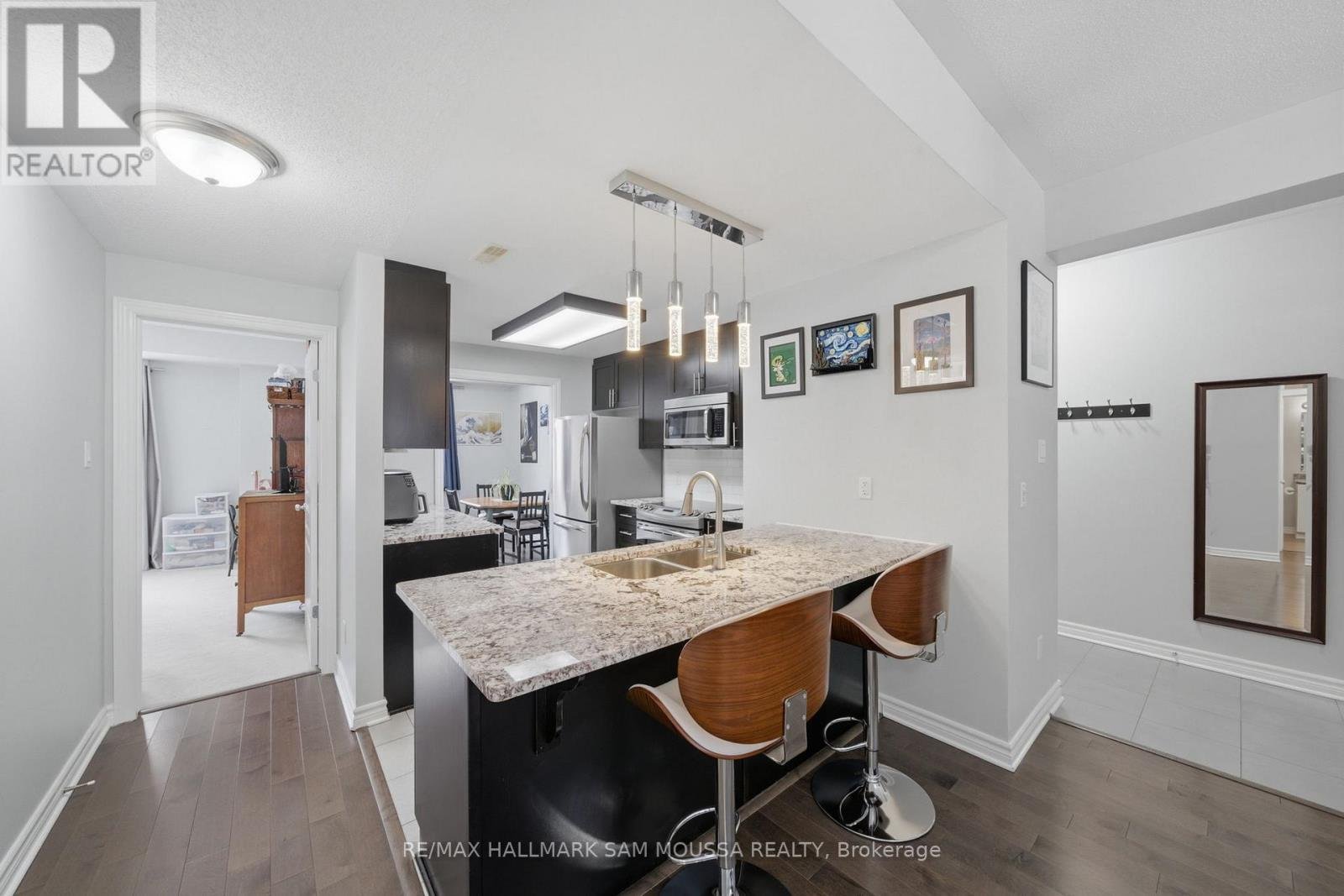 Welcome to this bright and well-maintained 2-bedroom condo in the heart of Barrhaven's desirable Longfields community. Offering approximately 991sq ft of thoughtfully designed living space, this second-level unit features a functional open-concept layout with a spacious living and dining area, a well-sized kitchen, and direct access to a private south-facing balcony-perfect for enjoying natural light throughout the day. The primary bedroom includes a walk-in closet and convenient 3-piece ensuite, while the second bedroom is ideal for guests, a home office, or additional living space. A full 4-piece bathroom, in-suite laundry, and central air conditioning add to the comfort and convenience. This unit also includes one exclusive parking space and access to a bike storage room. Located close to parks, schools, transit, and everyday amenities, this is an excellent opportunity for first-time buyers, downsizers, or investors looking for a low-maintenance lifestyle in a prime location.