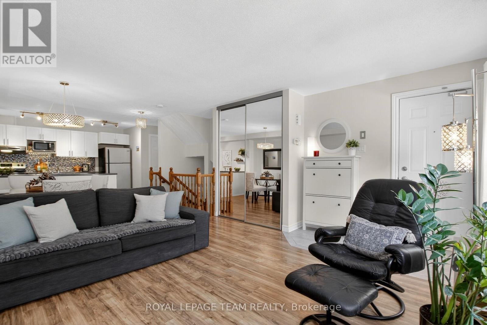 Step into effortless urban living with this stylish and impeccably maintained 2-bedroom, 2-bath terrace home in the heart of sought-after Barrhaven, featuring a rarely offered underground parking space for added comfort and year-round convenience. This bright, east-facing home is filled with natural light, highlighted by expansive living room windows that elevate the open-concept main level. A welcoming tiled foyer leads into sleek, easy-care laminate flooring that flows throughout both levels. The contemporary kitchen is designed to impress, offering crisp white cabinetry, a chic mosaic backsplash, stainless steel appliances, ample workspace, and a separate pantry-perfect for both everyday living and entertaining. A convenient 2-piece powder room completes the main floor. Downstairs, you'll find two generously sized bedrooms with large daylight windows, a full 4-piece bath, and exceptional storage including a utility room, laundry area, and bonus space under the stairs. The primary bedroom offers a spacious walk-in closet. Enjoy your own private, sun-filled terrace overlooking a quiet courtyard-an ideal retreat for morning coffee or evening relaxation. Additional upgrades include custom blinds and modern light fixtures. Located just steps from shops, restaurants, grocery stores, a movie theatre, parks, schools, and transit, this home offers unbeatable walkability and lifestyle convenience. The Juliet 2 model is part of a LEED-certified building, ensuring energy efficiency, low utility costs, and economical forced-air natural gas heating, all paired with low condo fees. A true turnkey opportunity combining style, function, and a premium underground parking feature - no snow or ice to scrape before you depart for the day, and protects your car from sun and exposure to the elements year-round! The parking garage is heated in winter and cooled in summer. Lovingly cared for by its original owner. Don't miss this unit!