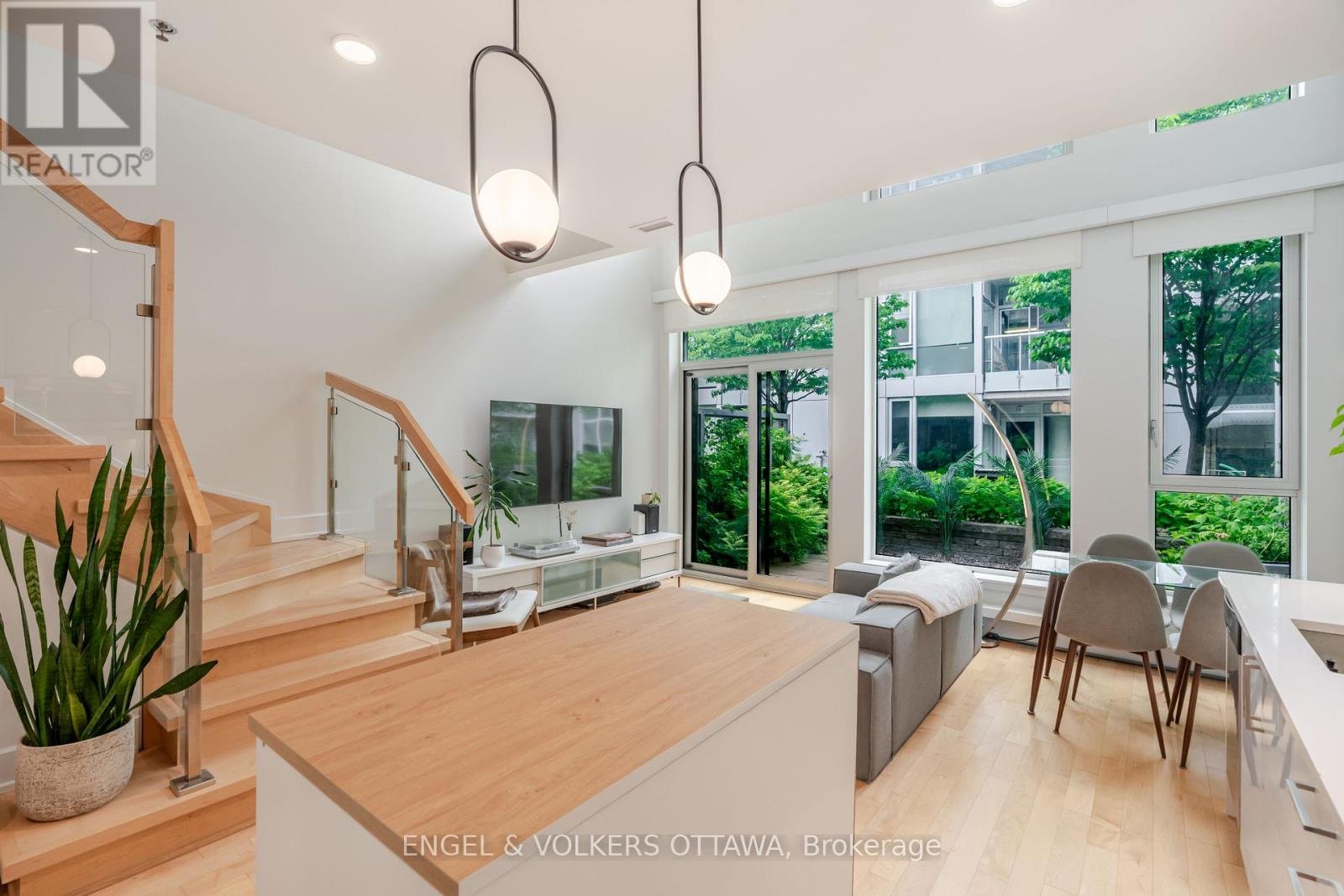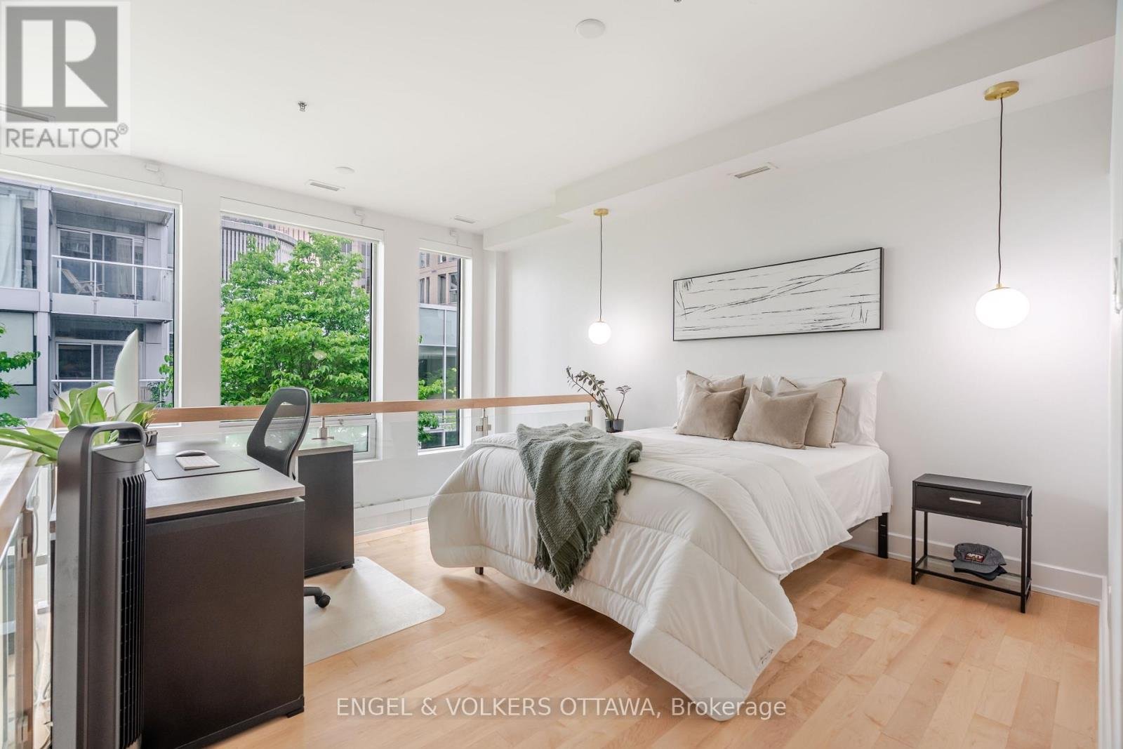 Experience luxurious, modern living in this 1 bedroom, 2 bathroom loft condo in the heart of Centretown, part of the exclusive Tribeca Lofts by Claridge. This open-concept, 2-storey loft captivates with floor-to-ceiling windows, inviting natural light from the moment you walk in. Automated blinds offer effortless control of light & privacy.The main level has a spacious, bright layout, perfect for entertaining or relaxing. A private balcony provides a serene outdoor space for enjoying your morning coffee or unwinding at the end of the day. Upstairs, the bedroom area includes ample space for a desk, ideal for a home office setup, & a walk in closet. Located just steps away from top restaurants, trendy shops, the Rideau Centre, Parliament Hill, & with a convenient Farm Boy grocery store right beside, this condo offers the best of downtown Ottawa living. Enjoy premium building amenities, including a party room, indoor pool, gym, sauna, and a rooftop patio with stunning city views.