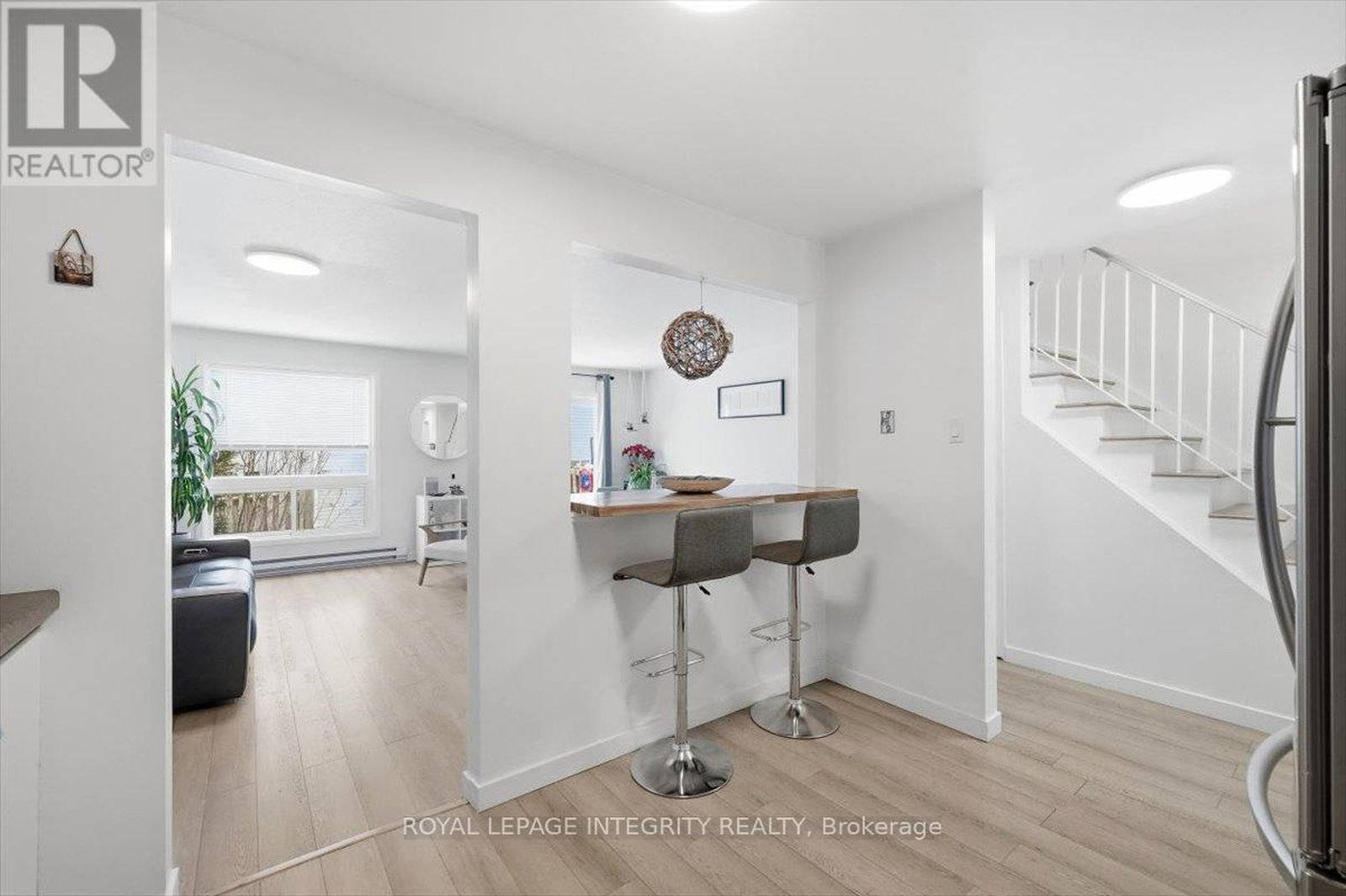 Welcome to 1985 Woods Street in the friendly town of Rockland! This beautifully updated 2-storey townhome condo with single-car garage offers 3 bedrooms and 1.5 bathrooms in a bright, functional layout. The welcoming foyer features tile flooring with convenient access to the updated powder room and garage, leading into the open-concept main floor showcasing new laminate flooring, a spacious living and dining area, and an abundance of natural light from the large window and patio door with direct access to the backyard. The well-designed kitchen is perfect for everyday living, offering ample cabinet and counter space, newer appliances, and a convenient breakfast bar. Upstairs, the generous primary bedroom features two closets and a cheater door to the full bathroom, complemented by two well-sized secondary bedrooms. The finished lower level provides additional living space with a versatile family room, a sizeable storage area, and a dedicated laundry room. Ideally located for outdoor enthusiasts, just steps to the Ottawa River, Parc du Moulin Marina, and within walking distance to grocery stores, restaurants, coffee shops, schools, and other everyday amenities, with easy access to Highway 174 for a smooth commute. A great opportunity you won't want to miss!