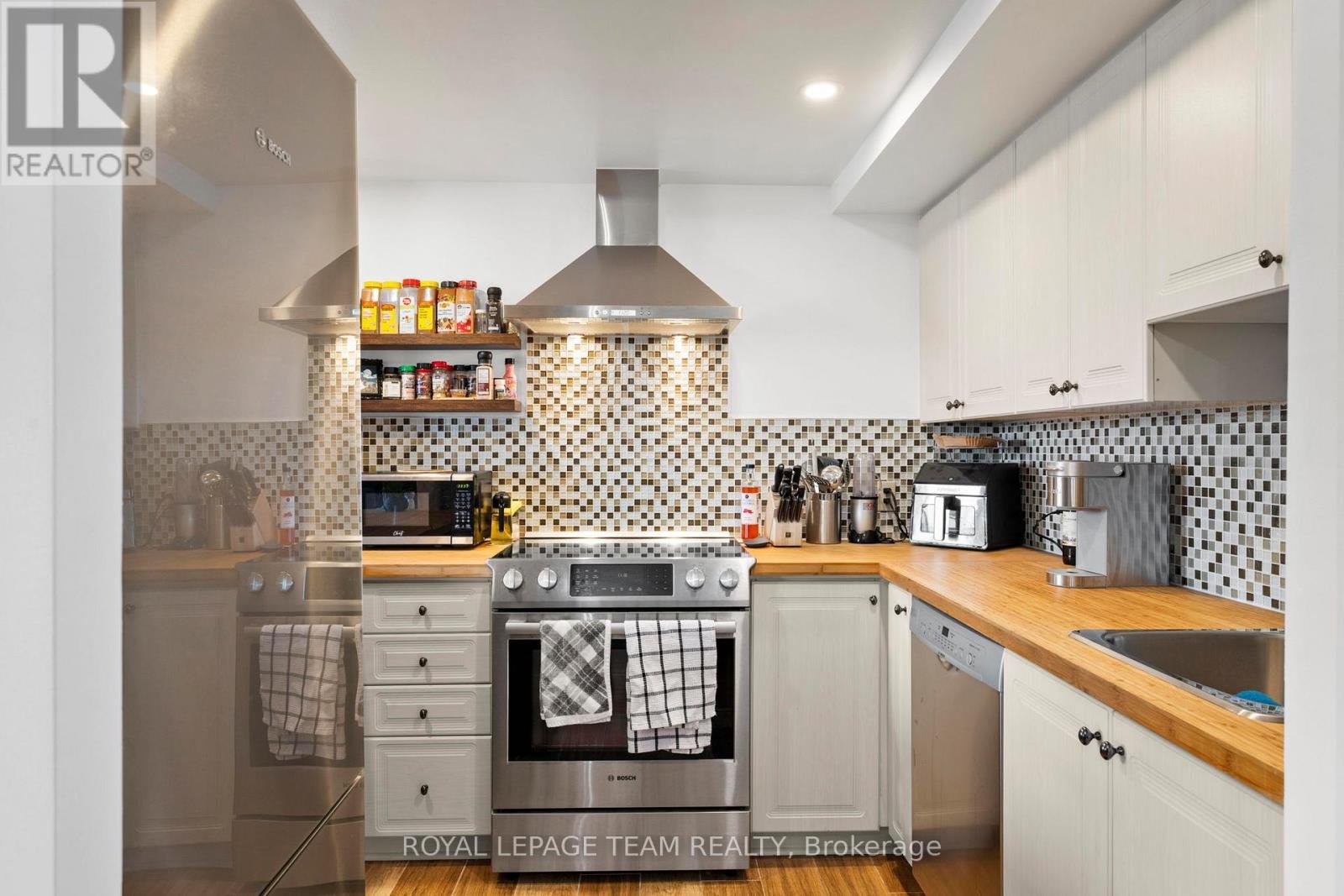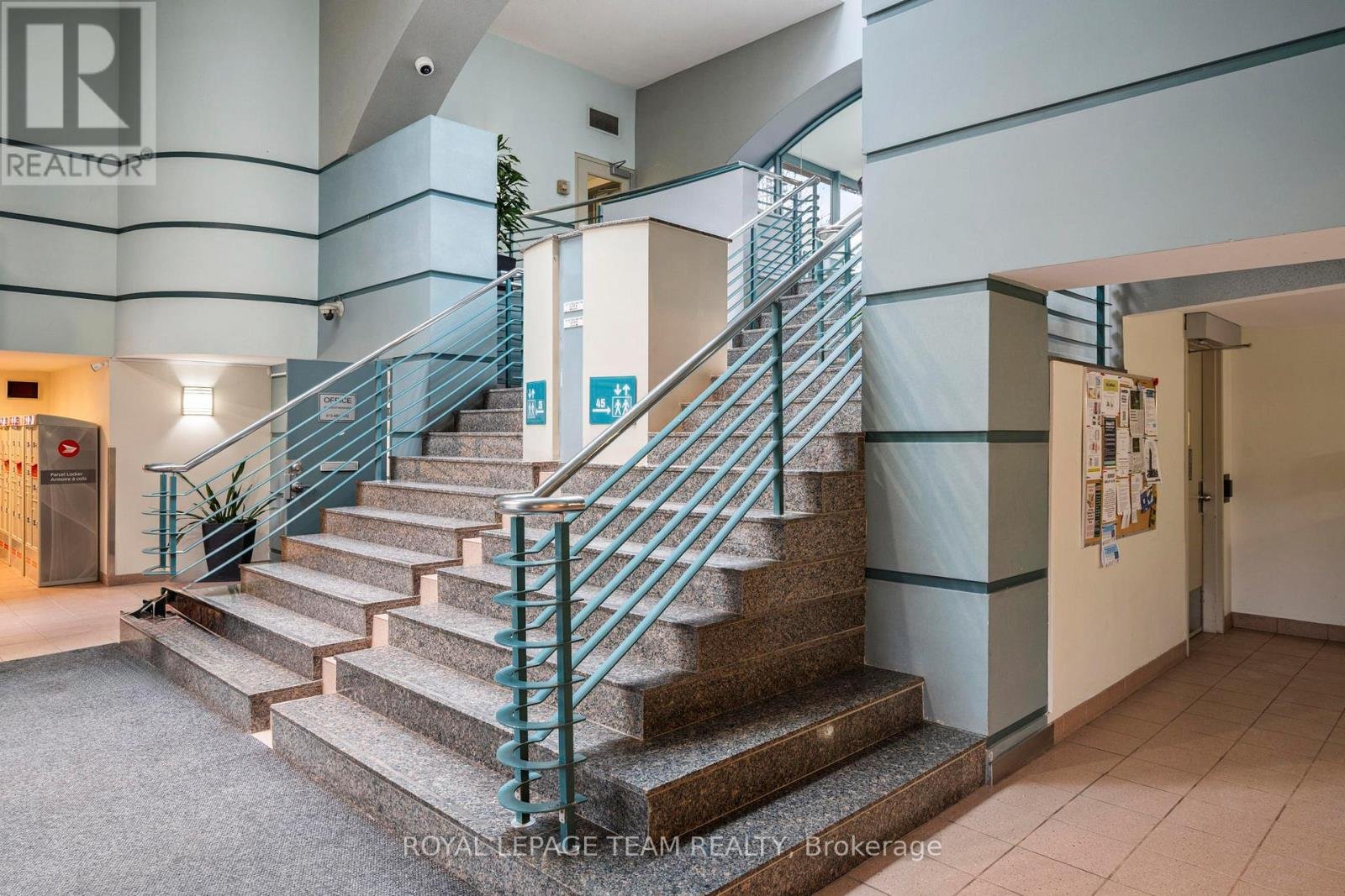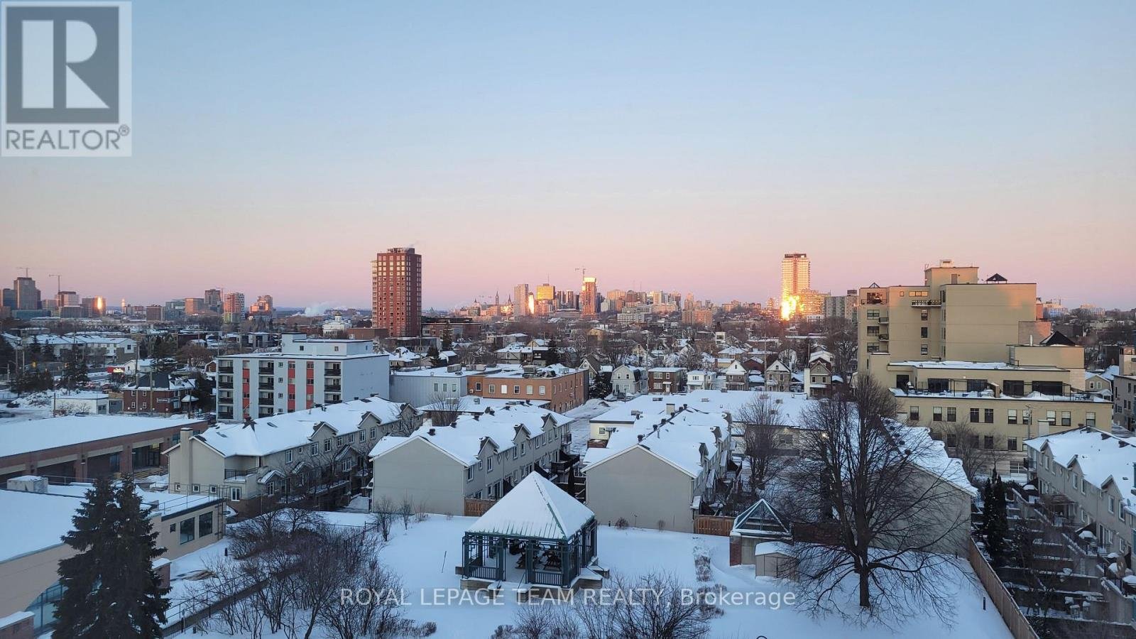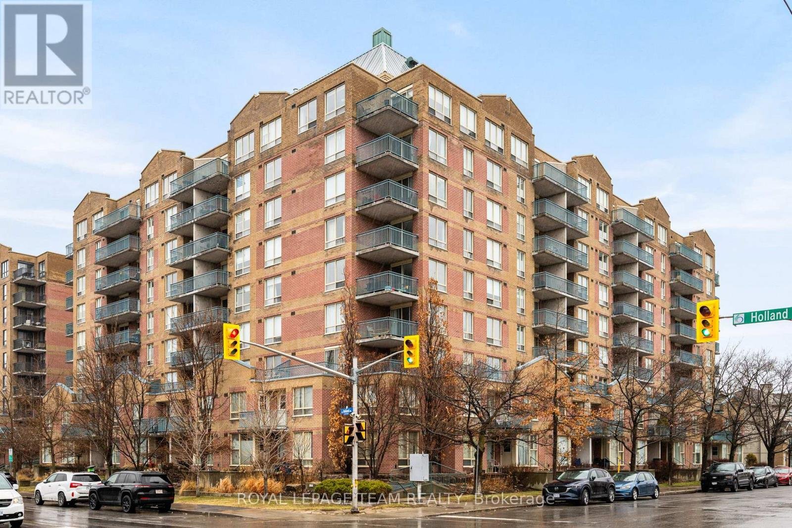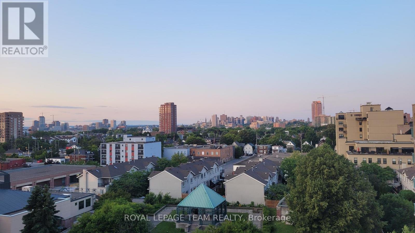 Welcome to urban living at its finest in this bright and spacious 1-bedroom + den condo, ideally located between Hintonburg and Westboro. This thoughtfully designed unit features an open-concept layout, with the den seamlessly incorporated into the living area to maximize space and functionality. Exclusive to the top floor of 45 Holland Avenue you will enjoy 9 ft. ceilings and wall to wall windows in this unit. Beautiful hardwood flooring throughout, a renovated galley kitchen with a convenient passthrough to the dining area, and an updated bathroom. Step out onto your private open balcony and take in stunning east facing downtown views. The building offers a rare and inviting interior courtyard complete with a gazebo and BBQ area-perfect for relaxing or entertaining. Location highlights include: steps to Tunney's Pasture LRT station, walking distance to Wellington Street West shops, cafés, and restaurants, close to Parkdale Market, near the scenic Ottawa River Pathway and parkway and outstanding walk score (93) and bike score (99) .Condo fees include: heat, hydro, and water, building insurance and management and maintenance and caretaking.