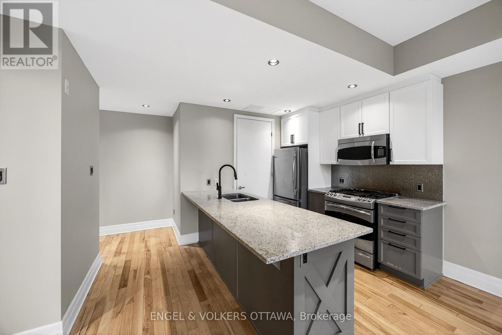 OPEN HOUSE! THURS, APRIL 23, 5PM - 7PM!! Beautiful 1-bedroom condo by Domocile, just steps from Little Italy, the Civic Hospital, and Dows Lake. Located in the prestigious Radcliffe, this well-managed building offers great amenities including a party room, exercise room, and bike storage. The 4th-floor unit welcomes you with a spacious entryway that nicely separates the living space from the hallway, complete with a built-in closet and shoe organizer, and finished with hardwood flooring throughout. The open-concept layout features a modern eat-in kitchen with a granite island that overlooks a bright, comfortable living area, with a generous private balcony offering neighbourhood views. The bedroom is well-sized with plenty of closet space, dual reading lights, and room for a king-sized bed, plus the added bonus of a built-in wall vacuum. You'll also find a 4-piece bathroom, along with a separate laundry closet. The unit has been freshly painted in spring 2023, with new components added to the in-unit heating and cooling system in 2025, and includes underground parking and a storage locker on the condo level. A great option for anyone looking for stylish, low-maintenance living in the heart of Ottawa while still enjoying a bit of separation from it all. Condo fees: 559.39, Hydro: $40/month