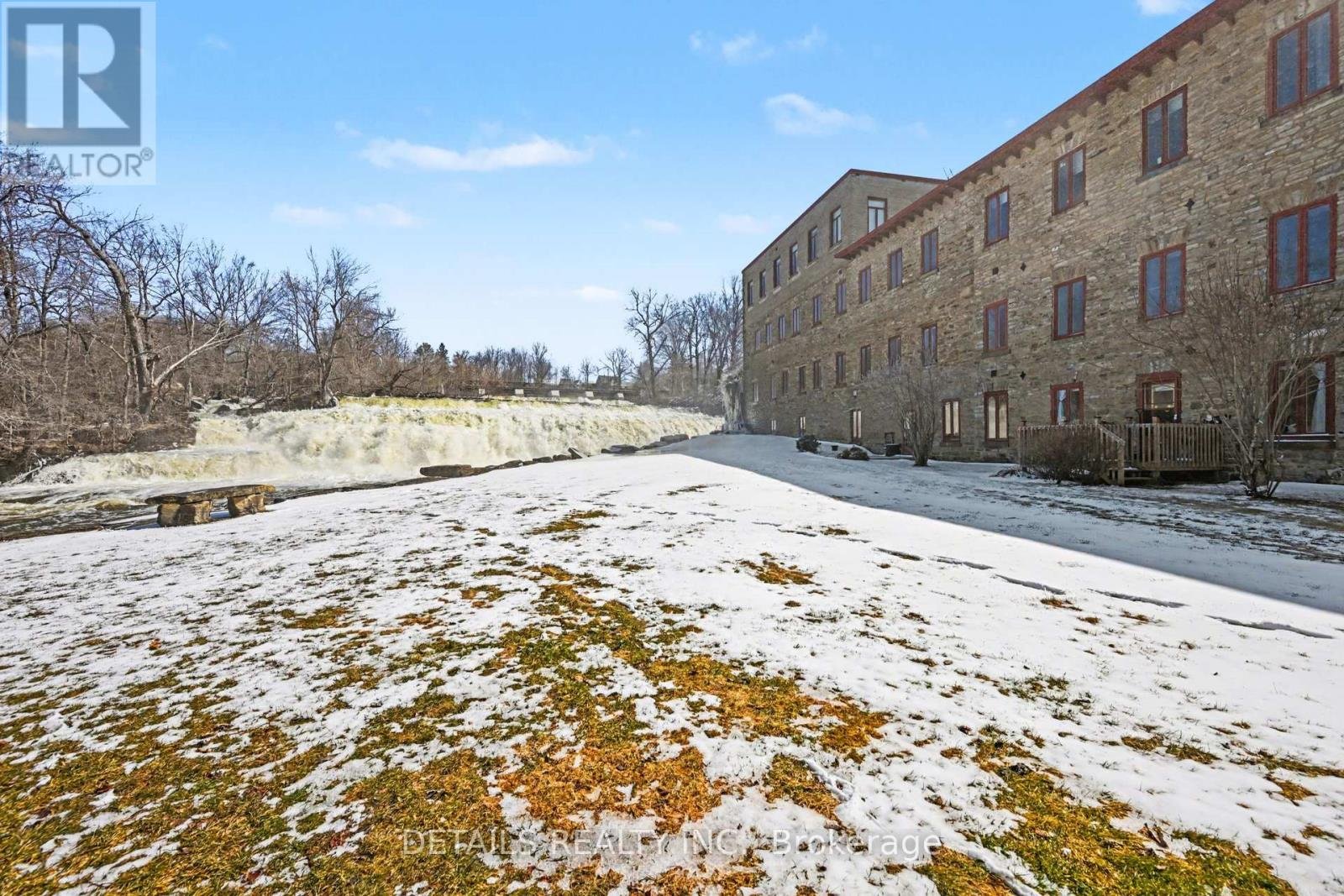 Feel a part of the local history in this designated heritage woolen mill conversion. Located in friendly historic Almonte, just steps away from popular Mill Street with a wide variety of shops and restaurants. With opportunities to stay active on the Ottawa Valley Rail Trail and shop at the local farmer's market. The exposed painted brick, 11-foot ceilings, and large windows make this a bright and airy unit with that heritage feel, allowing you to enjoy the sights and sounds of the waterfall on the property. Spacious principal bedroom with a large window and Ikea Pax wardrobe and another room that can be used as a bedroom, den or office.Turnkey, with many updates over the years, including refreshed original pine window ledges (2026), a painted kitchen (2025), a dishwasher (2025), and updated flooring throughout. Many amazing inclusions provided: art rails, custom blinds, water filtration, and 5 appliances! Entry to the building from the exclusive parking spot is at ground level, no elevator required.