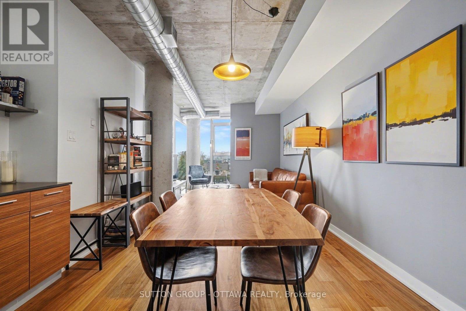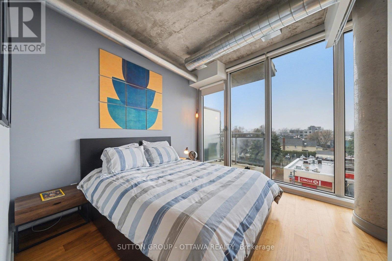 OPEN HOUSE SUNDAY APRIL 19th 2-4PM. Experience elevated urban living at Central Condominiums Phase 1, developed by Urban Capital and ideally located at 354 Gladstone Avenue in the heart of Centretown. Just steps away you will stumble across your favourite shops, restaurants, cafés, and everyday conveniences along Bank st. What's more is that you are just minutes from the vibrant Lansdowne Park and the scenic pathways along the Rideau Canal. This spacious 1-bedroom + den, 1-bathroom suite offers over 750 sq. ft. of thoughtfully designed living space with stunning west-facing exposure and breathtaking sunset views. The open-concept layout features wide engineered hardwood flooring and floor-to-ceiling windows that fill the space with natural light. The modern kitchen is equipped with stainless steel appliances and contemporary finishes, seamlessly flowing into the living and dining area - ideal for both everyday living and entertaining. The versatile den offers flexible space for a home office, reading nook, or guest area. The spacious bedroom includes a walk-in closet and convenient cheater access to the bathroom, which connects directly to the in-unit laundry for added functionality. Enjoy your own private balcony, perfect for taking in evening sunsets and city views. This LEED Gold-certified building offers premium amenities including a fitness centre, party room, concierge service, private courtyard with BBQ area and security. Locker included. Don't miss out!
