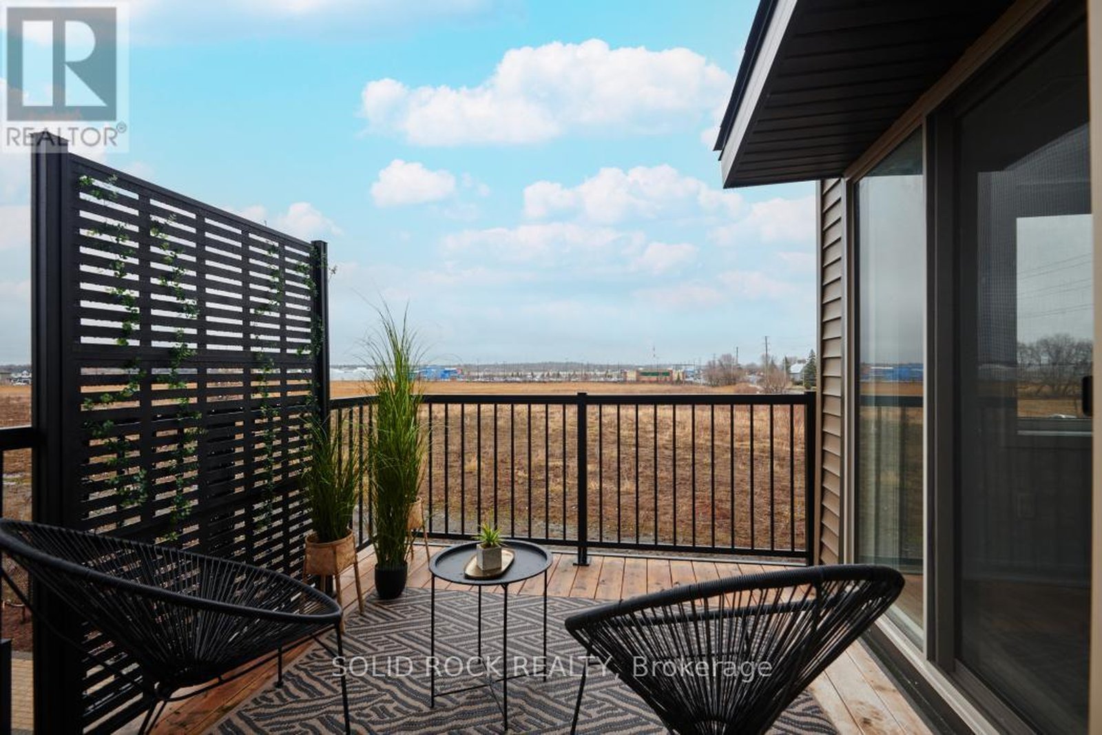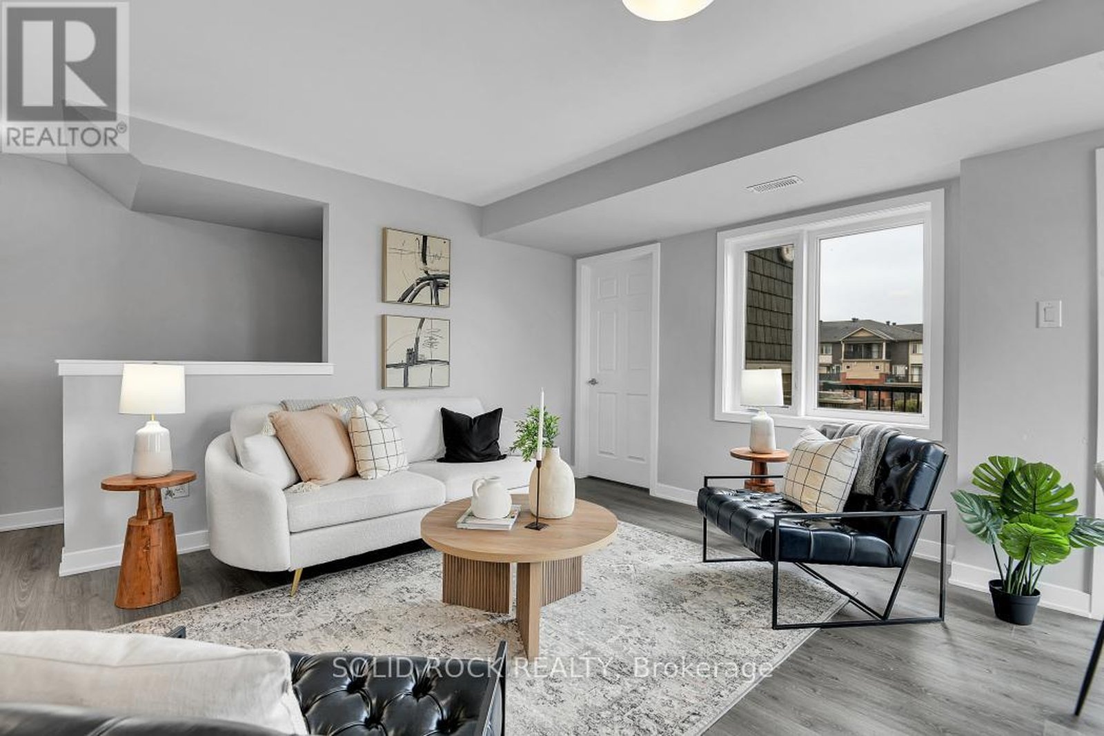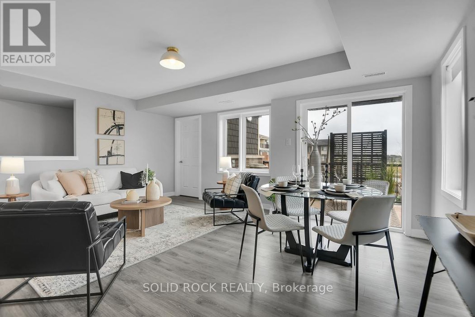 UPPER, END unit in the family friendly area of Stittsville/Kanata. Enjoy maintenance free living with no yard work and no snow removal for you to do! Built in 2022, this condo townhouse is open concept on the main level with easy clean laminate flooring and extra windows creating a bright space! Upgraded kitchen design with generous island, breakfast bar, pot lights, stainless steel hood fan and sleek white subway tile back splash. Additional closet next to the kitchen can be used as a pantry space. Neutral colour choices ready for your personal touches. Modern finishes throughout this home make it attractive. The primary bedroom has a walk-in closet and private, covered balcony. Two additional bedrooms. Main bathroom features upgraded design choices with stylish colours. Relax outdoors on any of your 2 balcony spaces (one open and one covered). Second level laundry with shelving and storage space. Additional storage room on main level. Designated parking space you can see from your window in the front. No side neighbours-school to be built there in the future. Flexible closing date-choose what works for you! Shopping, groceries and restaurants a few minutes walk away! Pets allowed. Parks and schools are close by. Reasonable condo fees. Open House Saturday (April 18) and Sunday (April 19) 2-4 P.M.