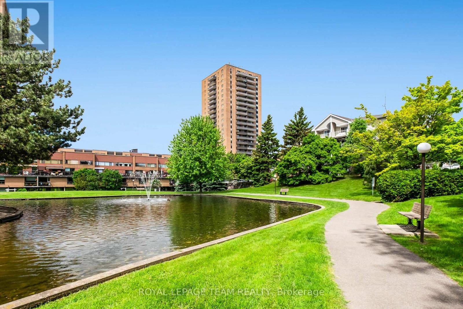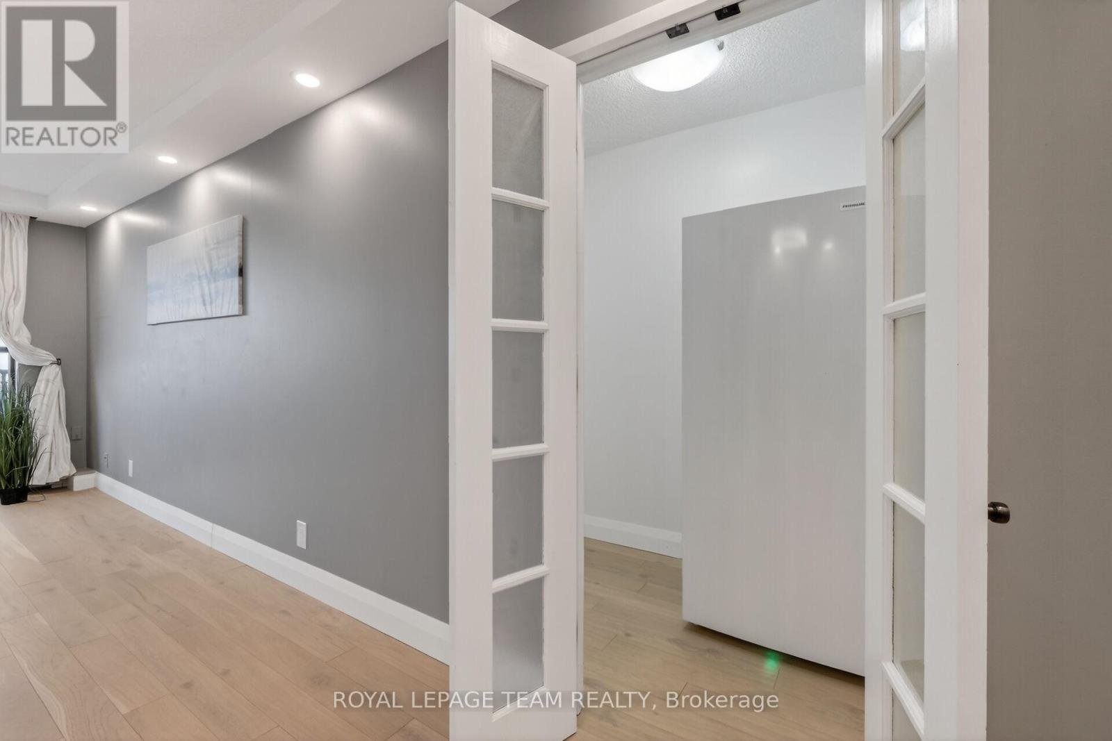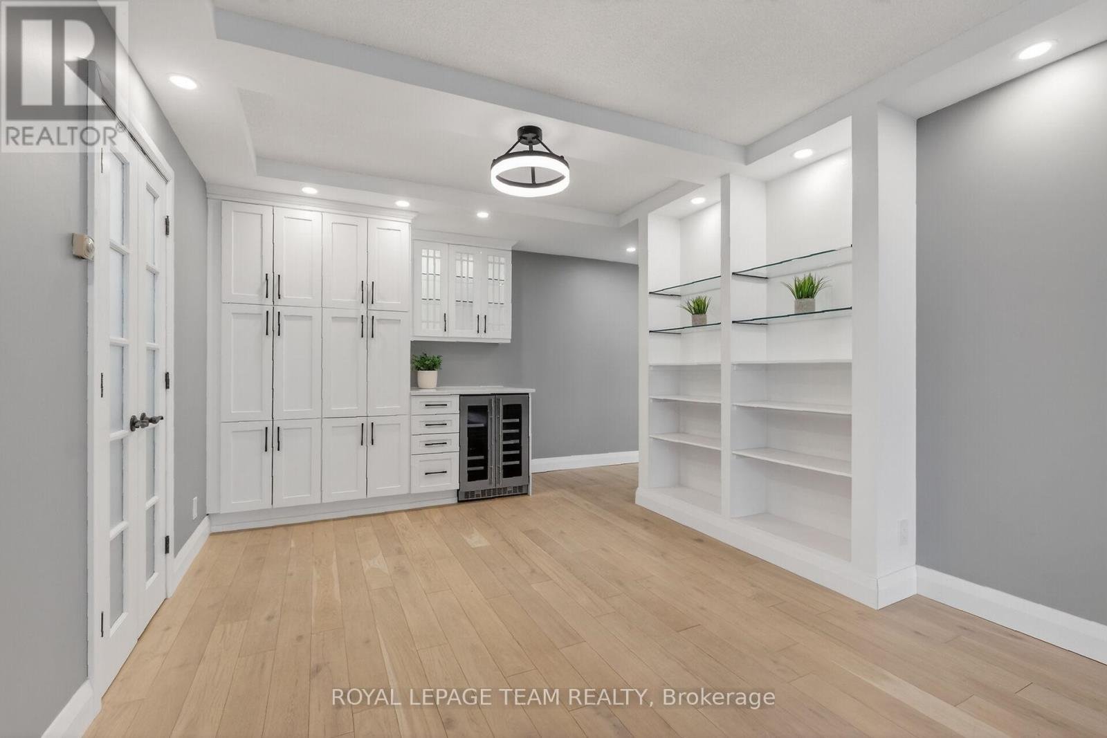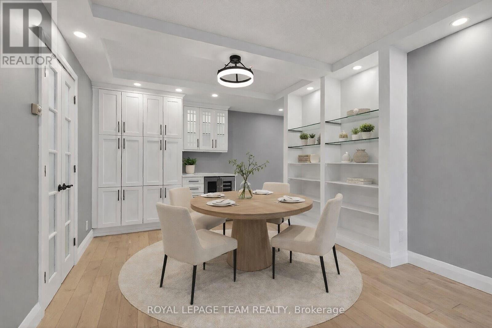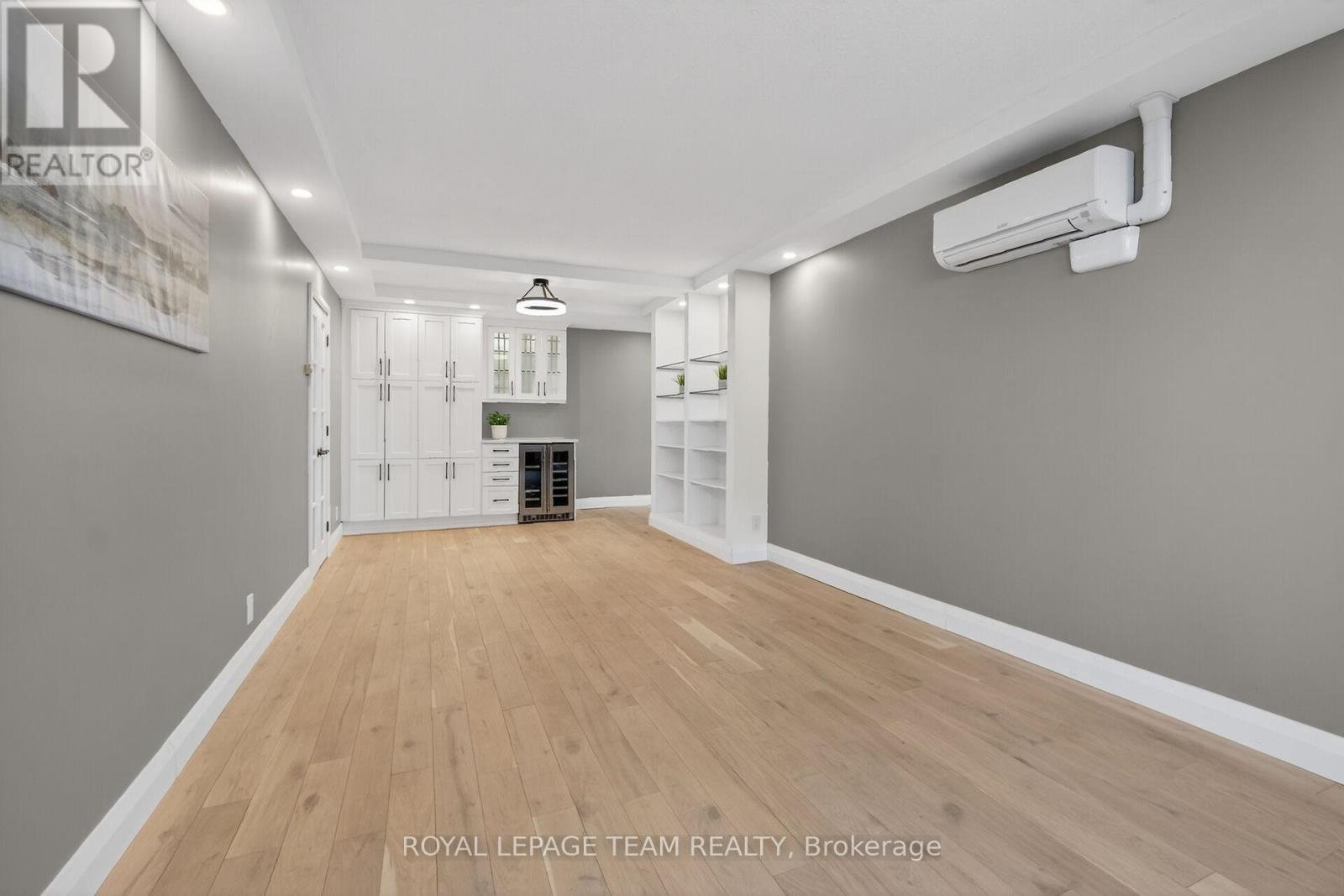 Stop the car! A gorgeous, beautifully updated two-bedroom apartment at The Highlands. This is arguably the finest two-bedroom unit in the building, featuring high-end renovations completed in 2022 and resort-style, all-inclusive living.Gourmet Kitchen with a classic black-and-white theme, quartz countertops and premium built-in appliances, including a hidden Liebherr refrigerator, a hidden Smeg dishwasher, a microwave/oven combo, a steam oven, and a cooktop with a remote-controlled hood fan. Light engineered hardwood floors throughout. The dining room offers built-in shelving plus more cabinetry and a two-zone wine/beverage cooler, plus a dedicated storage space with an upright freezer. The living area and bedrooms feature smart lighting and pot lights. A stylish four-piece bathroom and two 2022 air conditioning units for summer comfort. The generously sized 19' x 6.8' balcony has tile flooring. The all-inclusive condo fee covers heat, hydro, water, building insurance, and access to fantastic amenities, including an outdoor pool, gym, games room, party room and library.An underground parking space completes this picture. The location is unbeatable, with shopping at your doorstep and easy access to the Ottawa River and NCC trails.