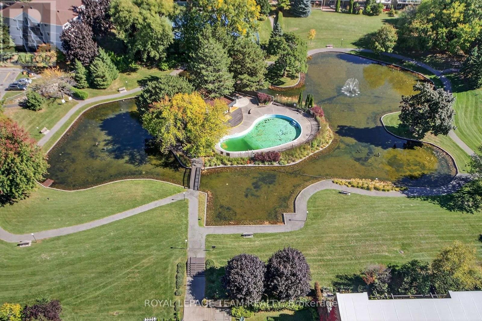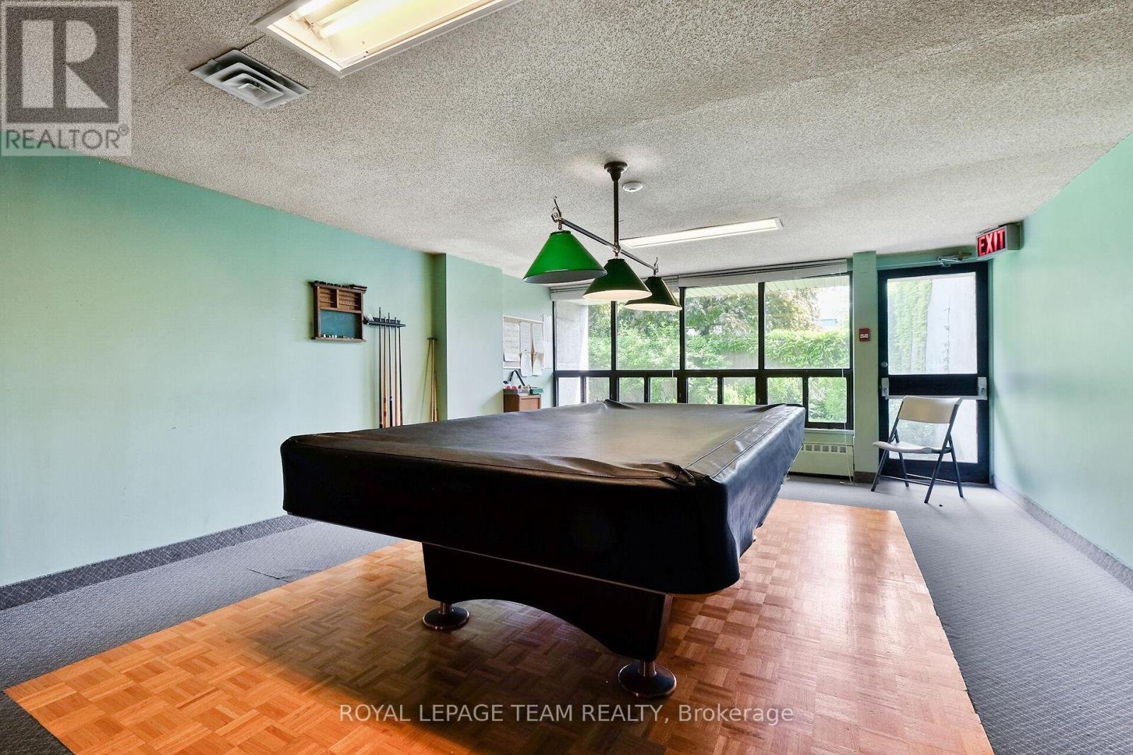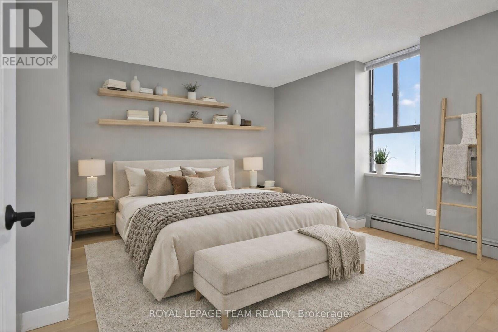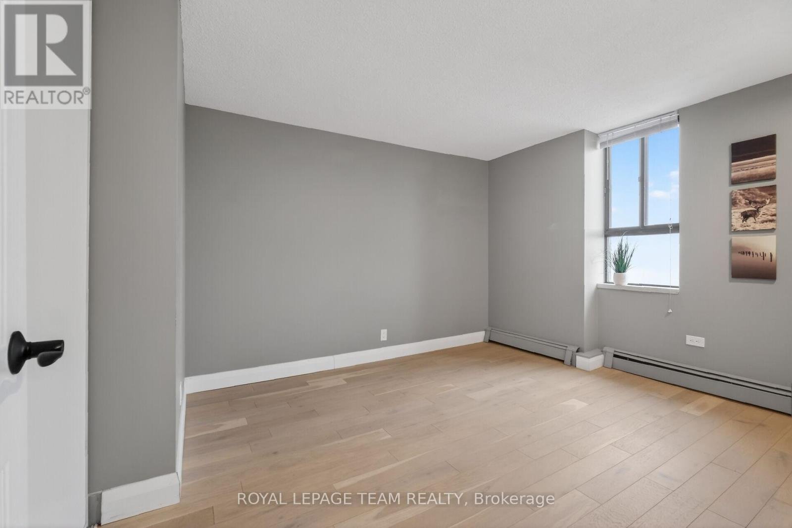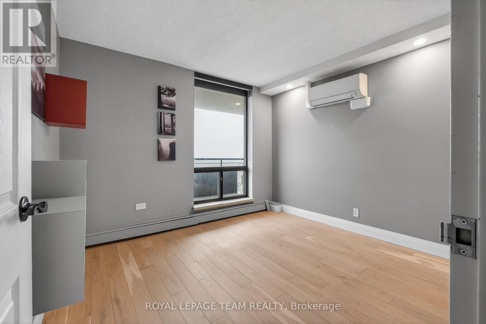 Stop the car! A gorgeous, beautifully updated two-bedroom apartment at The Highlands. This is arguably the finest two-bedroom unit in the building, featuring high-end renovations completed in 2022 and resort-style, all-inclusive living.Gourmet Kitchen with a classic black-and-white theme, quartz countertops and premium built-in appliances, including a hidden Liebherr refrigerator, a hidden Smeg dishwasher, a microwave/oven combo, a steam oven, and a cooktop with a remote-controlled hood fan. Light engineered hardwood floors throughout. The dining room offers built-in shelving plus more cabinetry and a two-zone wine/beverage cooler, plus a dedicated storage space with an upright freezer. The living area and bedrooms feature smart lighting and pot lights. A stylish four-piece bathroom and two 2022 air conditioning units for summer comfort. The generously sized 19' x 6.8' balcony has tile flooring. The all-inclusive condo fee covers heat, hydro, water, building insurance, and access to fantastic amenities, including an outdoor pool, gym, games room, party room and library.An underground parking space completes this picture. The location is unbeatable, with shopping at your doorstep and easy access to the Ottawa River and NCC trails.
