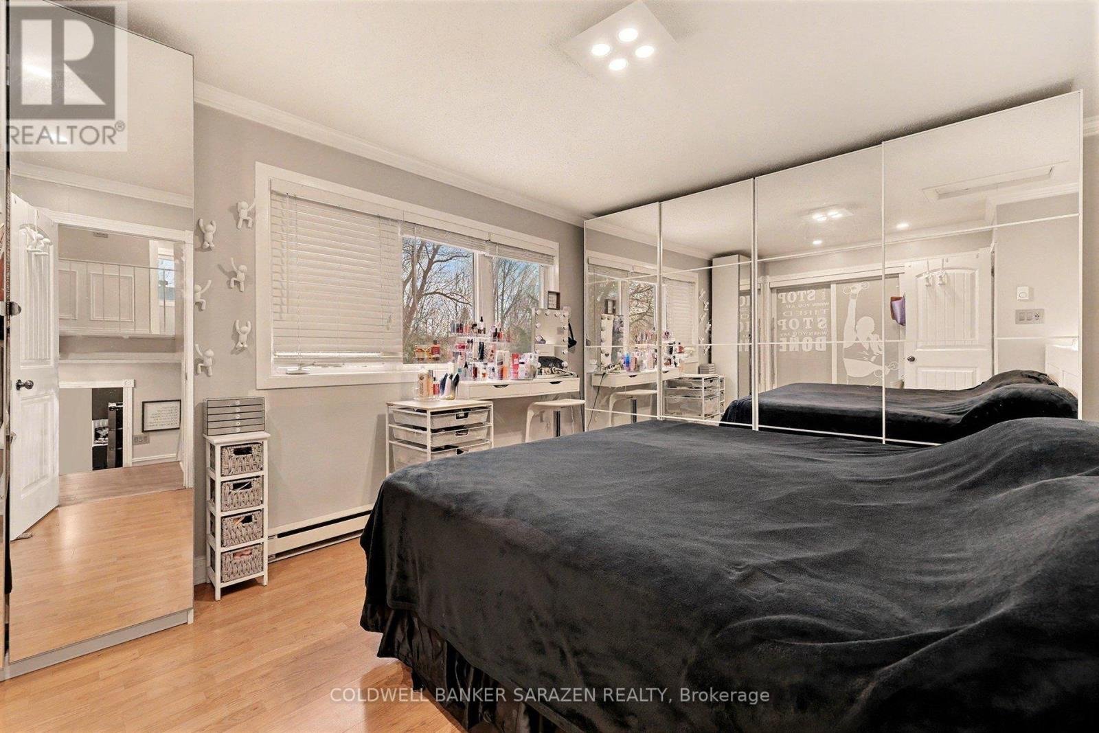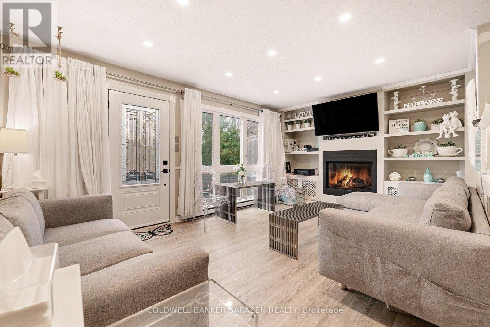 Beautifully maintained 3-bedroom condo townhouse in the sought-after Katimavik neighbourhood, offering an attached garage with inside entry and a bright, inviting layout. The cozy living room features a gas fireplace, built-in shelving, and patio doors that open to a private fenced backyard with a deck and serene wooded backdrop. The kitchen is equipped with stainless steel appliances and a convenient pantry. Upstairs, you'll find three spacious bedrooms and a full main bathroom. This move-in-ready home includes numerous updates such as an upgraded backyard (2024), backyard door (2025), new pot lights (2024), flooring (2020), baseboard heaters (2020), doors (2020), a finished basement (2023), new washer and dryer (2019), and an updated upstairs bathroom (2019). New outlets for the entire home(2023), Outdoor pool. Perfect for those seeking comfort, privacy, and a great location.