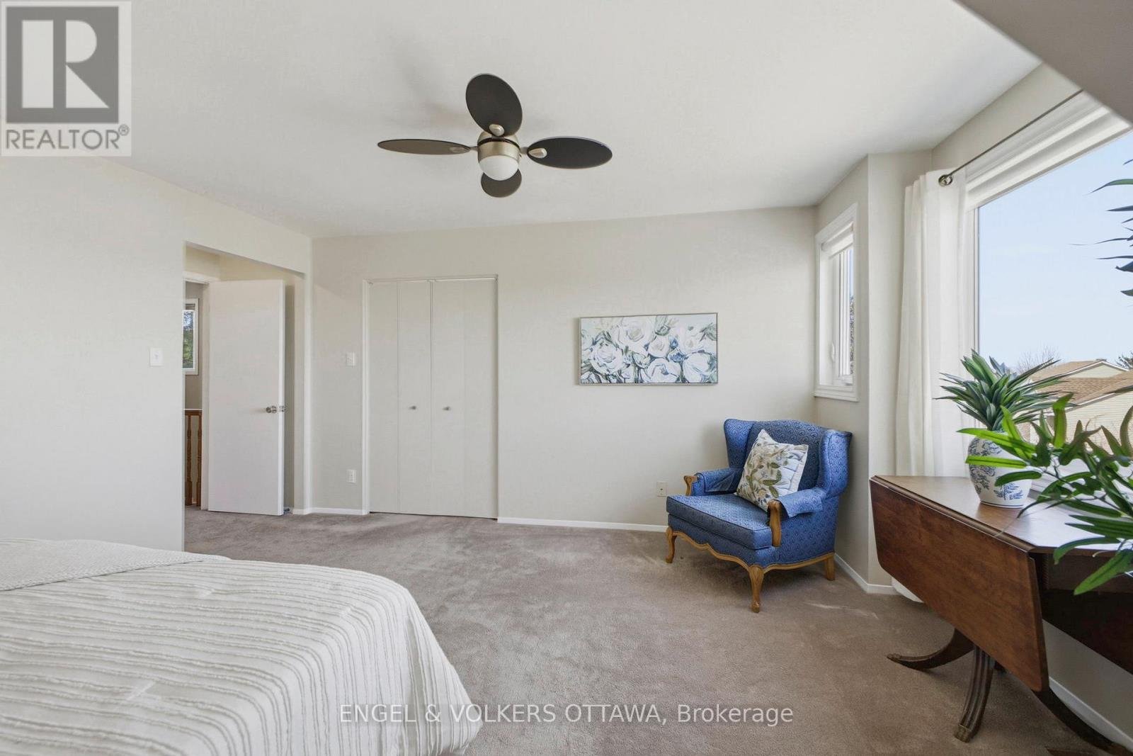 This spacious end-unit townhome with a spectacular backyard is nestled on a quiet court in a mature, family-friendly neighbourhood in the heart of Kanata. Built on a hill, you enter the home on the lower level with a large entryway, a powder room and a living space, ideal for a recreation area, media room, or home office. Up on the main level is an open-concept living and dining room with rich hardwood flooring and ample space for all furniture sizes, allowing for a flexible layout! The U-shaped kitchen offers ample counter space, extensive cabinetry, and a window over the sink that overlooks the backyard. The breakfast nook sits just off the kitchen, with a laundry closet and sliding glass doors to the back deck. Upstairs, the large primary bedroom has plenty of natural light, a walk-in closet and a 4-piece ensuite. Two additional bedrooms are ideal for family, guests, or a home office. A second 4-piece bathroom with an extended vanity is shared by the 2nd and 3rd bedrooms. The large, private backyard framed by mature hedges and trees is a gardener's dream, already complete with raised garden beds and a garden shed. An elevated wood deck with a retractable awning extends the living space outdoors, perfect for enjoying the fruits of your labour. This quiet enclave with minimal through traffic is surrounded by parks, top-rated schools, and all your everyday conveniences along Hazeldean Road and Terry Fox Drive. Robertson Rd and Highway 417 act as your gateway to the rest of the city, while a short drive up Hazeldean brings you to the Kanata tech hub, top-tier golf courses and Wesley Clover Park.
