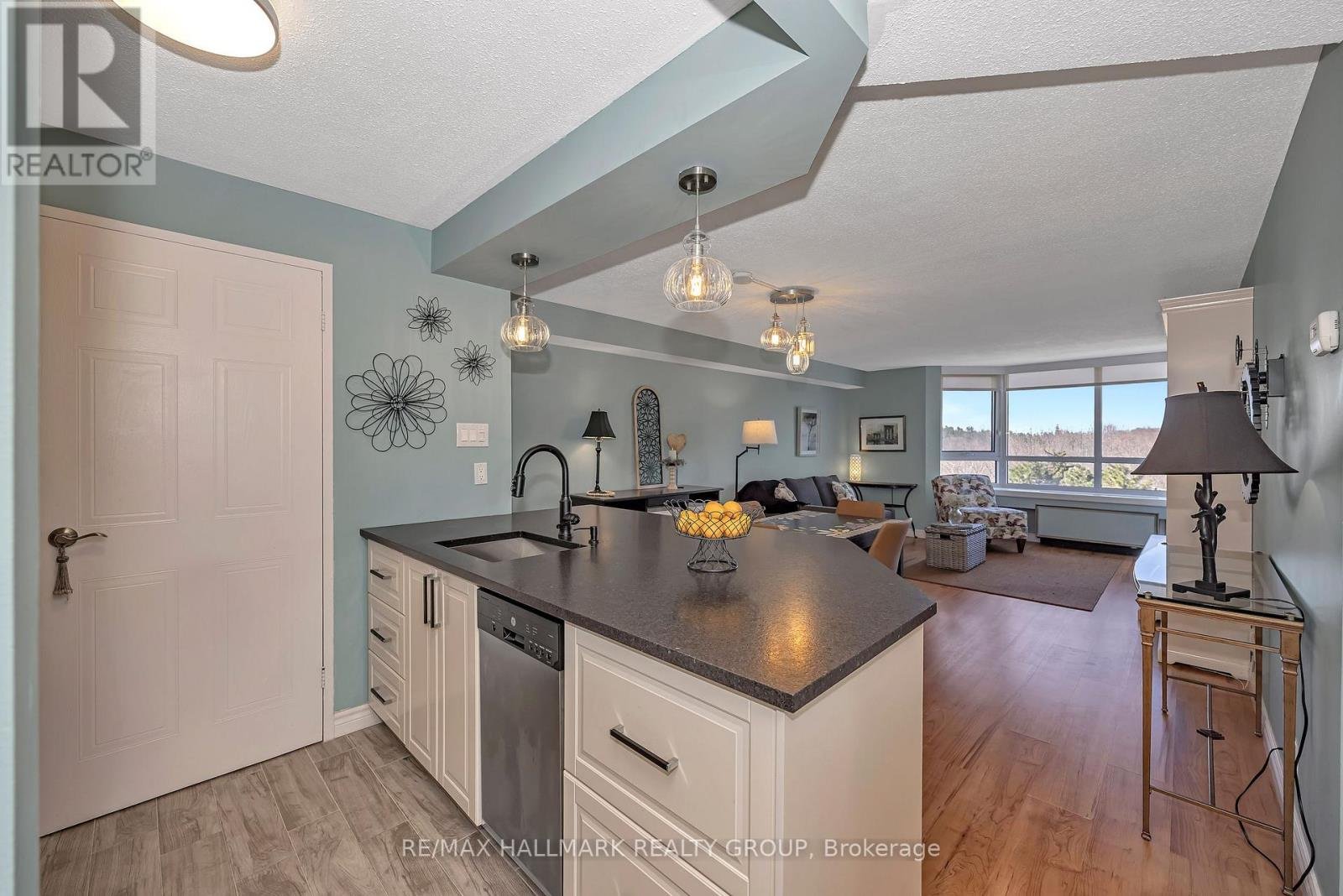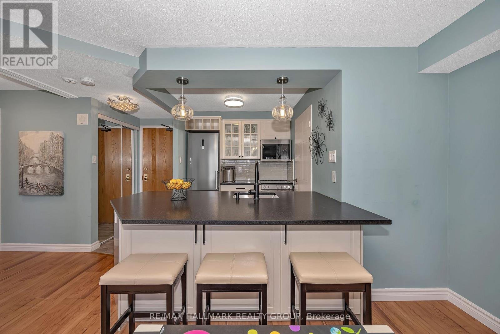 Welcome to this beautifully updated 1-bedroom, 1-bathroom condo on the 7th floor, offering breathtaking, unobstructed views over Bruce Pit NCC land. Enjoy a rare perspective of lush forest and expansive southern skies, providing both privacy and a peaceful natural backdrop. This sun-filled unit features large windows that flood the space with natural light throughout the day, enhancing the warm and inviting feel of the home. Just over 700 sq.ft., this thoughtfully renovated condo is completely turnkey and showcases quality finishes throughout, including the convenience of in-unit storage. The kitchen has been opened up to maximize space and functionality, featuring new cabinetry, stone countertops, modern appliances, and a stylish backsplash, along with a convenient breakfast bar for casual dining. The spacious living and dining areas flow seamlessly, creating an ideal layout for both everyday living and entertaining. A custom entertainment wall with built-in shelving is included, making it easy for the new owner to simply mount their TV and settle in. The bathroom has been fully redesigned with a sleek glass shower, heated ceramic flooring, an updated vanity, and modern lighting. The generously sized bedroom offers ample space for your furniture and includes a walk-in closet. Finally this units offers you in unit storage that will hold your added belongings and/or your own pantry. Located in the heart of Nepean, this well-maintained building is close to transit, the Queensway Carleton Hospital, and provides quick access to Highways 416 and 417, along with nearby bike paths and everyday amenities. Residents enjoy a full suite of amenities including a fitness centre, party room, guest suite, two elevators, an outdoor pool, bike storage, and the convenience of one covered parking space. Book your visit today!