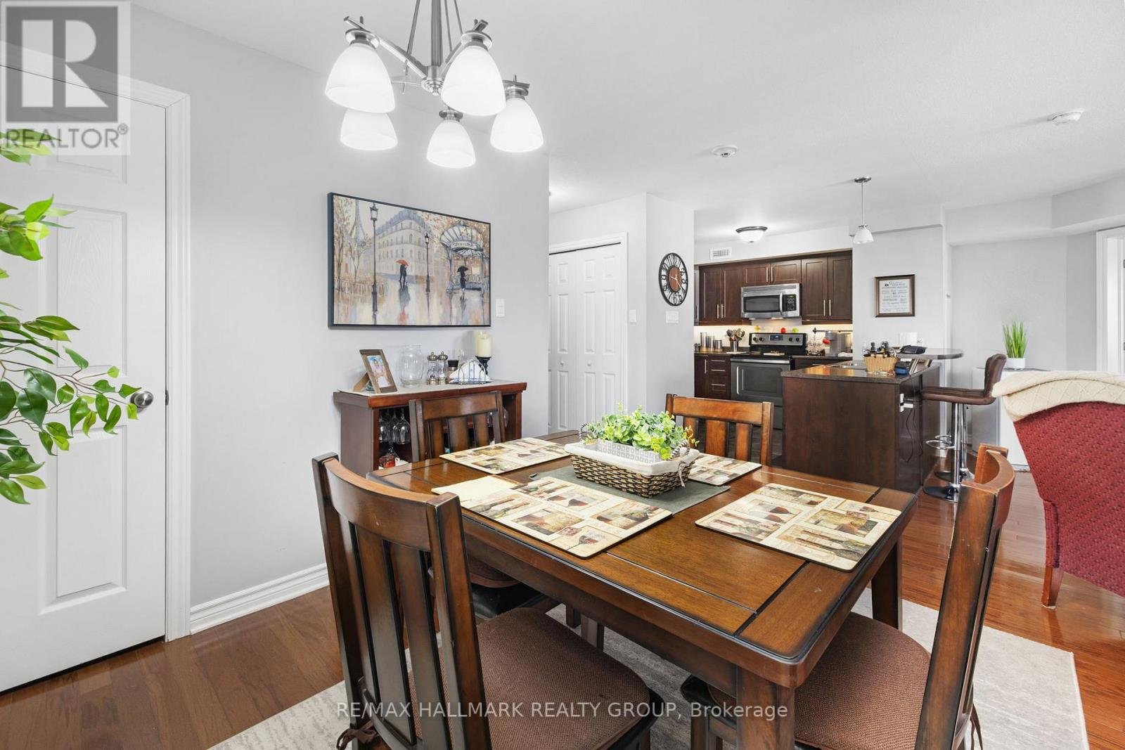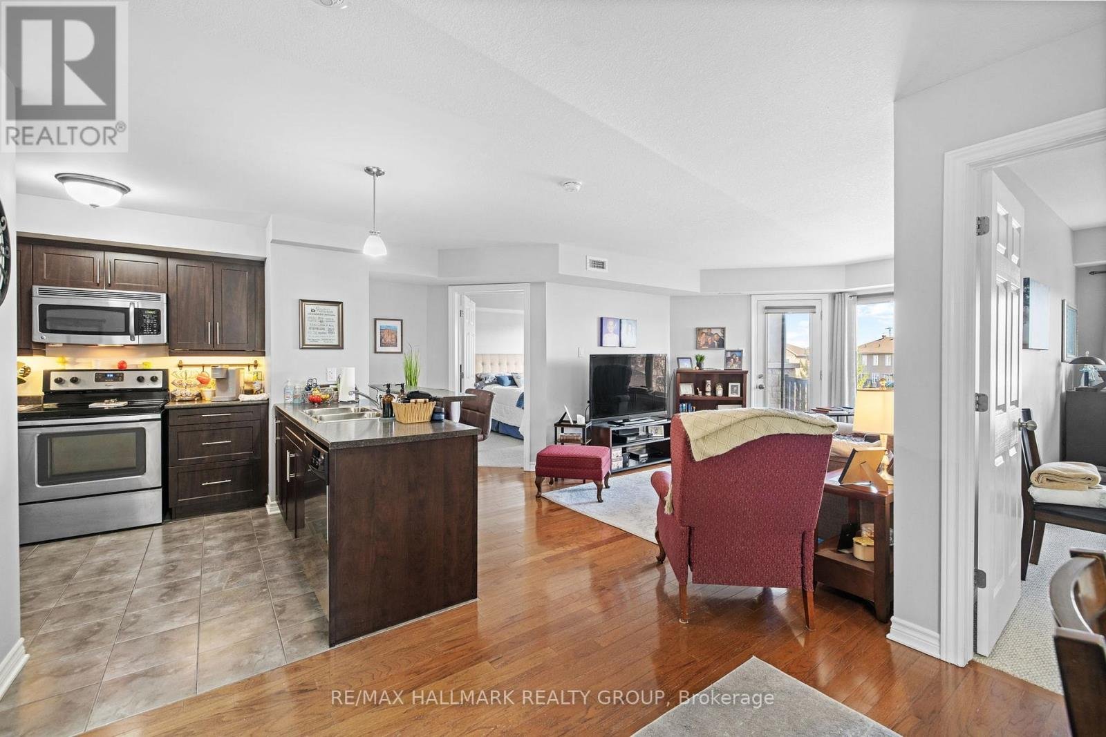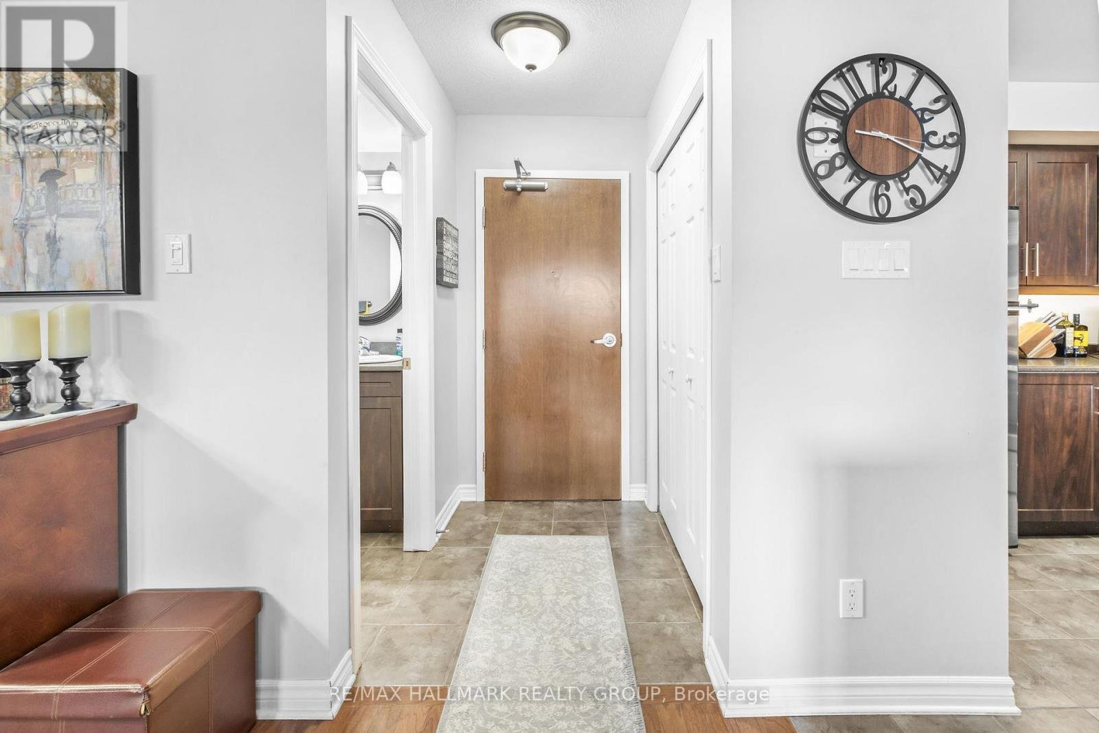 Welcome to this bright, well-maintained and move-in ready 980 sq ft third-floor condo, in the heart of Kemptville, a charming and thriving community just minutes from Ottawa. This spacious unit features 2 bedrooms and 1.5 bathrooms, with a functional open-concept layout perfect for both everyday living and entertaining.The living and dining areas showcase beautiful hardwood flooring, while the bedrooms offer cozy carpeting and the kitchen and bathrooms feature durable ceramic tile. The kitchen is designed with convenience in mind, offering ample storage, a breakfast bar, and modern stainless steel appliances. In-unit washer and dryer add to the ease of living. Enjoy access to fantastic building amenities, including an exercise room, party room, and outdoor BBQ area. Ideally located close to parks, shopping, and essential services, with easy highway access for commuting. A perfect opportunity to enjoy comfortable, low-maintenance living in one of the region's most desirable small-town communities - offering something for everyone-young families, professionals, and retirees alike. INCLUDES TWO PARKING SPOTS.