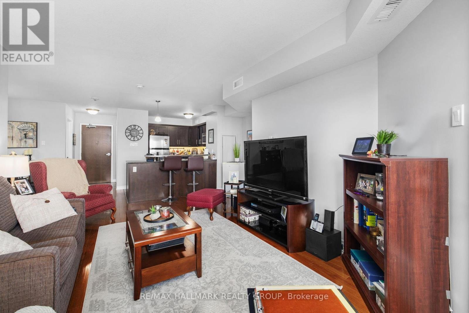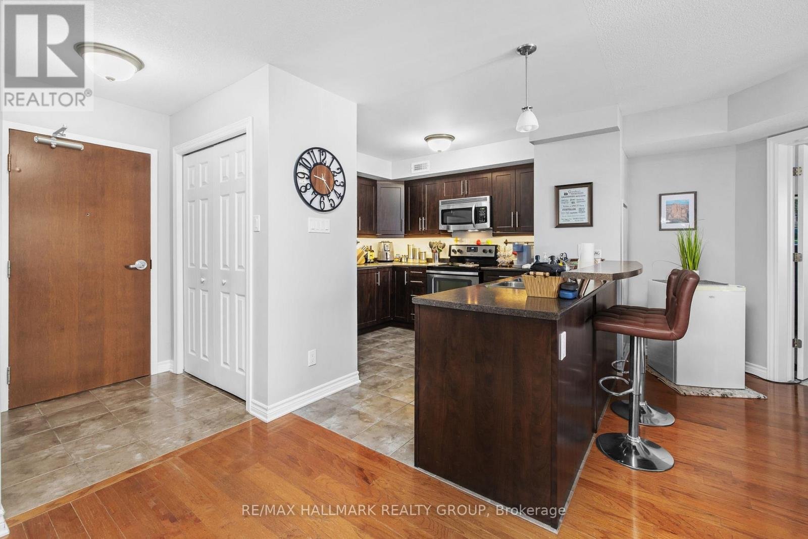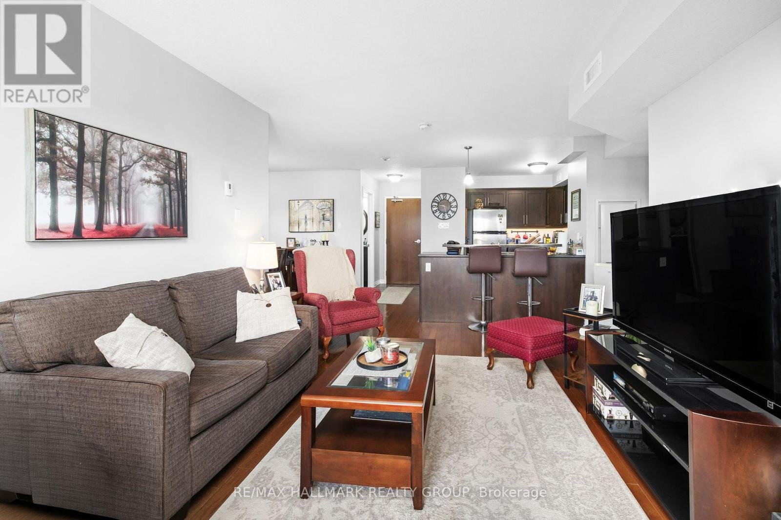 Welcome to this bright, well-maintained and move-in ready 980 sq ft third-floor condo, in the heart of Kemptville, a charming and thriving community just minutes from Ottawa. This spacious unit features 2 bedrooms and 1.5 bathrooms, with a functional open-concept layout perfect for both everyday living and entertaining.The living and dining areas showcase beautiful hardwood flooring, while the bedrooms offer cozy carpeting and the kitchen and bathrooms feature durable ceramic tile. The kitchen is designed with convenience in mind, offering ample storage, a breakfast bar, and modern stainless steel appliances. In-unit washer and dryer add to the ease of living. Enjoy access to fantastic building amenities, including an exercise room, party room, and outdoor BBQ area. Ideally located close to parks, shopping, and essential services, with easy highway access for commuting. A perfect opportunity to enjoy comfortable, low-maintenance living in one of the region's most desirable small-town communities - offering something for everyone-young families, professionals, and retirees alike. INCLUDES TWO PARKING SPOTS.