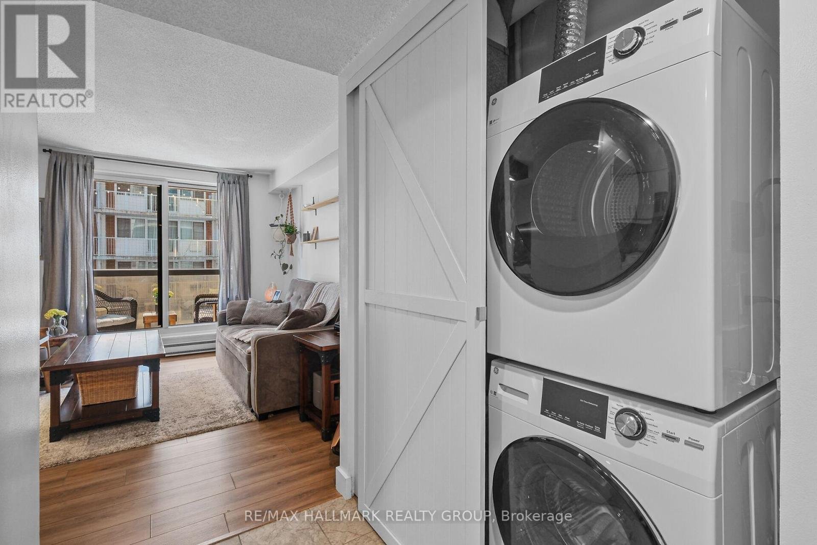 Welcome to Unit 604 at 199 Kent Street, a move-in-ready home that combines comfort, functionality, and exceptional urban convenience. This beautifully maintained unit offers 2 bedrooms, an underground parking space, bike storage, in-unit laundry, in-unit storage, central A/C, electric heating, a private balcony, and attractive wood-look LVT flooring. The renovated 4-piece bathroom features a newer sink, toilet, tub, and tub/shower combo, giving the space a fresh, modern feel.What truly sets this condo apart is the long list of thoughtful upgrades completed over several years, giving buyers peace of mind and real value. Since 2021, the unit has been refreshed with full interior painting, upgraded outlets and covers, updated door hardware, a stylish new kitchen backsplash, and improved bathroom mirror and lighting. In 2022, the bathroom saw major improvements with a new tub, new shower tile, updated toilet and drain pipe upgrades, extended vinyl flooring, and upgraded baseboards throughout the unit. In 2023, the windows were upgraded. In 2024, the baseboard heaters were replaced. Most recently in 2026, the washer and dryer were replaced, vinyl flooring was added in the closet, sliding closet doors were replaced, and the A/C valves, insulation, and filter were updated.Residents enjoy access to an excellent selection of amenities, including a fitness room, pool, spa, sauna, and a library/lounge/party room. The location is hard to beat: less than a 10-minute walk to shopping, restaurants, and the O-Train, and only 15 minutes on foot to Parliament Hill. Whether you are a professional, downsizer, investor, or anyone seeking a vibrant downtown lifestyle, this condo offers an outstanding opportunity to own a well-updated home in a highly convenient central location. With 24/7 front-desk security, daily maintenance, the building offers a secure,well-maintained, and welcoming environment.Condo fees: $625/month. Property taxes: $3,010 for 2025. Hydro: approximately $134/month.