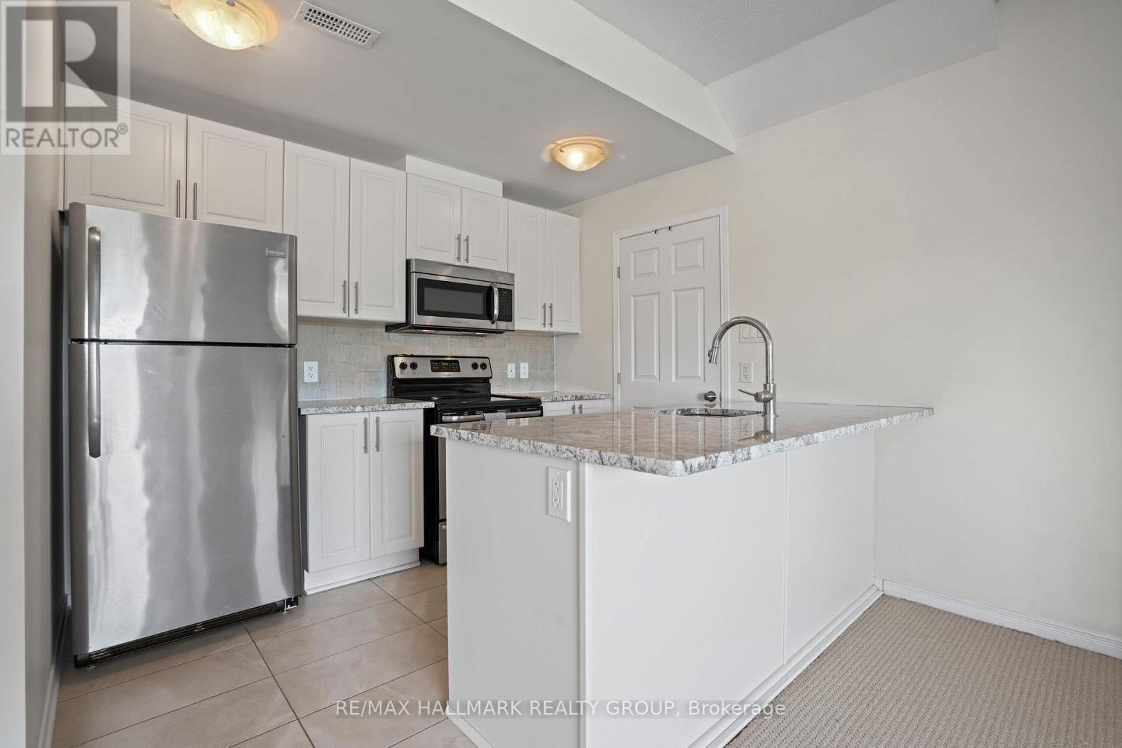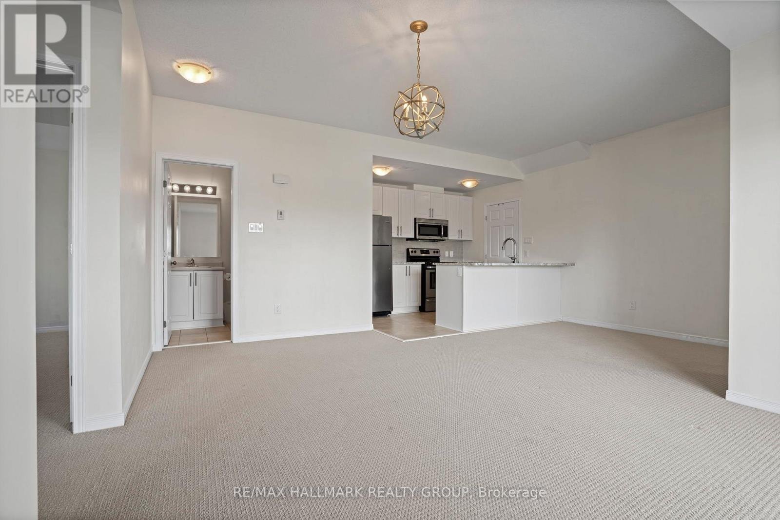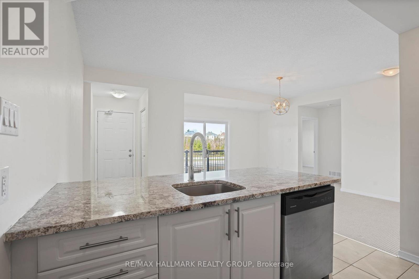 Welcome to this bright and well-designed 2-bedroom, 1-bathroom condo offering a functional open concept layout ideal for comfortable everyday living. With only a short set of stairs to access the unit, it provides a great option for those looking to avoid excessive stairs while still enjoying an elevated living space. Inside, you're welcomed into the main living area featuring 9-foot ceilings, a spacious kitchen with stainless steel appliances, ample counter space, and a convenient bar-style counter with additional seating space. The living area is filled with natural light and provides direct access to a private balcony, perfect for relaxing. Just off the kitchen, you'll find in-suite laundry with added storage for everyday convenience. Both bedrooms are well-sized and offer flexible space for a home office, guests, or family living. An excellent opportunity for first-time buyers or investors alike, this condo is ideally located within walking distance to grocery stores, coffee shops, restaurants, and shopping, as well as the scenic Cardinal Creek Karst Path. Steps to OC Transpo bus stops and just minutes from the Trim LRT station (anticipated opening September 2026), this location also offers easy access to schools, parks, and a wide range of amenities. A great place to call home or add to your investment portfolio.