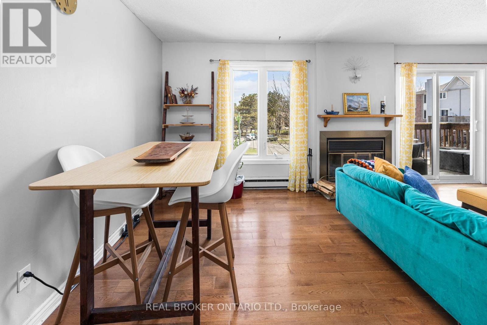 This 2-bedroom, 3-bathroom home features hardwood floors and a sun-filled, open-concept living and dining area with a cozy wood-burning fireplace perfect for relaxing or entertaining. The thoughtfully designed kitchen showcases custom cabinetry, detailed finishes, along with a spacious eat-in area. Enjoy two private balconies overlooking NCC greenspace, plus additional outdoor space at the lower level ideal for morning coffee or unwinding at the end of the day. The primary bedroom offers its own balcony, walk-in closet, and a 3-piece ensuite. A generous second bedroom and full bathroom complete the upper level. Conveniently located close to shopping, parks, transit, and easy highway access this is low-maintenance living in a peaceful, nature-filled setting. Option for additional parking at $35/month