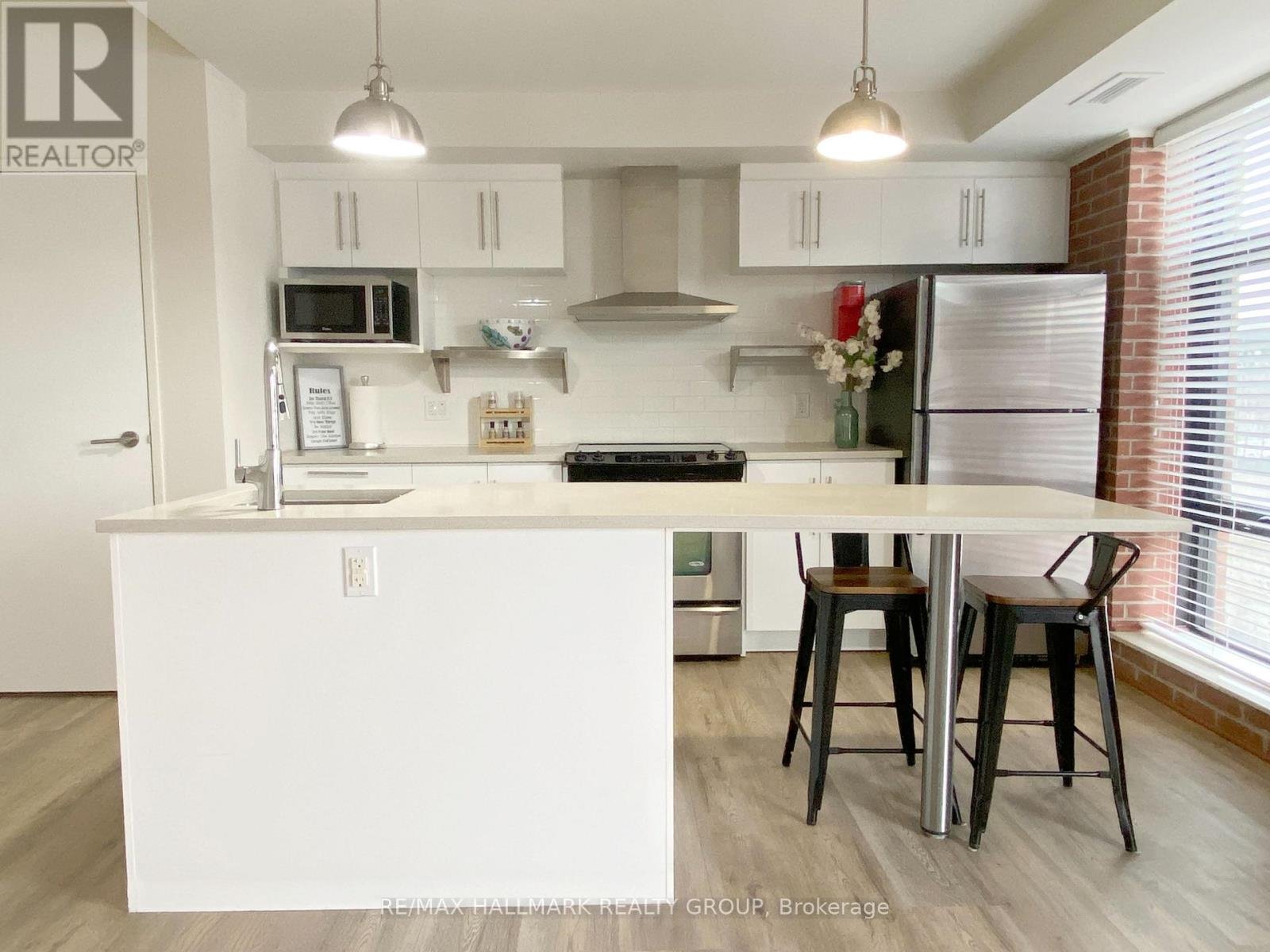 Experience upscale urban living in the sought-after Legendary Warehouse Lofts. This stylish 1-bedroom condo with heated underground parking is ideally located in the heart of Ottawa, offering exceptional value for buyers and investors. The bright open-concept design is enhanced by exposed brick, delivering authentic loft inspired character. The kitchen features quartz countertops, ceramic backsplash, stainless steel appliances, and a versatile island perfect for dining or working from home. The spacious bedroom offers a large walk-in closet and a convenient cheater ensuite. Enjoy your private balcony with gas BBQ hookup-perfect for relaxing or entertaining. Offered furnished with in-unit laundry, this turnkey property is ideal for homeowners or those seeking strong rental potential. Condo fees include water, building insurance, and maintenance. Amenities feature a fitness centre, party room with WiFi, pet spa, storage locker, and scenic paths. Steps to the O-Train, Carleton University, Bank Street, and more-this is central Ottawa living at its best. Some photos virtually staged.