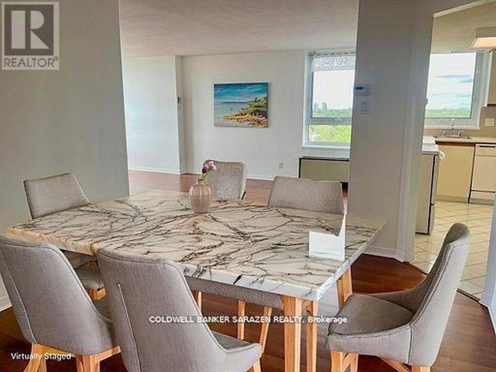 View!!!! Corner 2 bdrm/2 bath Spacious Apt! Rare offering at Bargain price. 180 Degree view of Ottawa River, Gatineau and Downtown Ottawa!!!! Sparking clean apt with Gleaming laminate floors, galley kitchen with pantry and storage, Ensuite bathrm, Masterbdrm with double closet, diningrm, and 1 covered parking stall. Popular Building with outdoor pool, gym, meeting/Partyrm, Laundryrm, and guest suites. VIEW from EVERY room!!! Pets allowed
