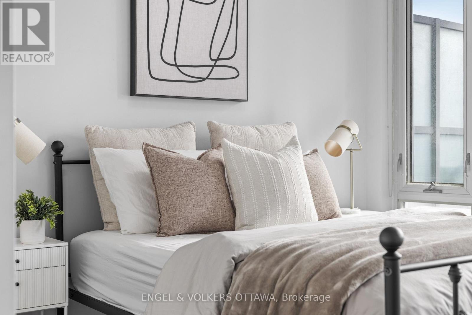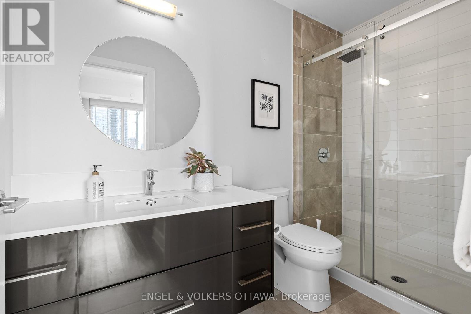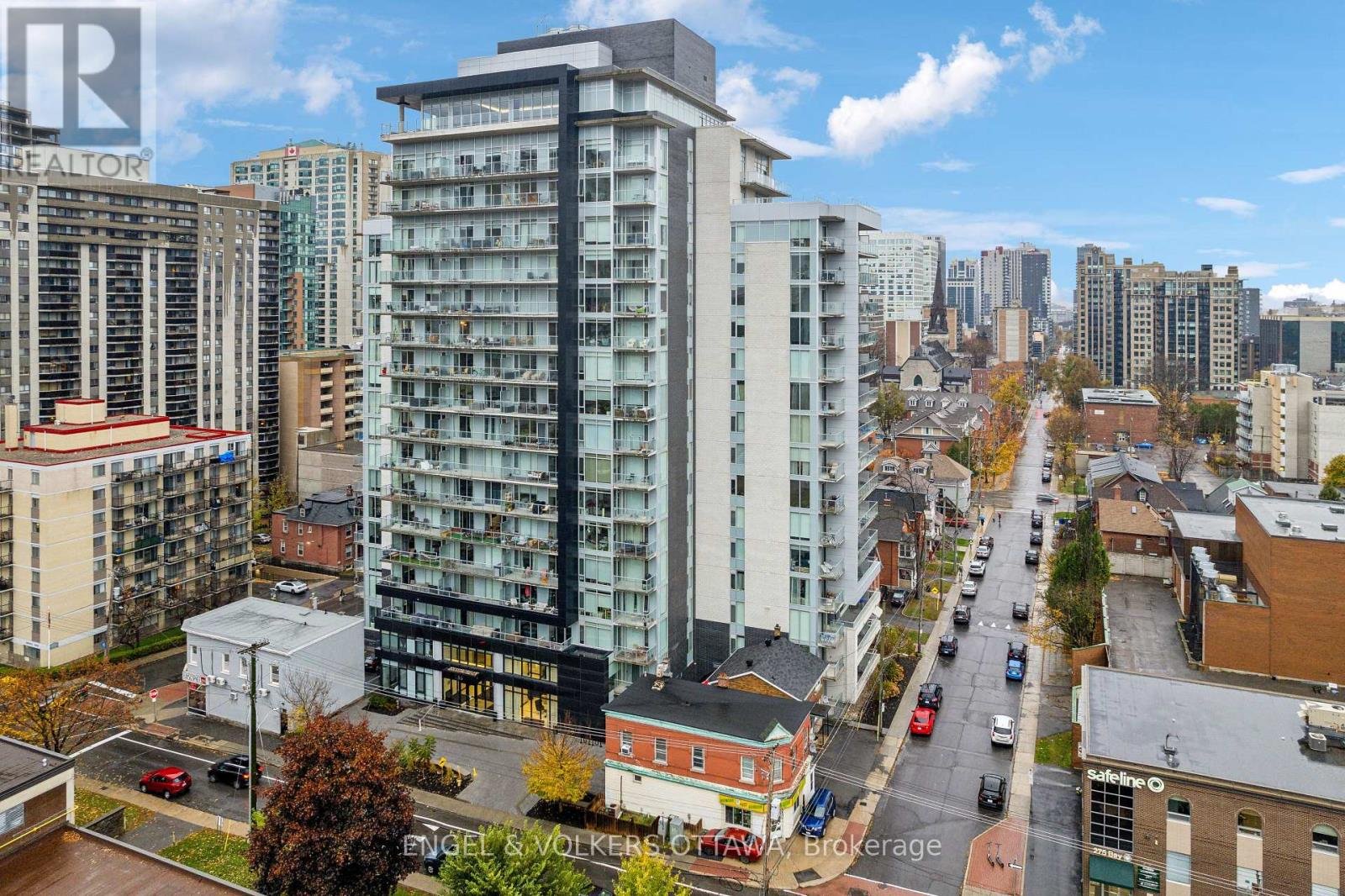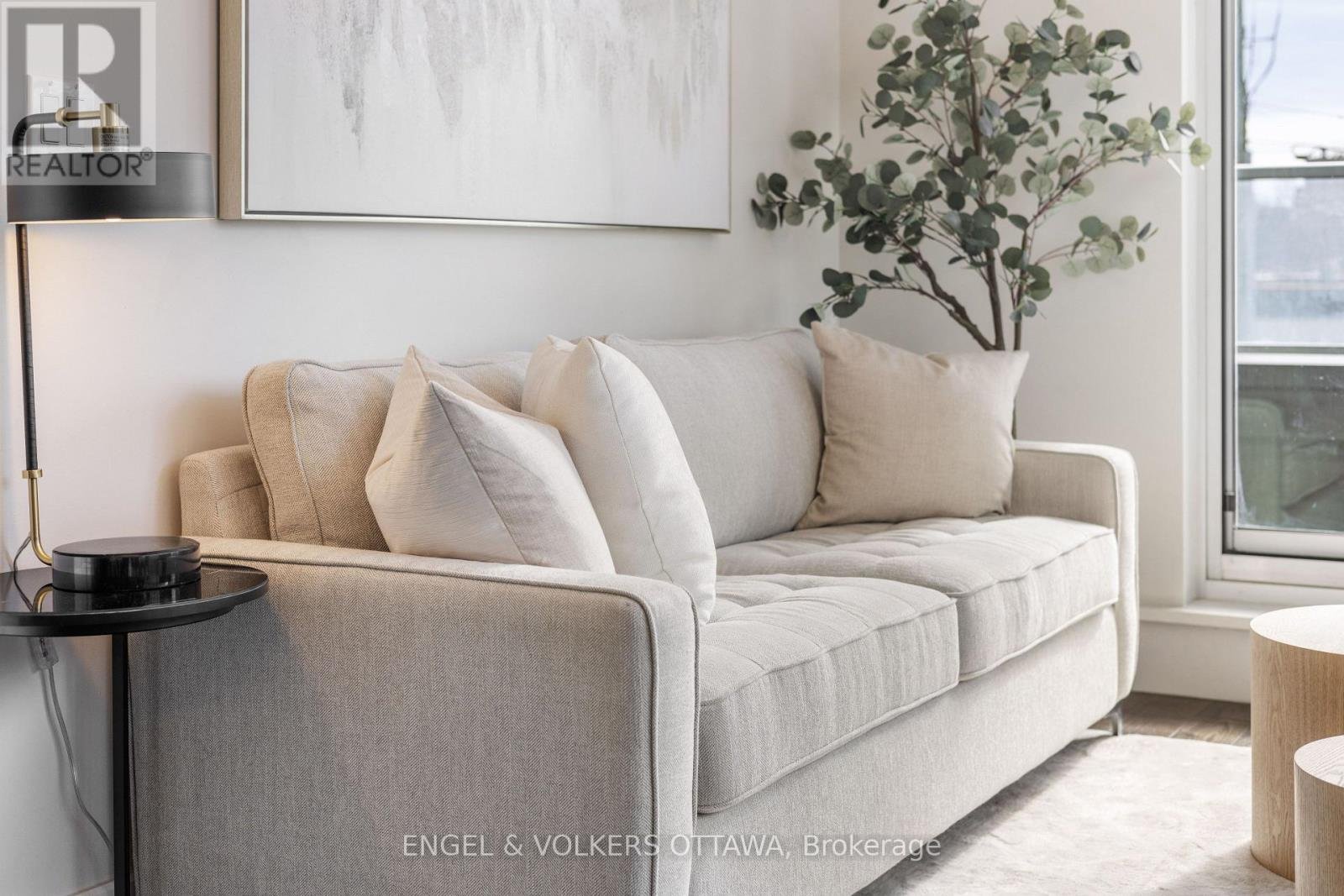 Experience refined urban living at The Bowery, a striking architecturally designed residence in the heart of Centretown, just steps to the Lyon LRT and Ottawa's best dining, shopping, and amenities. This thoughtfully designed 2-bedroom, 2-bathroom corner suite offers 846 sq.ft. of interior space complemented by a private 112 sq.ft. west-facing terrace, perfect for enjoying afternoon sun and evening sunsets. The bright, open-concept layout features 9-ft ceilings, expansive windows, and hardwood flooring throughout, creating a warm yet modern living space. The sleek kitchen is equipped with stainless steel appliances, stone countertops, and a peninsula with seating, seamlessly connecting to a flexible living and dining area suited for both everyday living and entertaining. The primary bedroom includes a well-appointed closet and a contemporary en-suite with a glass walk-in shower, while the second bedroom and full bath offer versatility for guests, a home office, or additional living space, with in-suite laundry adding everyday convenience. Residents of The Bowery enjoy an exceptional suite of amenities including an indoor rooftop saltwater pool, sauna, fully equipped fitness centre, party room with dining space, and a rooftop terrace with communal BBQs, along with visitor parking, guest suites, and bike storage, all within a bold, design-forward building known for its modern aesthetic and vibrant community atmosphere in one of Ottawa's most walkable neighbourhoods.