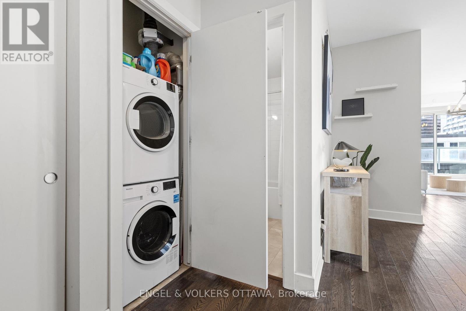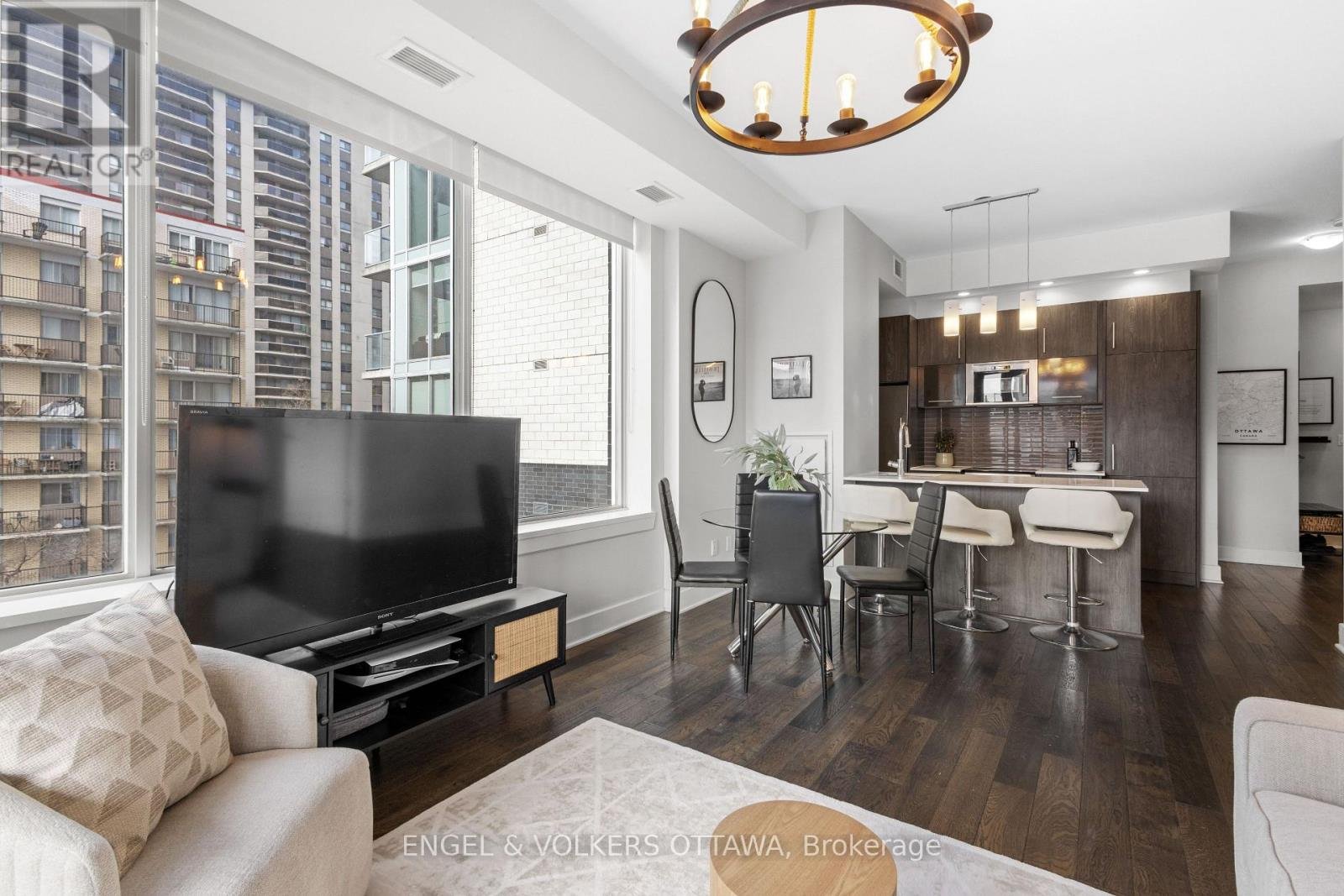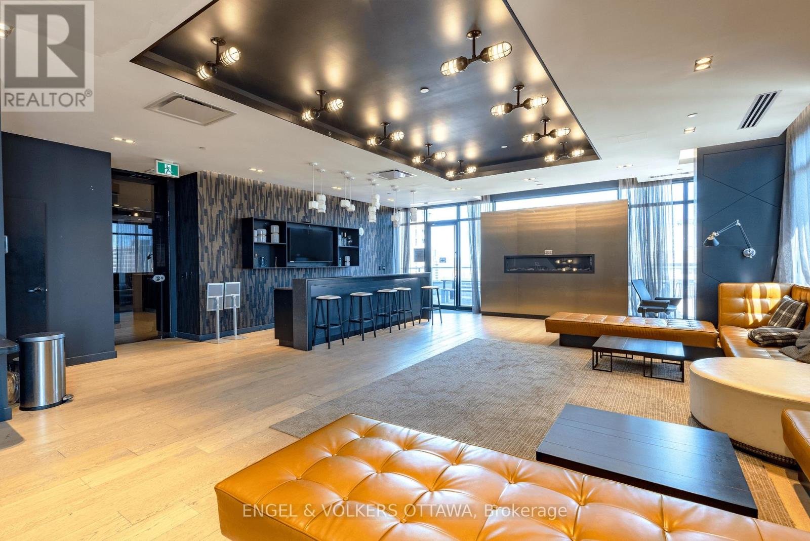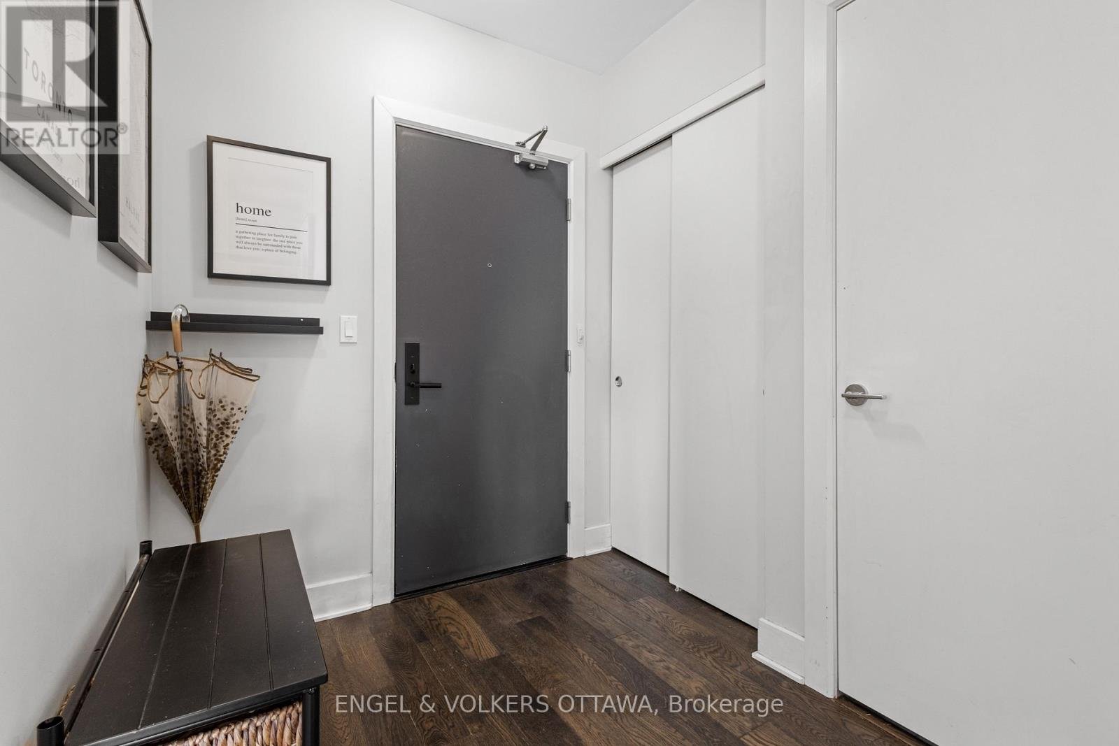 Experience refined urban living at The Bowery, a striking architecturally designed residence in the heart of Centretown, just steps to the Lyon LRT and Ottawa's best dining, shopping, and amenities. This thoughtfully designed 2-bedroom, 2-bathroom corner suite offers 846 sq.ft. of interior space complemented by a private 112 sq.ft. west-facing terrace, perfect for enjoying afternoon sun and evening sunsets. The bright, open-concept layout features 9-ft ceilings, expansive windows, and hardwood flooring throughout, creating a warm yet modern living space. The sleek kitchen is equipped with stainless steel appliances, stone countertops, and a peninsula with seating, seamlessly connecting to a flexible living and dining area suited for both everyday living and entertaining. The primary bedroom includes a well-appointed closet and a contemporary en-suite with a glass walk-in shower, while the second bedroom and full bath offer versatility for guests, a home office, or additional living space, with in-suite laundry adding everyday convenience. Residents of The Bowery enjoy an exceptional suite of amenities including an indoor rooftop saltwater pool, sauna, fully equipped fitness centre, party room with dining space, and a rooftop terrace with communal BBQs, along with visitor parking, guest suites, and bike storage, all within a bold, design-forward building known for its modern aesthetic and vibrant community atmosphere in one of Ottawa's most walkable neighbourhoods.