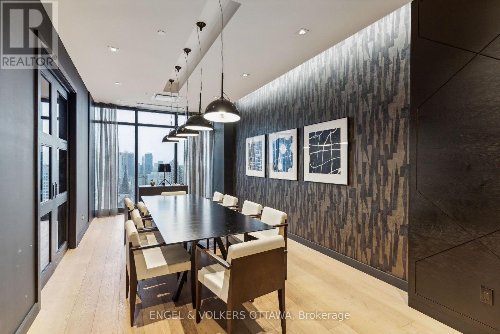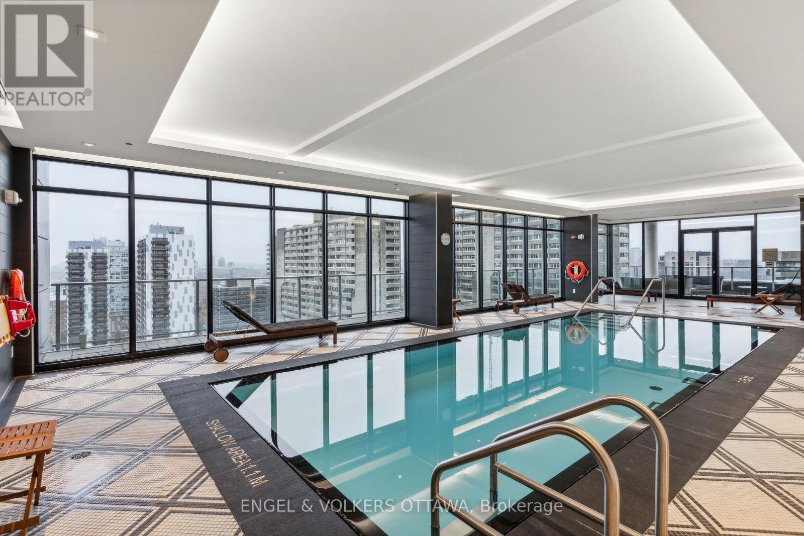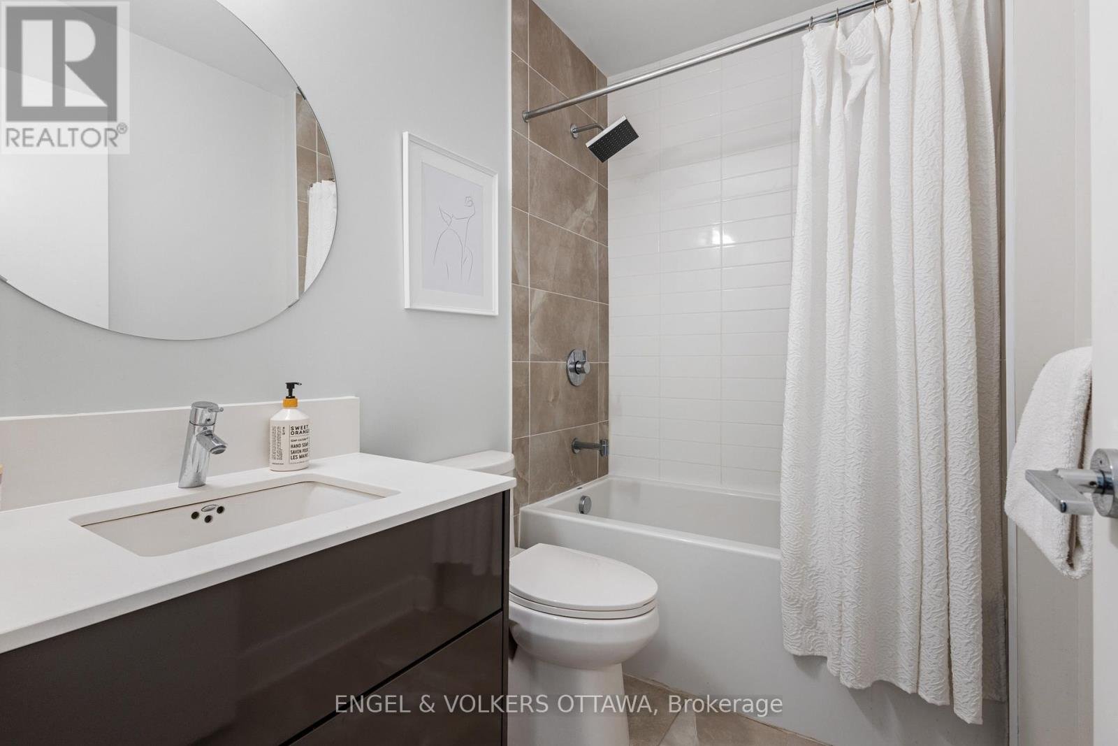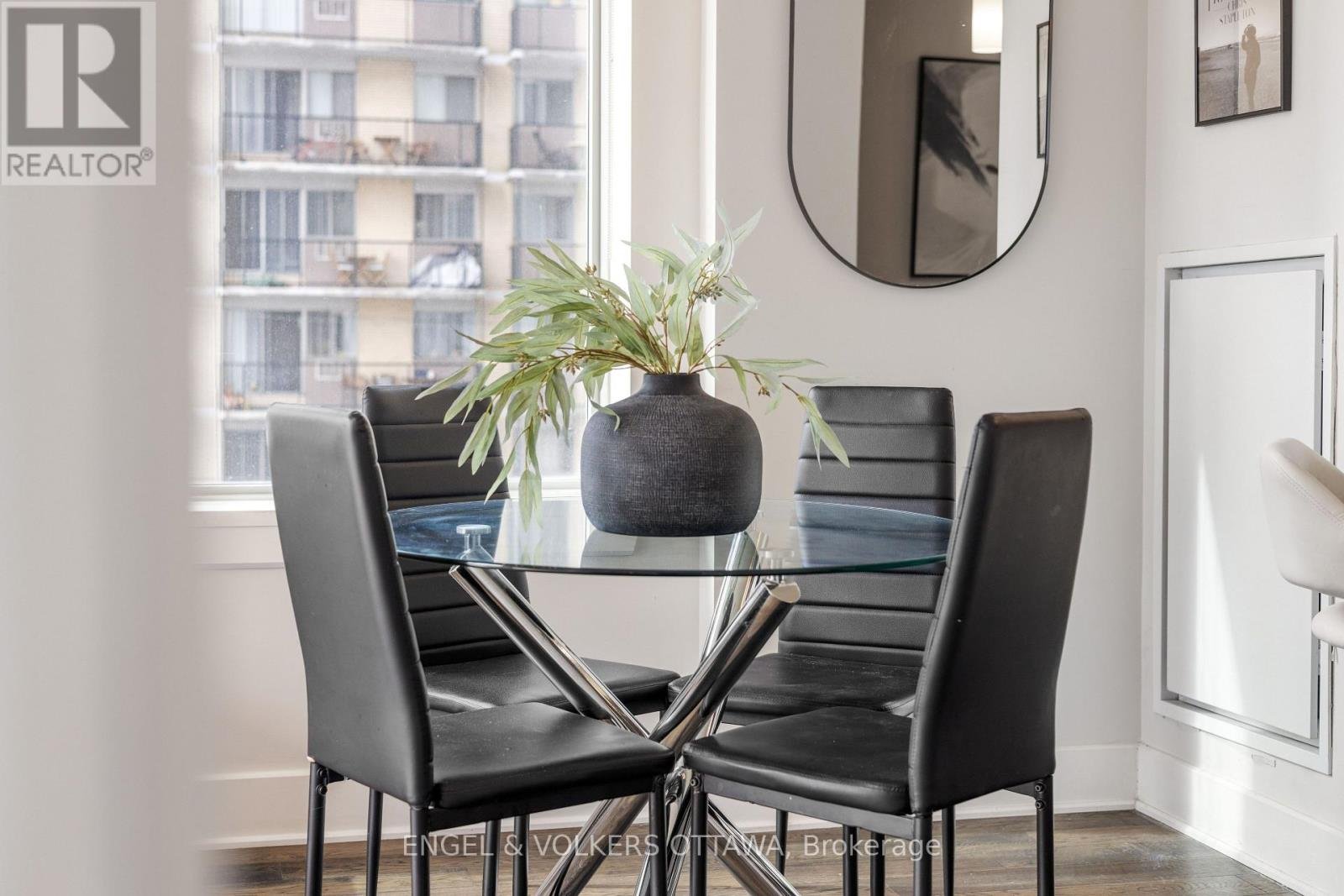 Experience refined urban living at The Bowery, a striking architecturally designed residence in the heart of Centretown, just steps to the Lyon LRT and Ottawa's best dining, shopping, and amenities. This thoughtfully designed 2-bedroom, 2-bathroom corner suite offers 846 sq.ft. of interior space complemented by a private 112 sq.ft. west-facing terrace, perfect for enjoying afternoon sun and evening sunsets. The bright, open-concept layout features 9-ft ceilings, expansive windows, and hardwood flooring throughout, creating a warm yet modern living space. The sleek kitchen is equipped with stainless steel appliances, stone countertops, and a peninsula with seating, seamlessly connecting to a flexible living and dining area suited for both everyday living and entertaining. The primary bedroom includes a well-appointed closet and a contemporary en-suite with a glass walk-in shower, while the second bedroom and full bath offer versatility for guests, a home office, or additional living space, with in-suite laundry adding everyday convenience. Residents of The Bowery enjoy an exceptional suite of amenities including an indoor rooftop saltwater pool, sauna, fully equipped fitness centre, party room with dining space, and a rooftop terrace with communal BBQs, along with visitor parking, guest suites, and bike storage, all within a bold, design-forward building known for its modern aesthetic and vibrant community atmosphere in one of Ottawa's most walkable neighbourhoods.