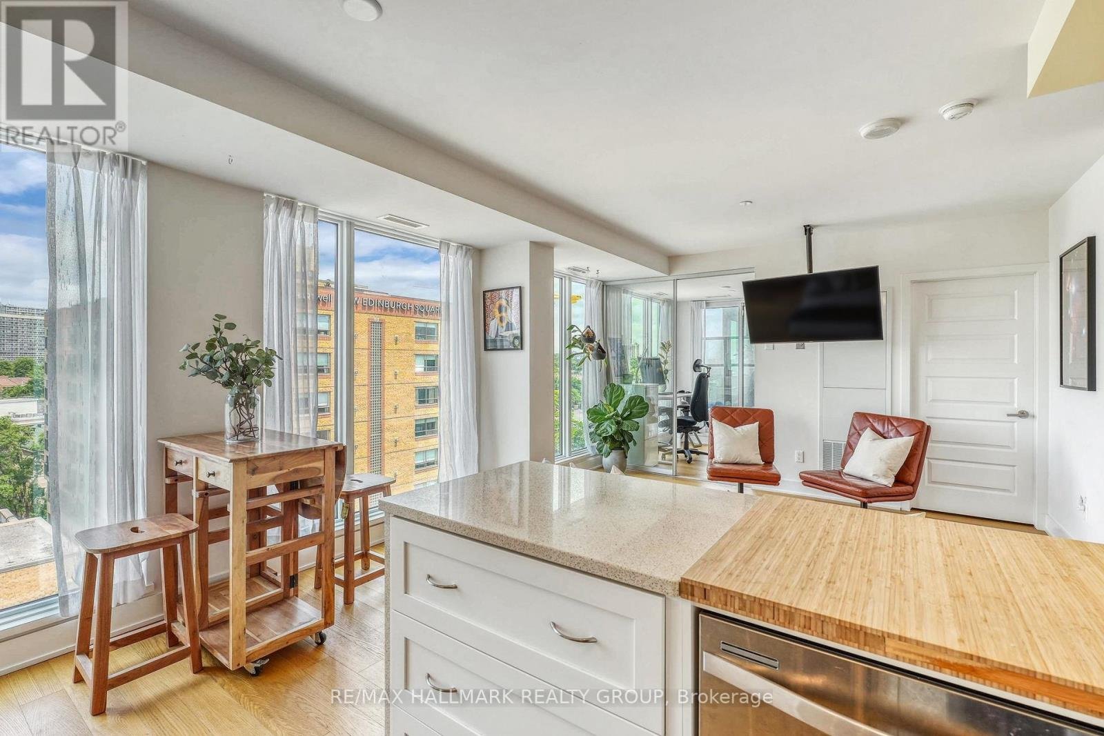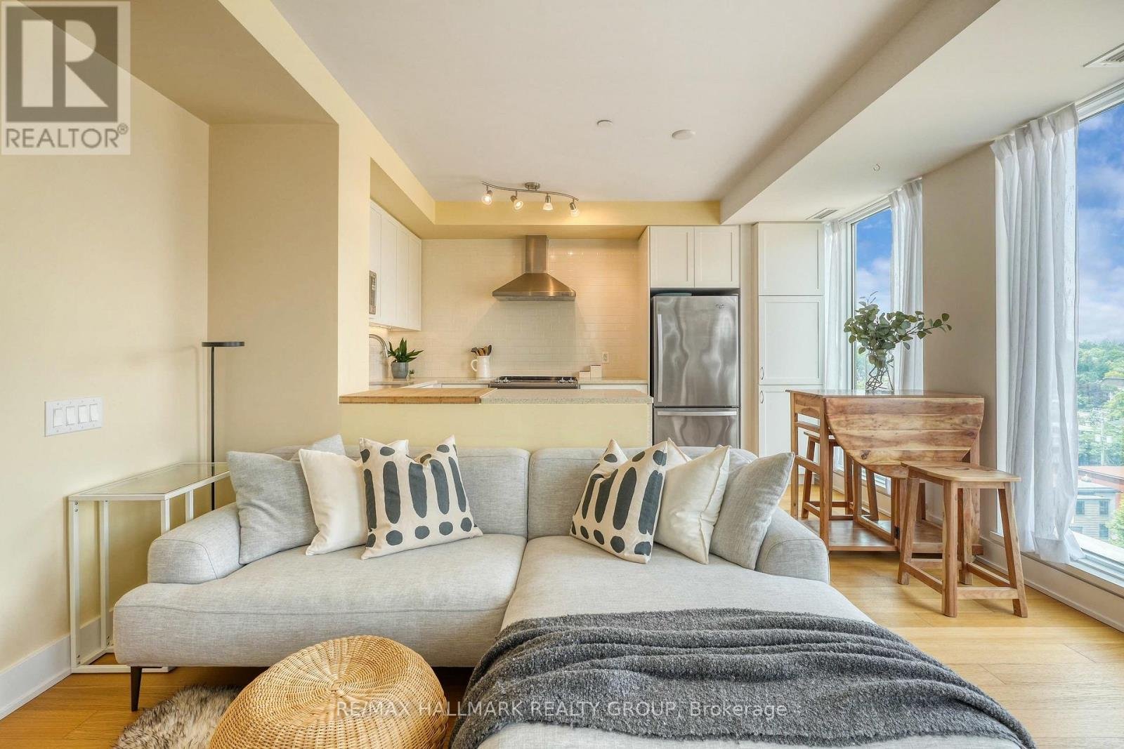 Stunning penthouse 1-bedroom + den "Ivy" model by Minto, offering a bright, well-appointed layout with elevated views and a modern, upscale feel. The unit benefits from top-floor privacy and an abundance of natural light, creating an open and airy living environment throughout.The thoughtfully designed floor plan includes a versatile den, ideal for a home office, reading nook, or additional living space. The kitchen is both stylish and functional, seamlessly connecting to the living and dining areas-perfect for everyday living or entertaining.Located in a well-managed, amenity-rich building, residents enjoy access to guest suites, a beautifully designed party room, and a fully equipped fitness centre, providing a true condo lifestyle experience. Located in the heart of Beechwood, you're surrounded by some of Ottawa's best cafés, restaurants, and local shops. Just minutes to the ByWard Market, downtown Ottawa, and steps to the Ottawa River with access to scenic walking and biking paths. You're also close to parks, NCC trails, public transit, and key hubs like Global Affairs and the downtown core.This is a rare opportunity to own a penthouse unit in a vibrant, walkable neighbourhood that offers both lifestyle and convenience.