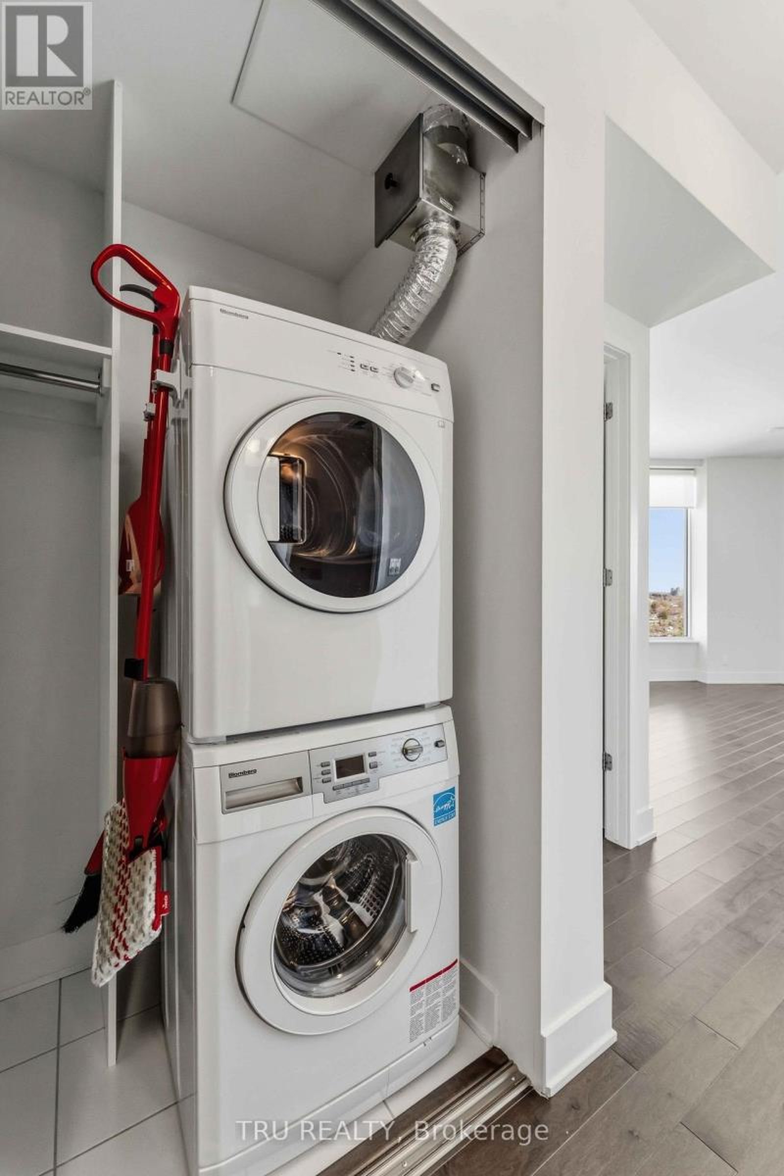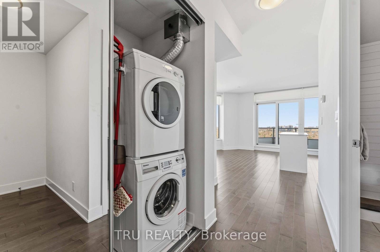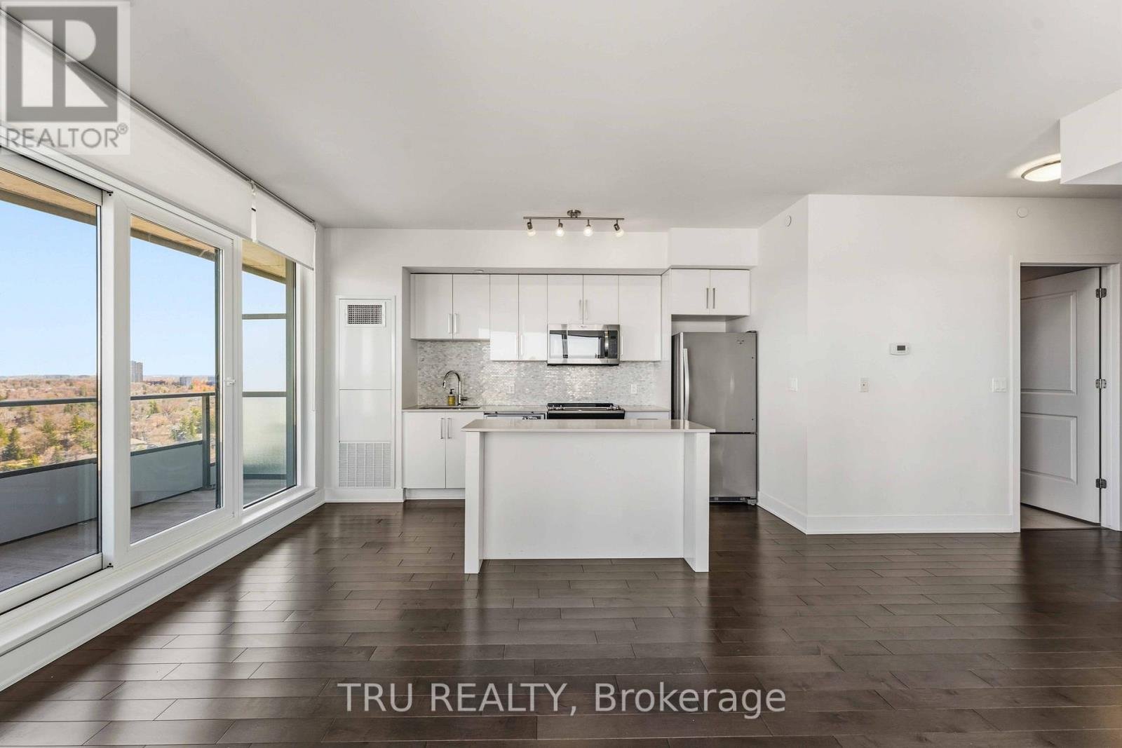 Perched on the 19th floor, this is a thoughtfully designed one bedroom corner suite with a premium terrace in the heart of Westboro. The bright and beautiful layout offers natural light and sweeping south and east-facing views of Westboro, with a glimpse of the Ottawa River. The open-concept kitchen is finished with quartz countertops, a double undermount sink, stainless steel appliances, and a centre island with seating for two. Hardwood and tile flooring run throughout the unit. The spacious primary bedroom features a triple closet, while the main 3-piece bathroom includes a stand-up shower and granite countertop.This LEED Gold-certified building offers exceptional amenities, including a stylish and welcoming lobby, rooftop terrace with outdoor lounge space, BBQs, a reflection pool, party room, guest suite, and an elegant dining room equipped with high-end appliances. Ideally located in the heart of Westboro, just steps to shops, groceries, restaurants, and the future Phase 2 LRT. Enjoy the vibrant seasonal farmers' market conveniently located just across the street. Only 10 minutes to downtown Ottawa. Parking spot #28 and locker B-05 included.